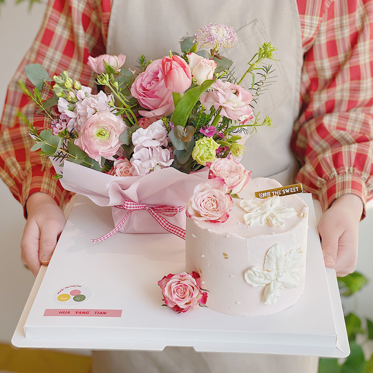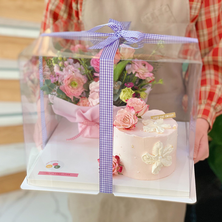 *装饰鲜花选用当季应季花材,经过清洁后包裹食品级锡纸再插入蛋糕中。鲜花不可食用,食用前请取出!拔出鲜花后锡纸易脱落在蛋糕胚中为正常现象,介意者勿拍