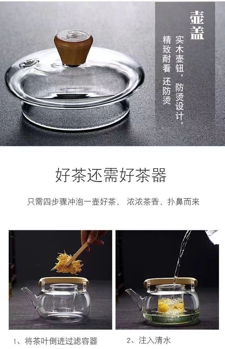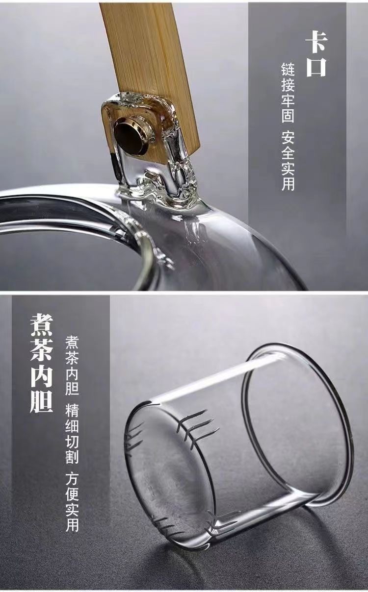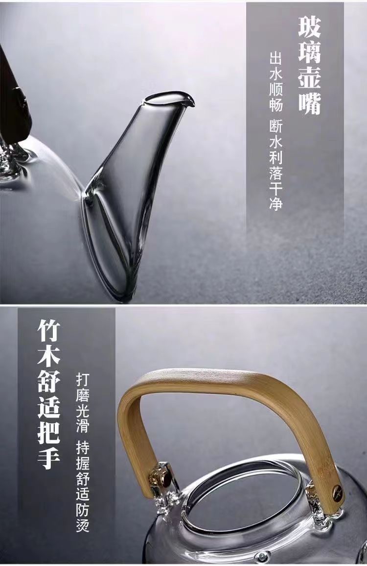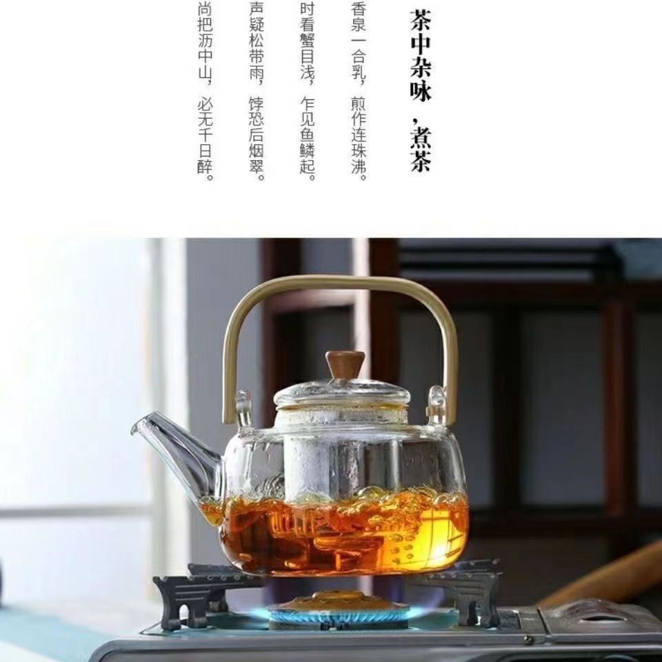 透明提梁壶煮茶壶全玻璃烧水壶电陶炉加热蒸茶器家用养生围炉煮茶壶茶 具套装