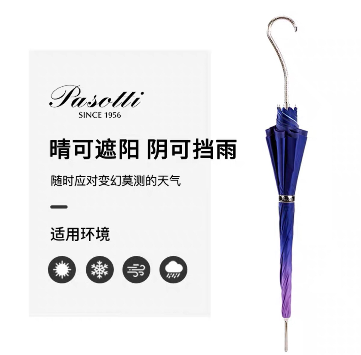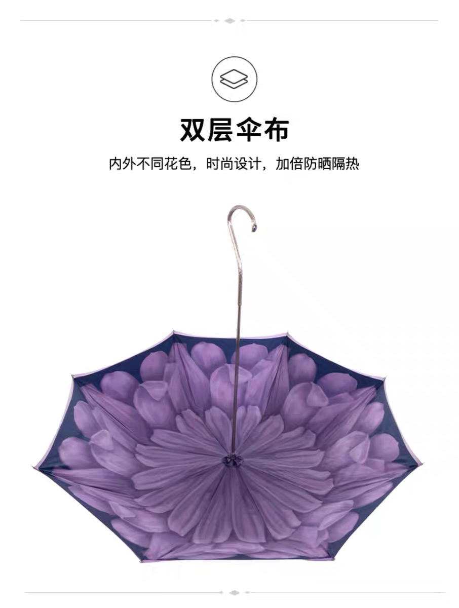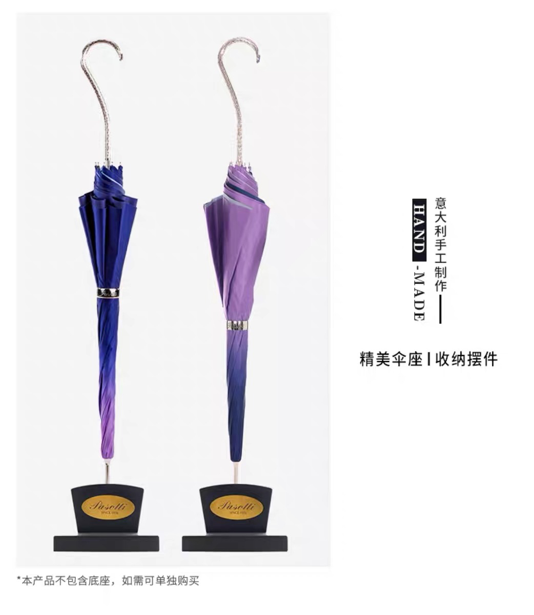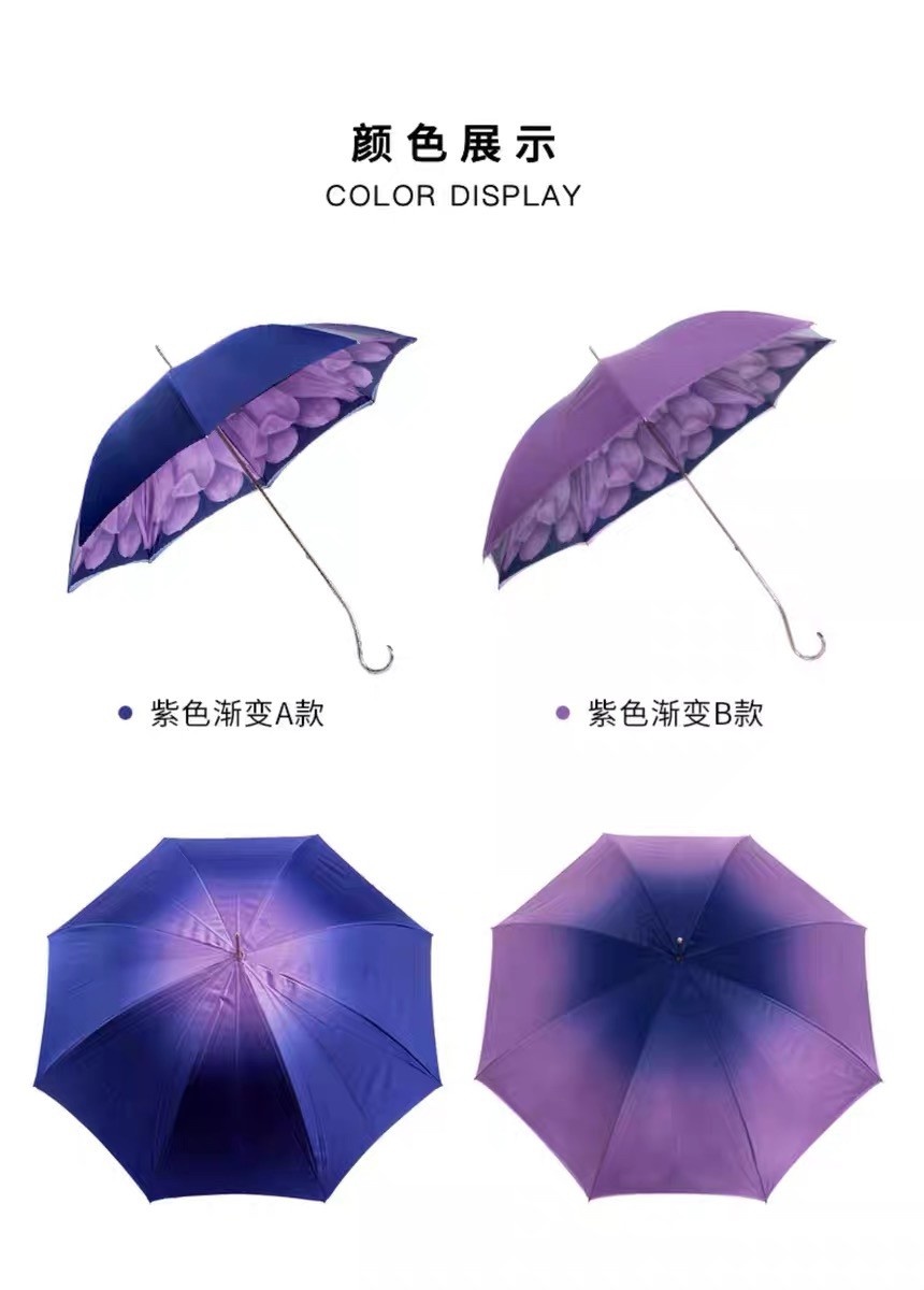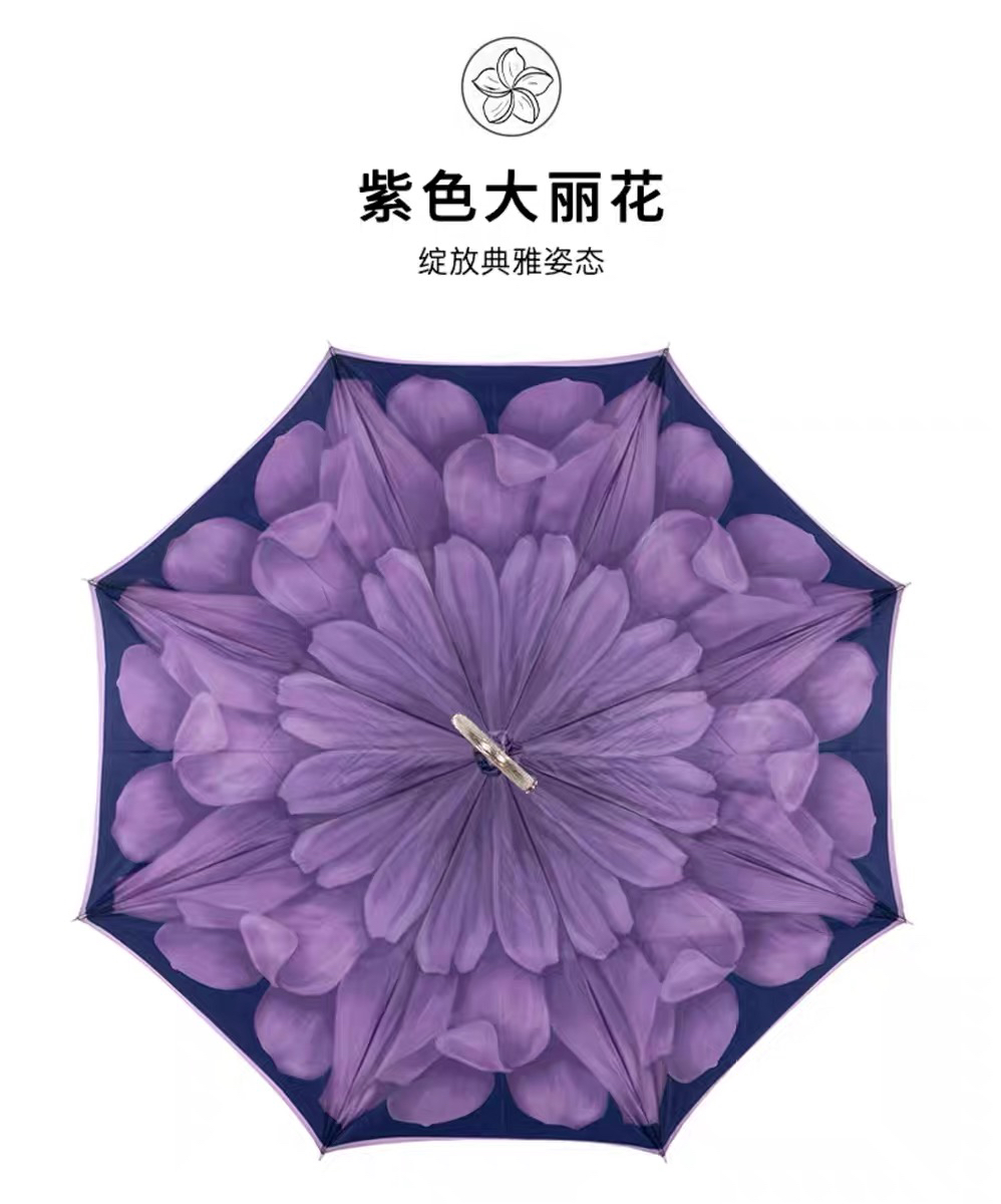 Pasotti意大利手工定制双层紫色大丽花伞面钩形手柄直杆晴雨伞