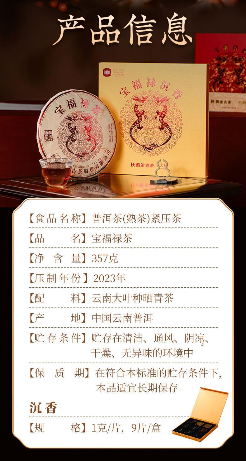 【熟茶礼盒】澜沧古茶2024年宝福禄茶普洱茶沉香熟茶礼盒装357g