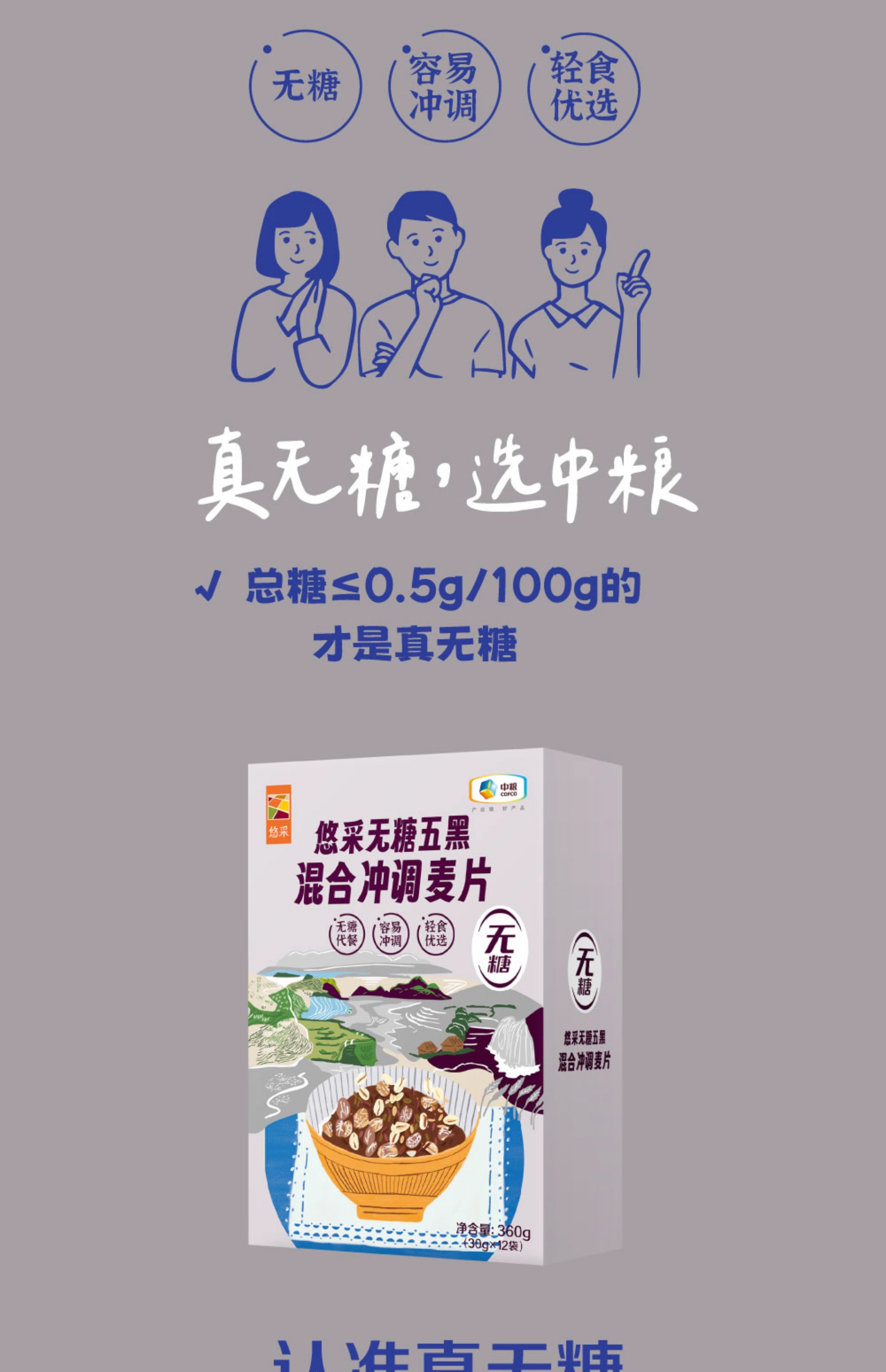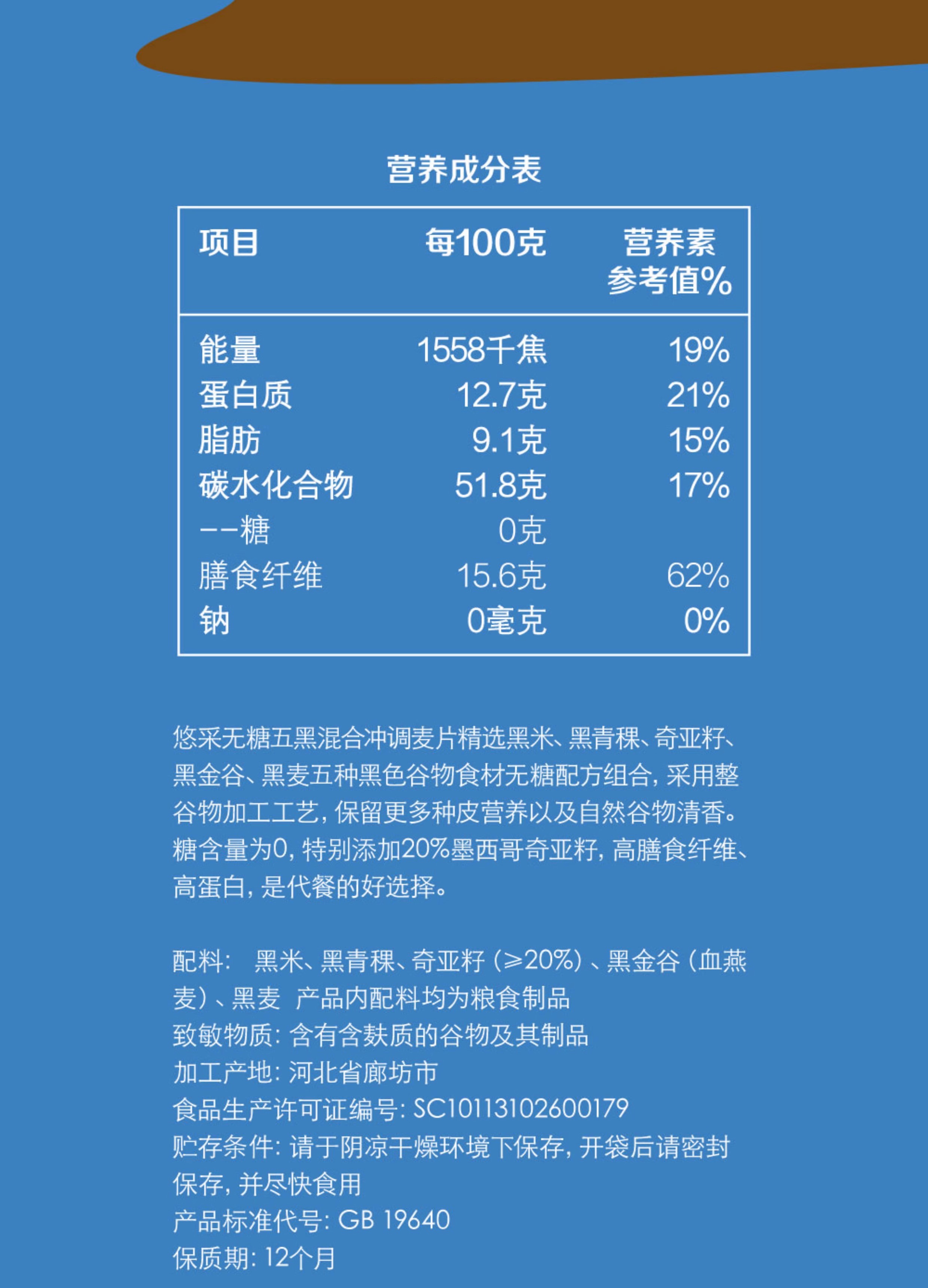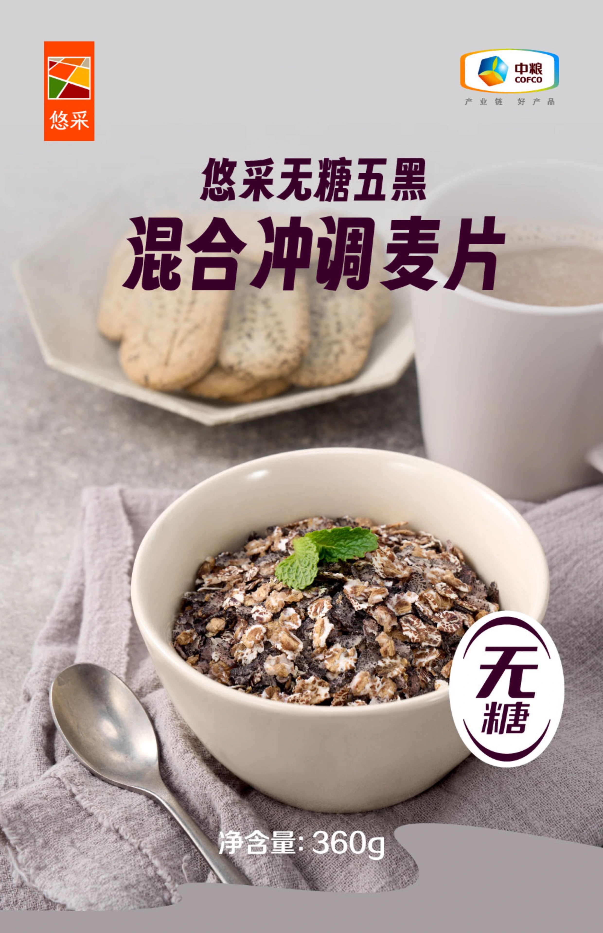中粮悠采无糖五黑混合冲调燕麦片360g/盒