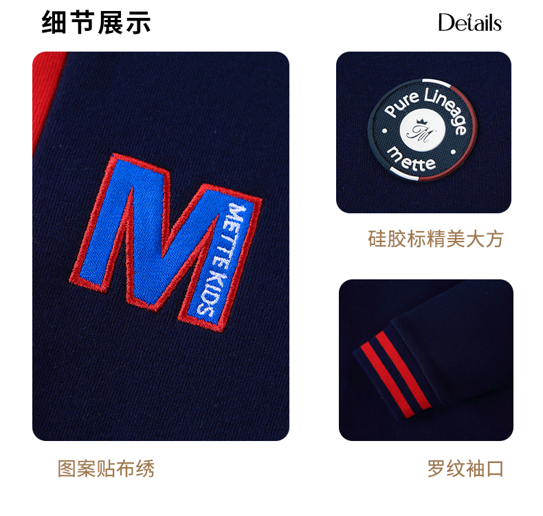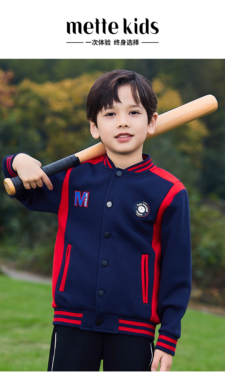 mettekids儿童外套春秋新款棒球服童装中大男童运动休闲立领夹克