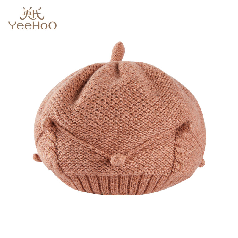 英氏婴儿帽子秋冬新款公主贝雷帽羊毛针织休闲南瓜帽YRPHJ32117A