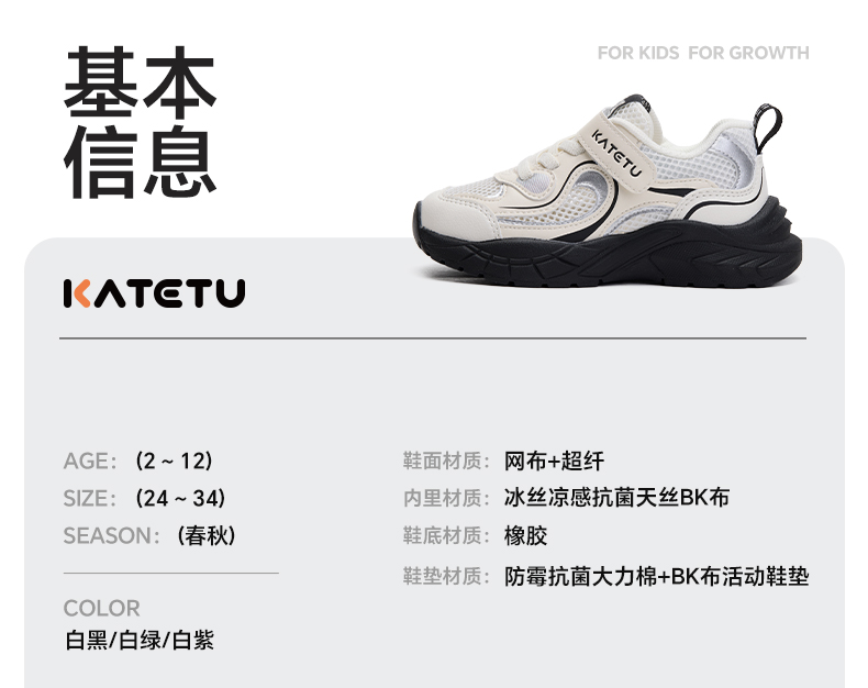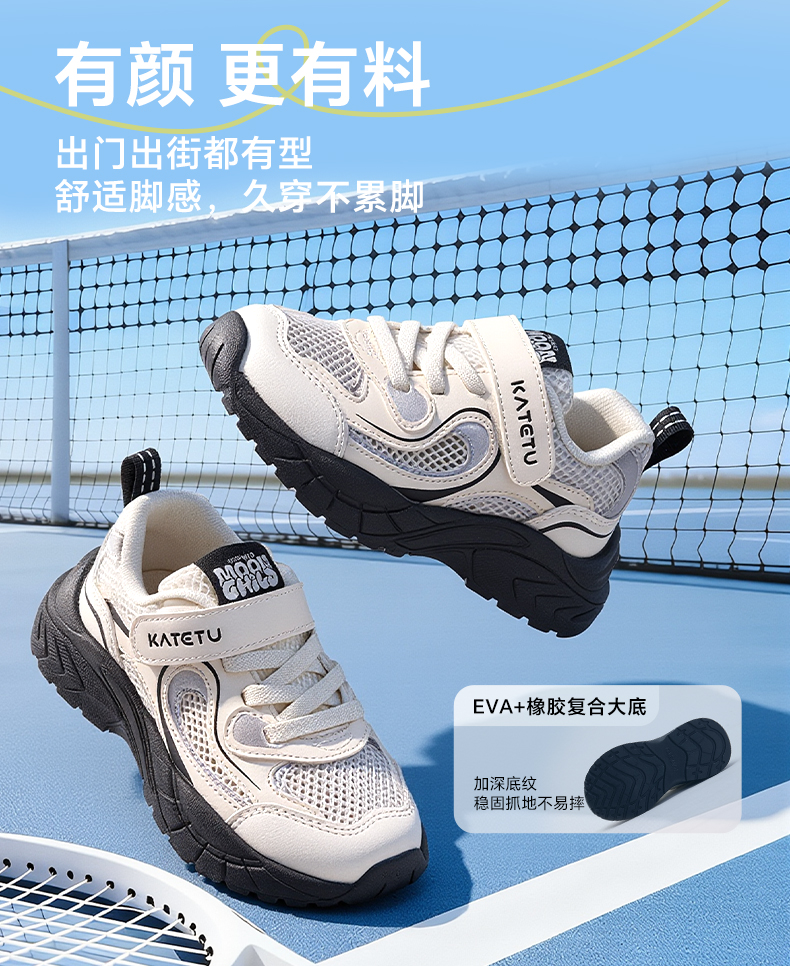 卡特兔儿童运动鞋2026年春季新品小白鞋防滑耐磨透气时尚老爹鞋