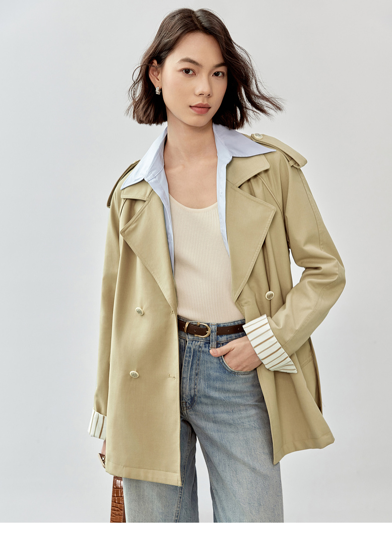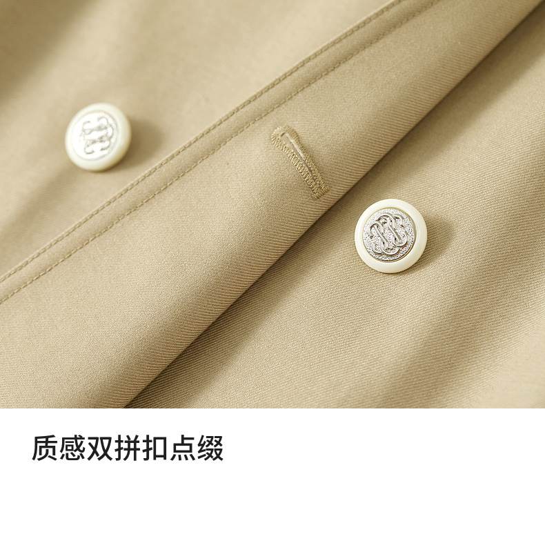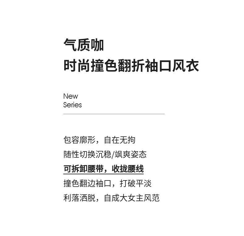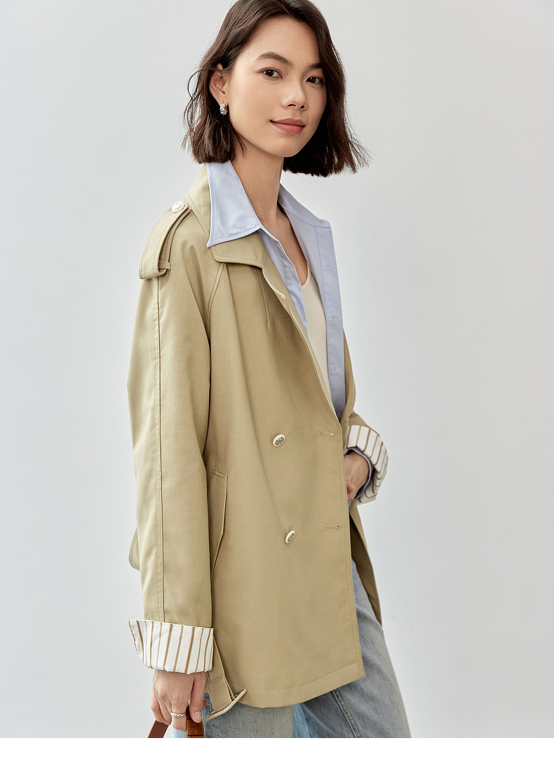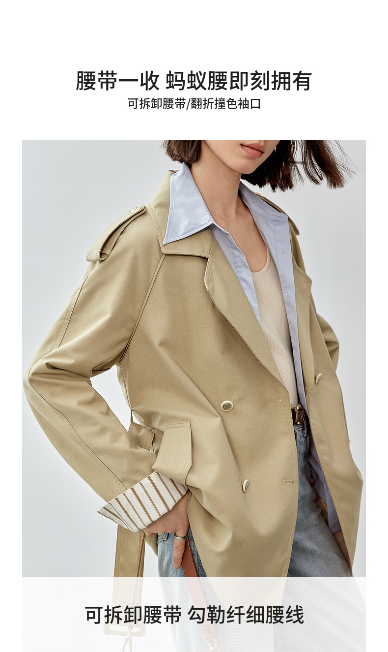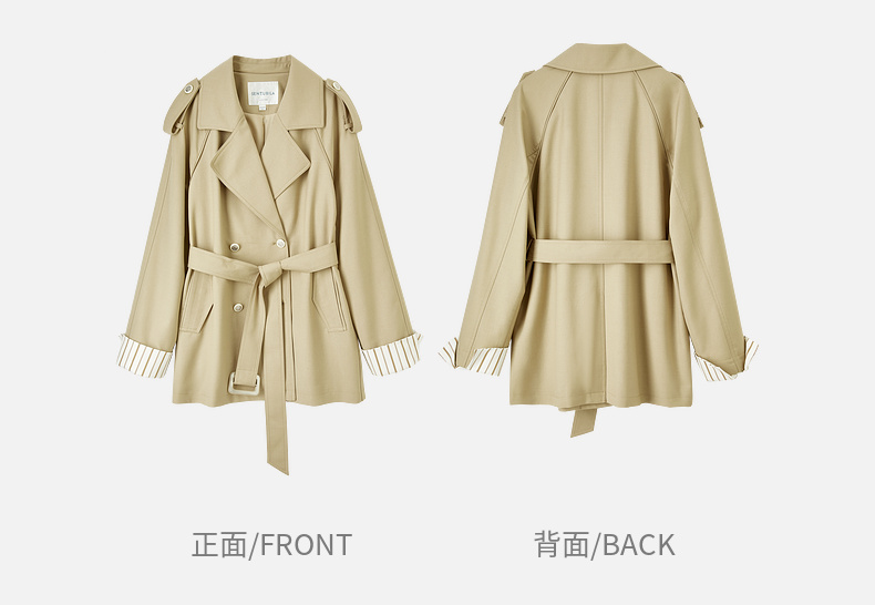 【内购】气质通勤经典翻领插肩袖双排扣翻折撞色袖口配可拆卸肩带宽松风衣-153FB3591X