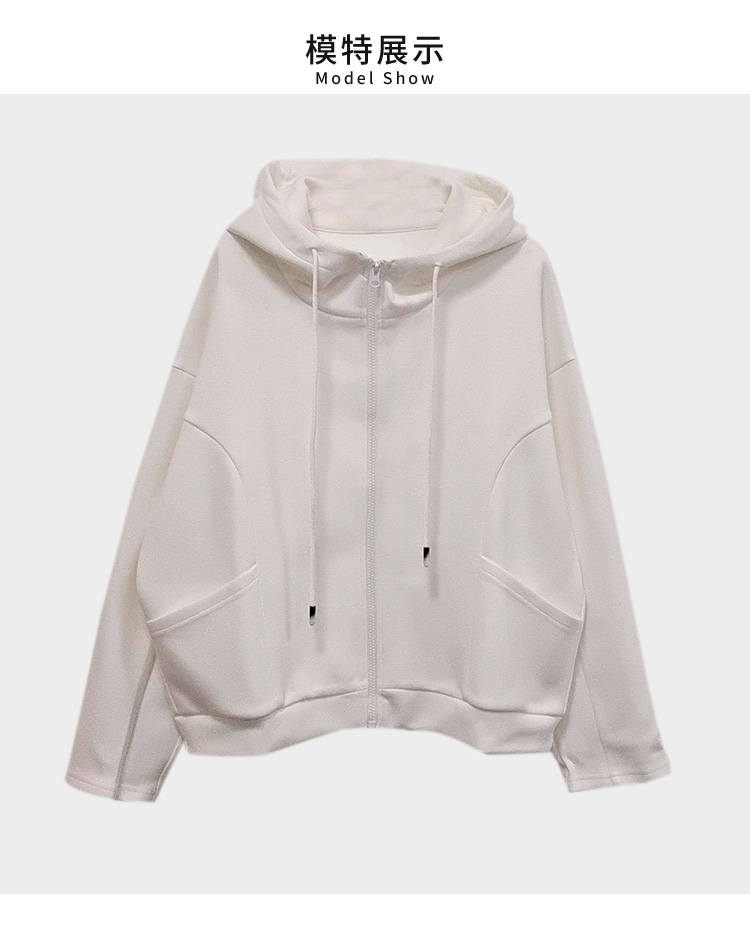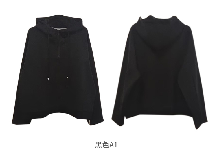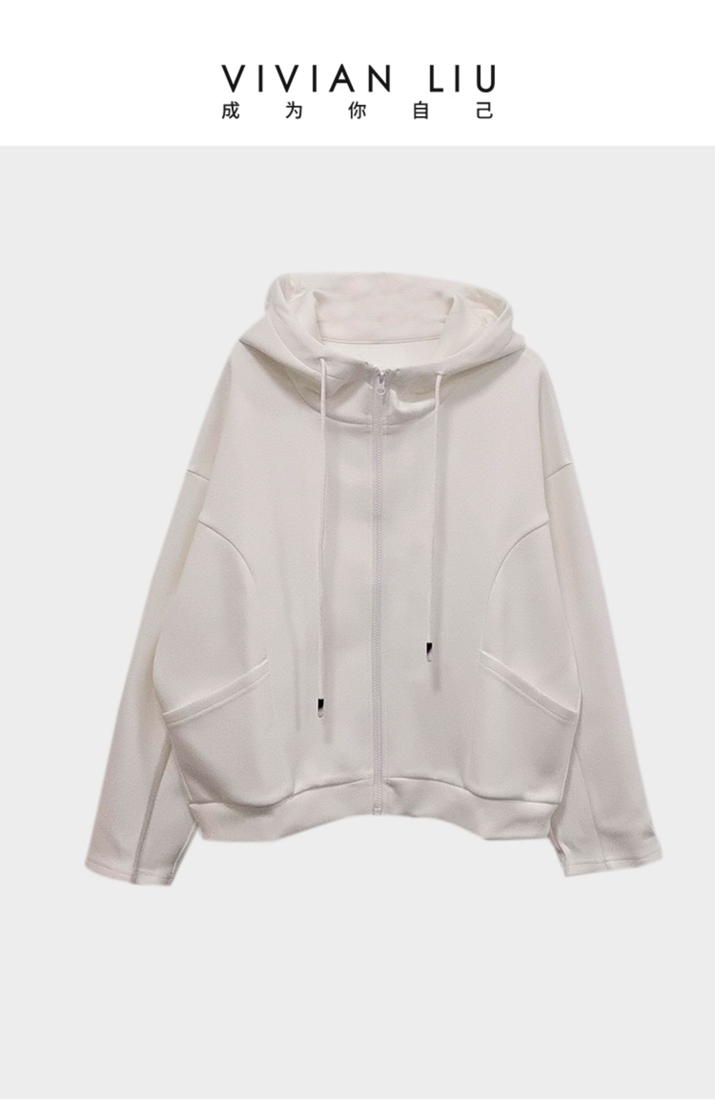 VIVIAN LIU D2417306梅春女装新款时尚立领连帽宽松长袖针织外套