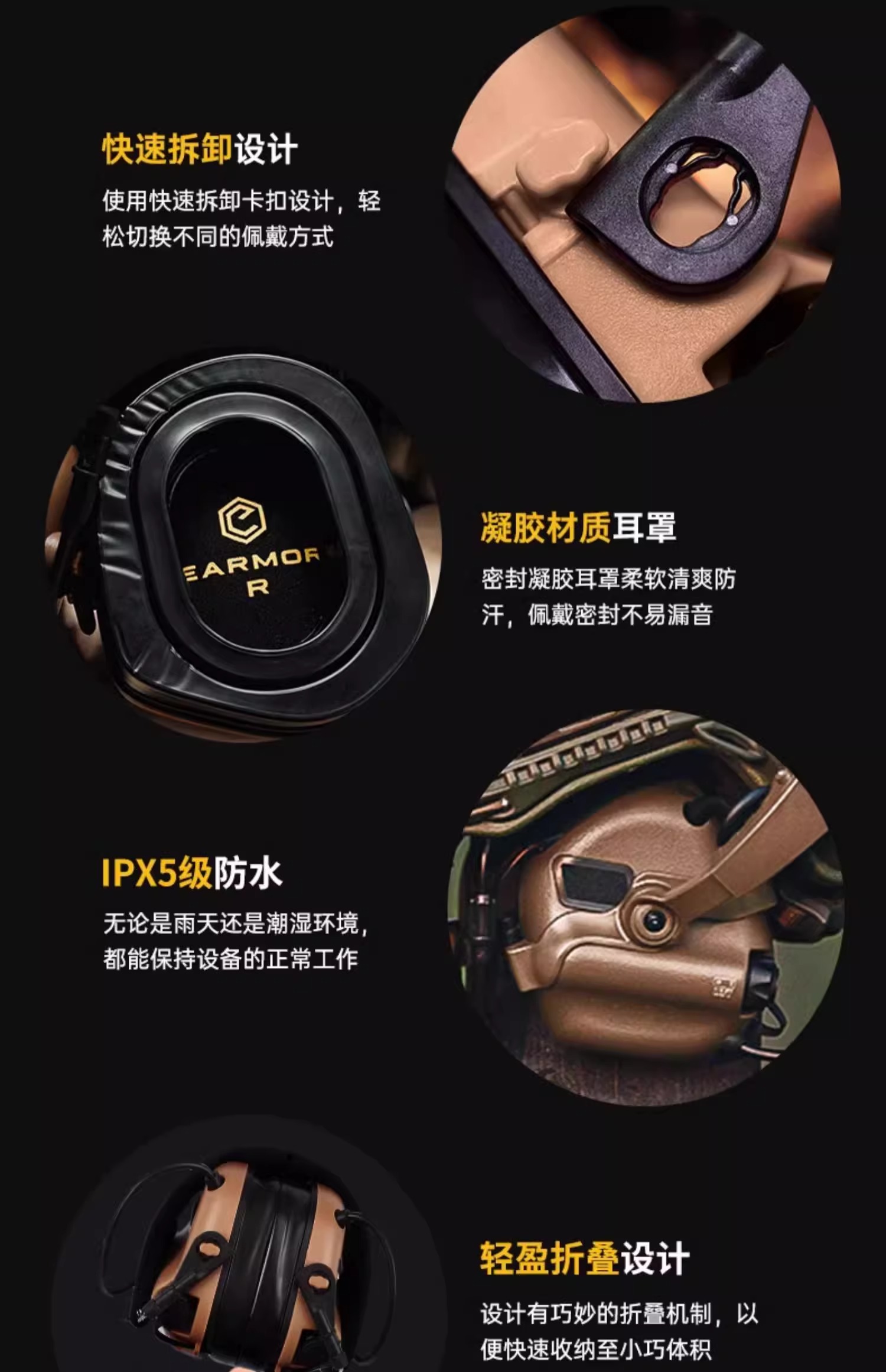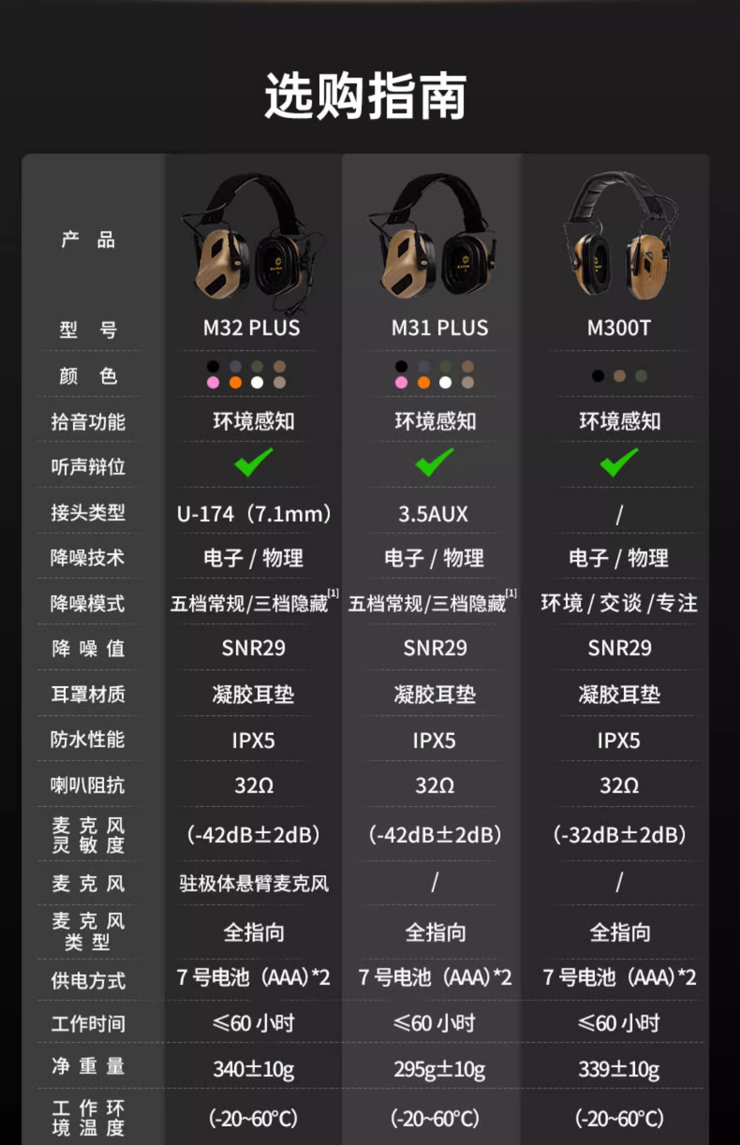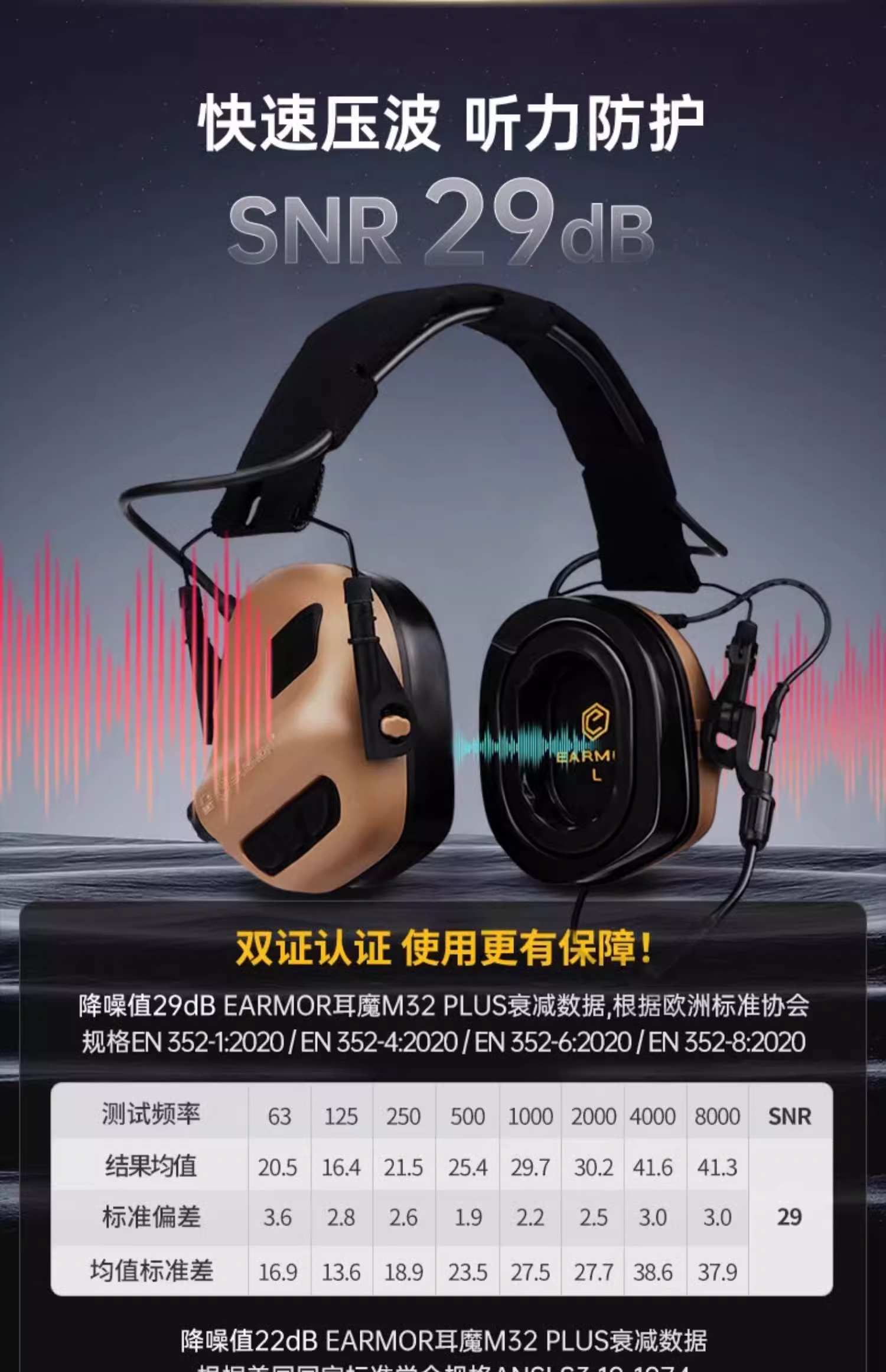 EARMOR耳魔M32 PLUS战术耳机拾音降噪对讲通讯头戴式射击隔音耳罩