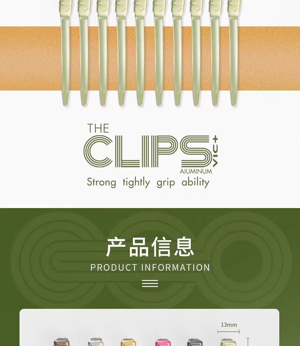 VIC+维克专业美发学院版彩色铝夹美发分区无痕夹短发理发剪发夹子D85