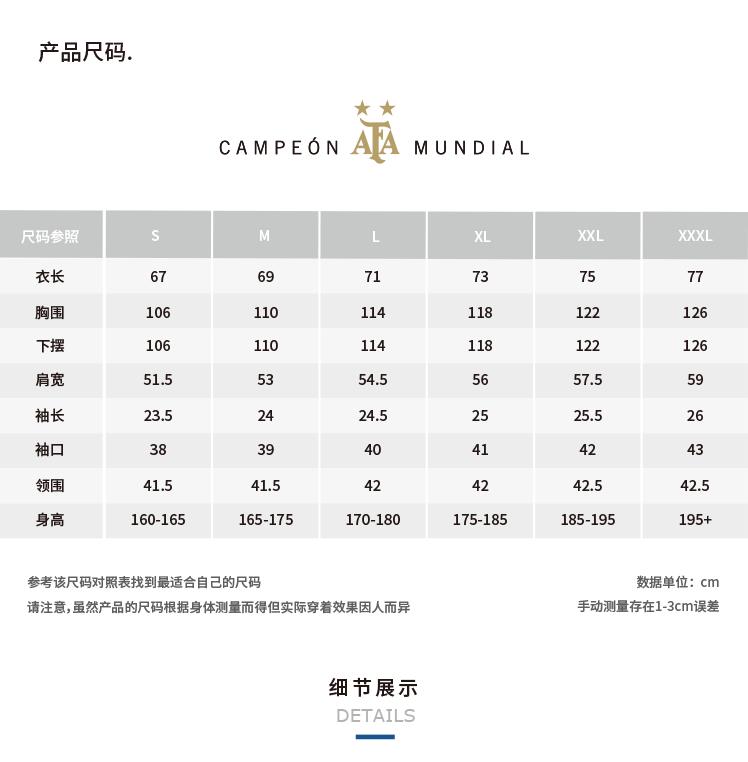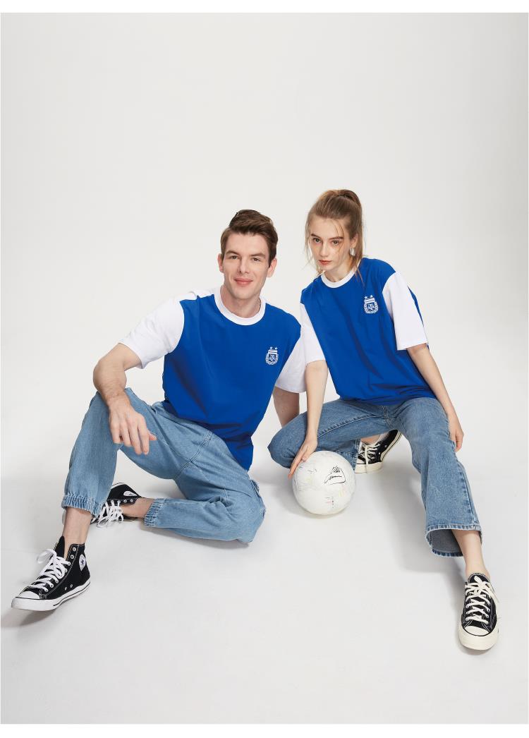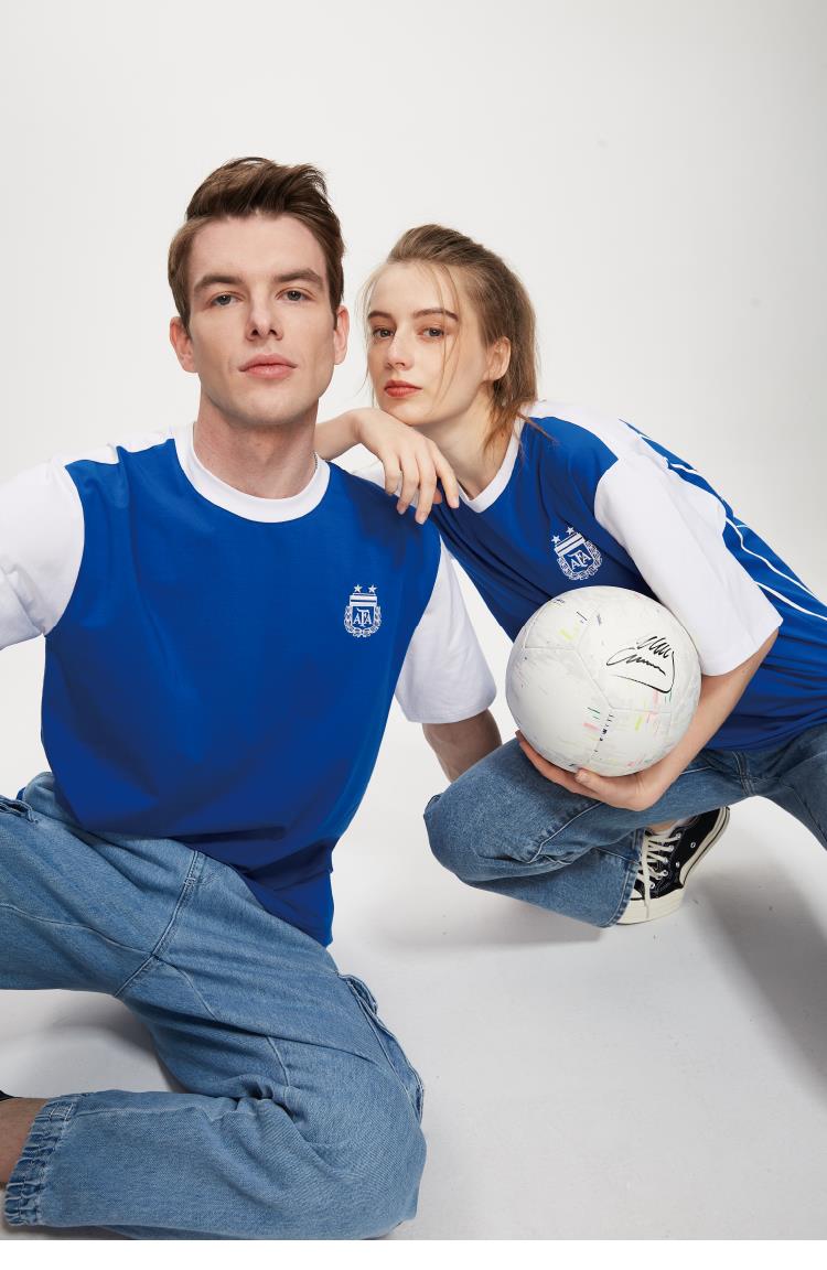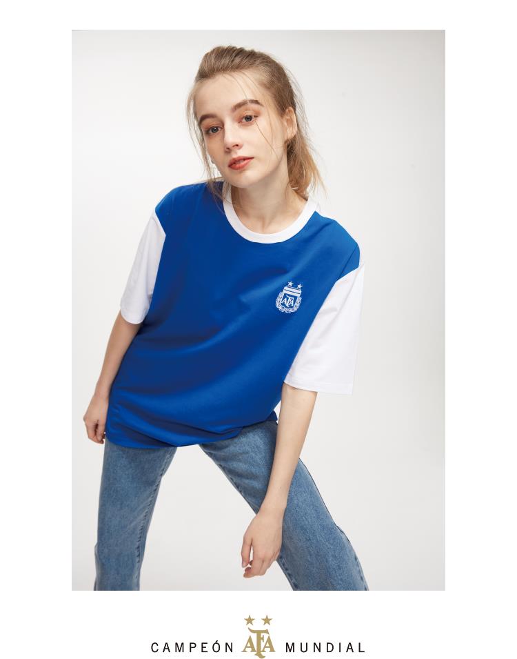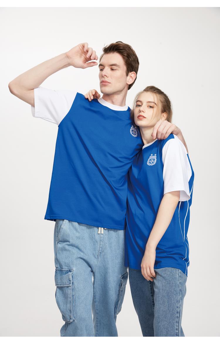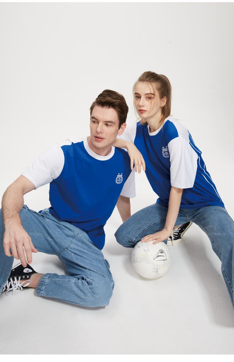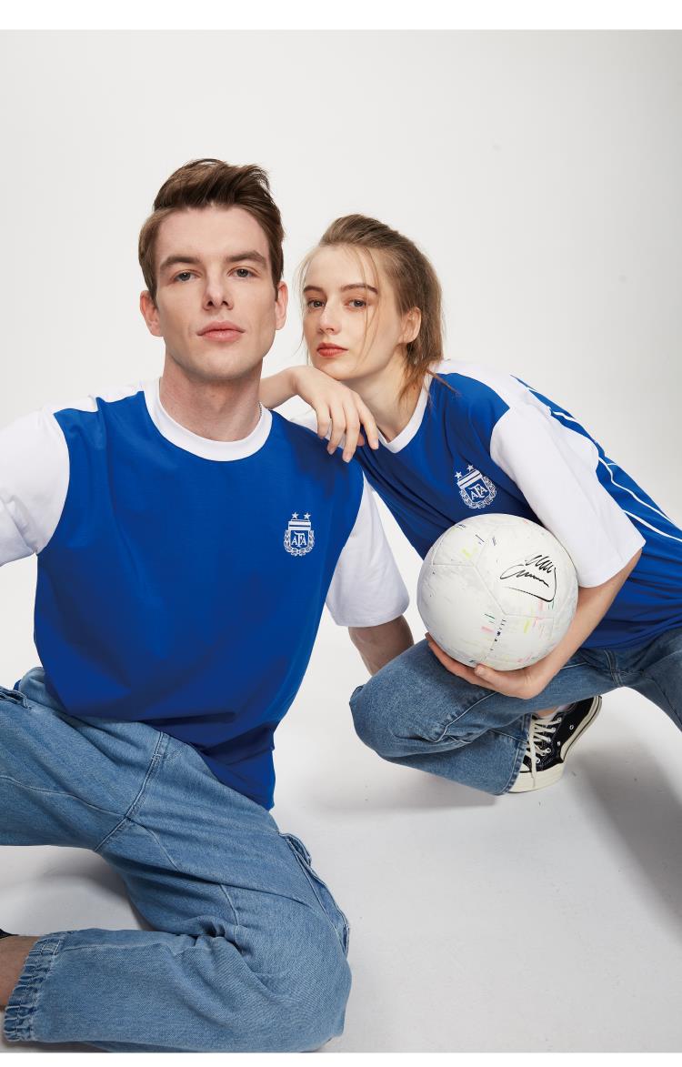 阿根廷国家队官方商品丨棉拼接T恤复古条纹印号梅西足球迷宽松