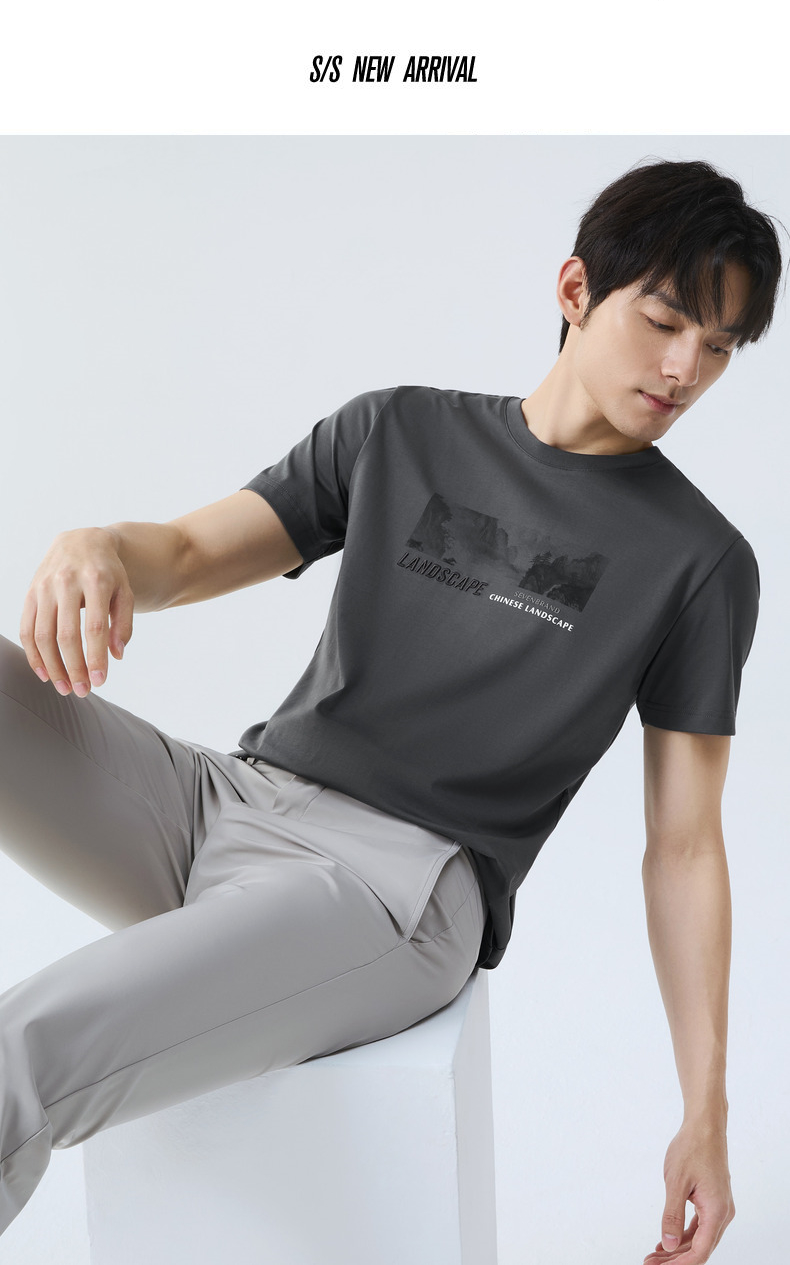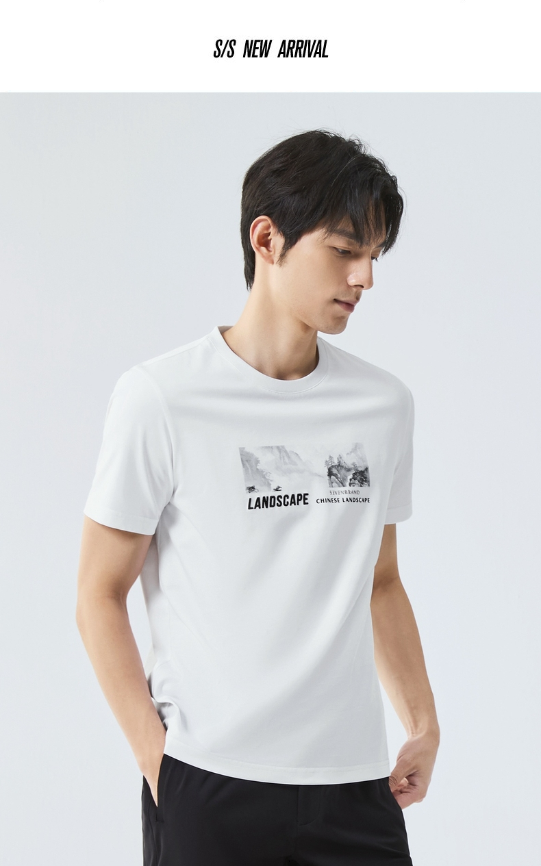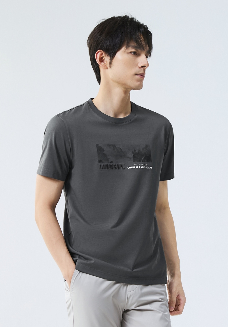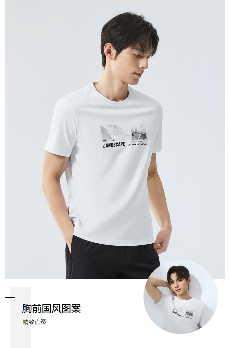 【国风图案T恤/凉感】柒牌短袖T恤男夏季新款时尚休闲圆领体恤衫128T70790