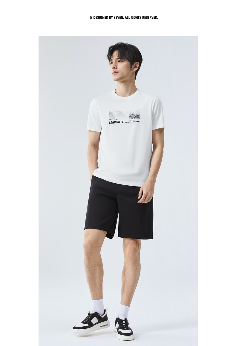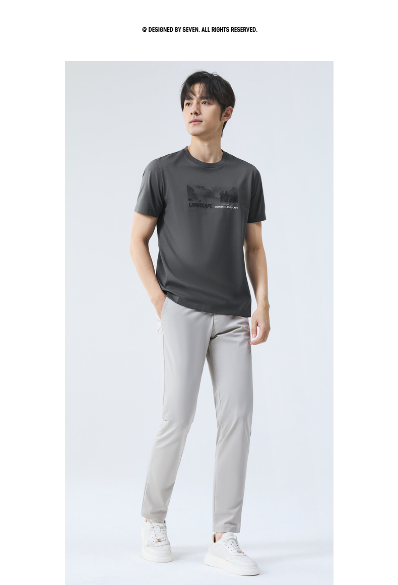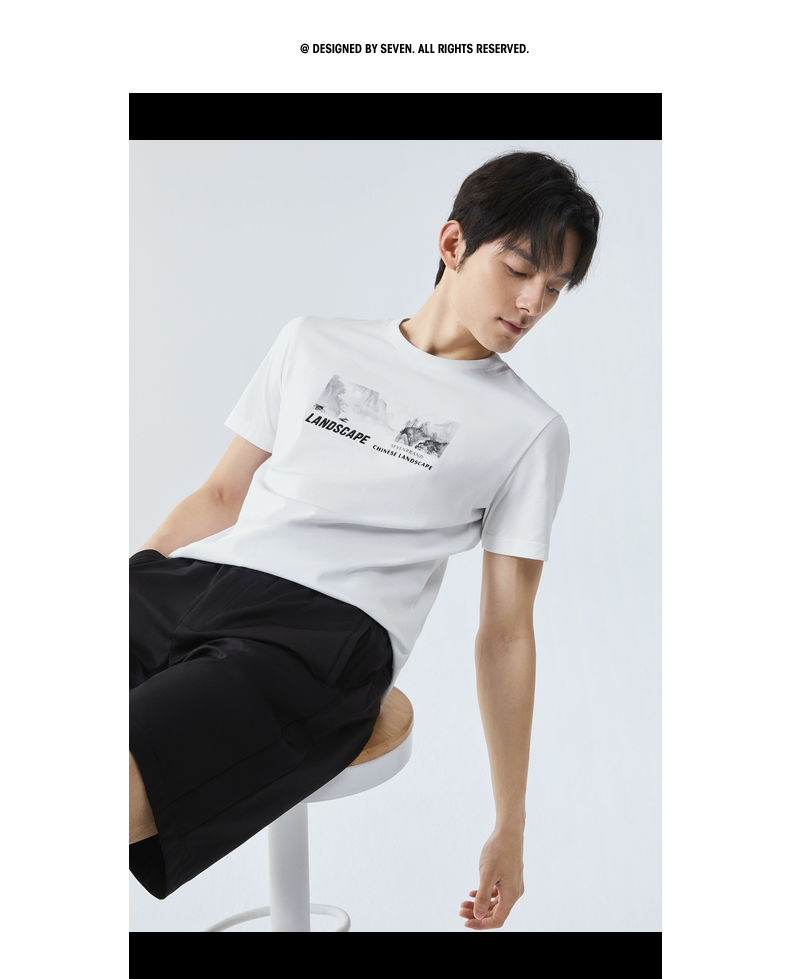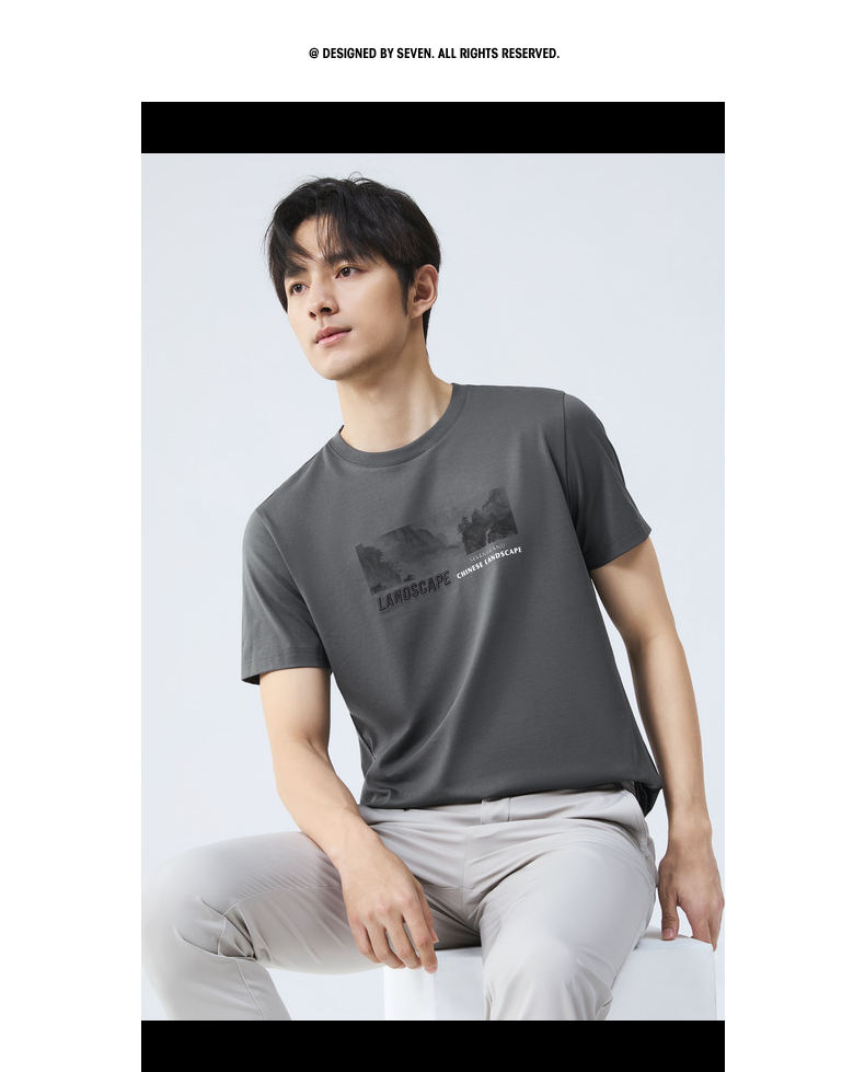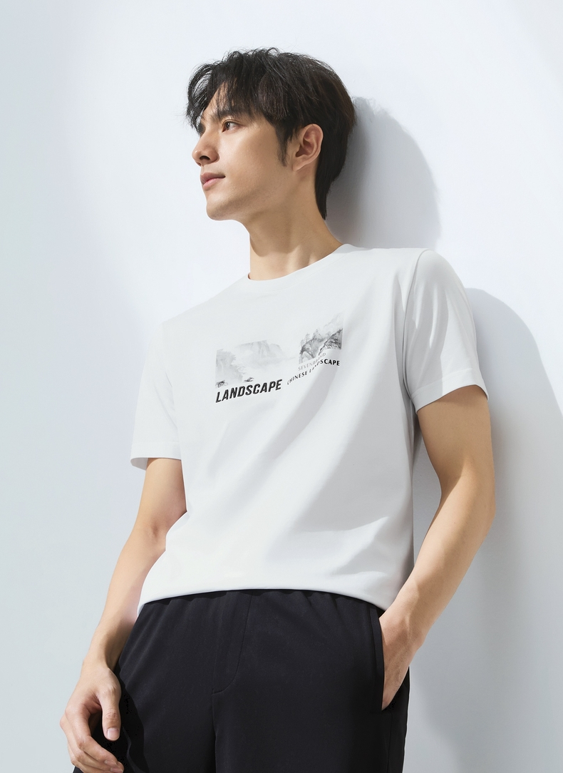 【国风图案T恤/凉感】柒牌短袖T恤男夏季新款时尚休闲圆领体恤衫128T70790