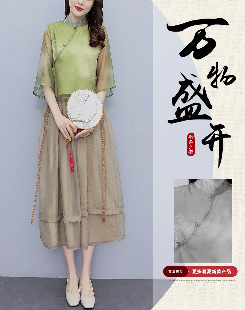 小洋装新中式俩件套套装茶服改良HR-ZMFS23203-1