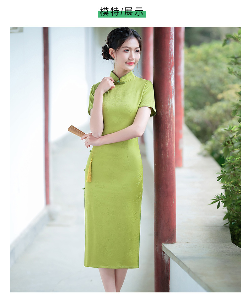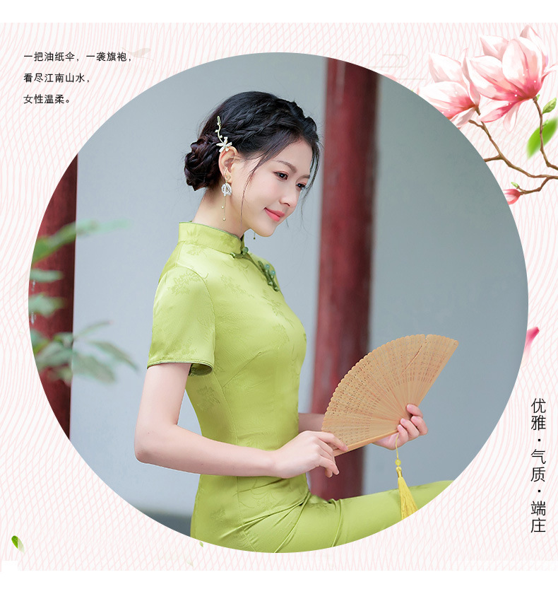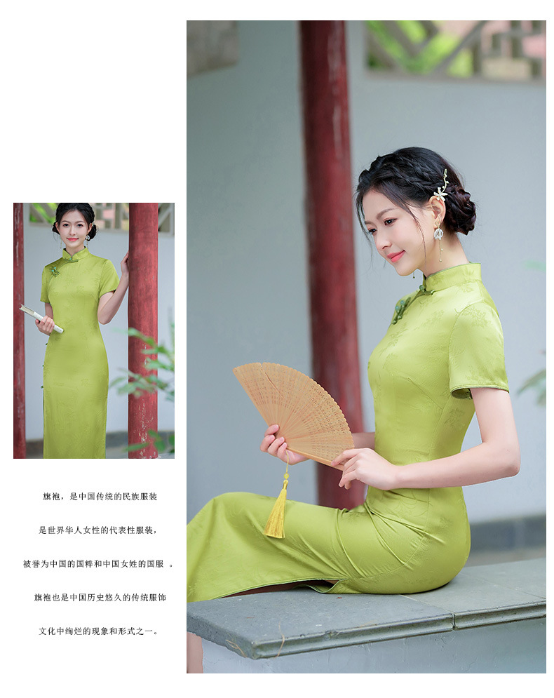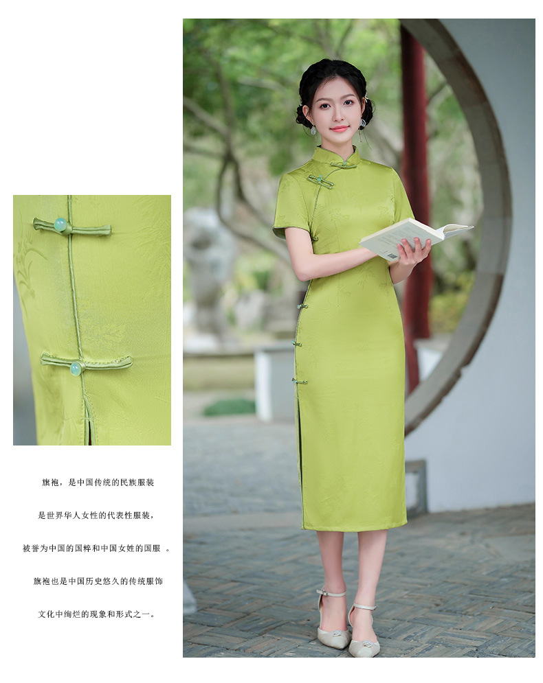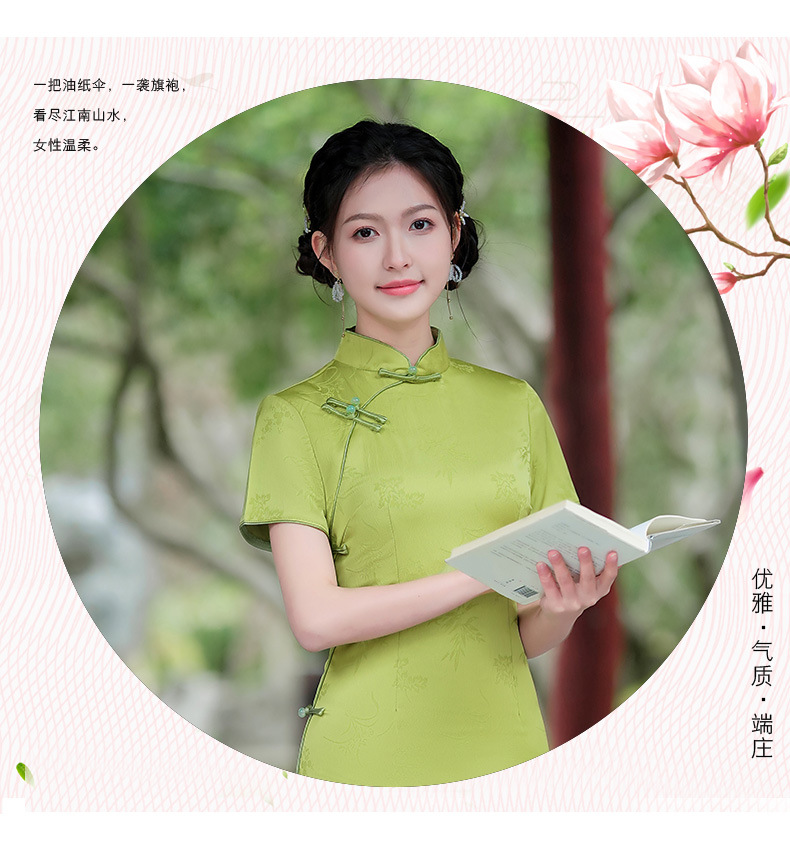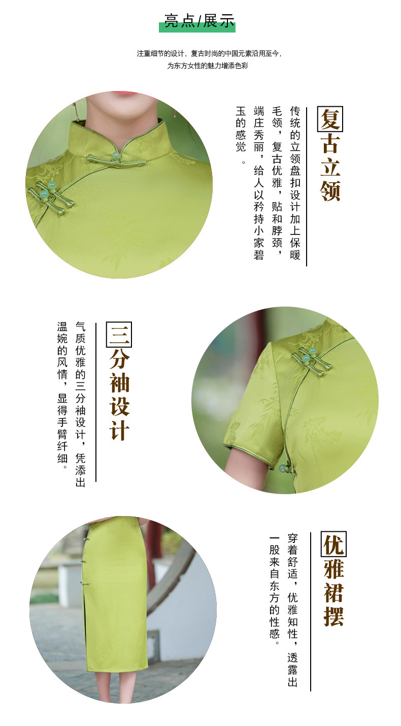 弹力提花旗袍,改良三分袖素雅年轻款连衣裙MLS6315