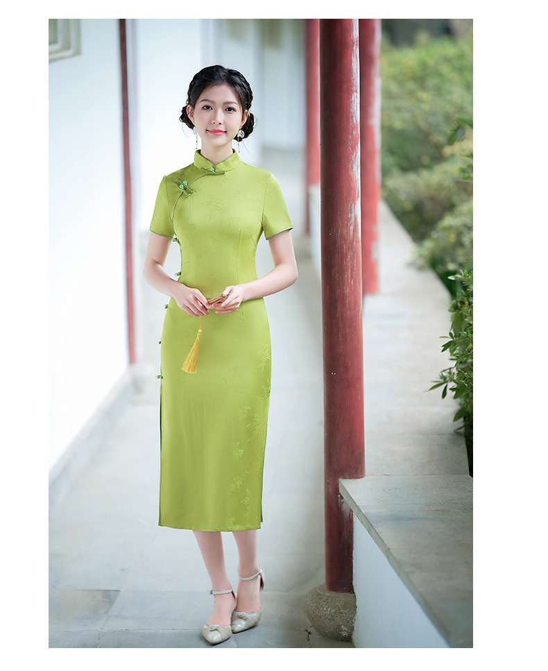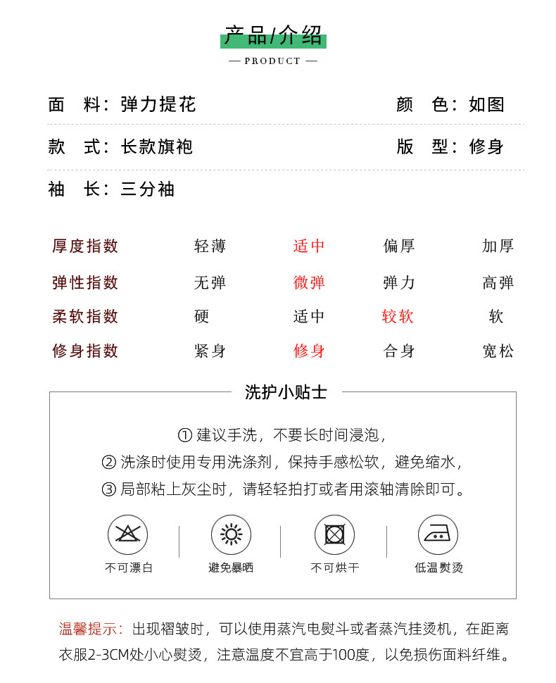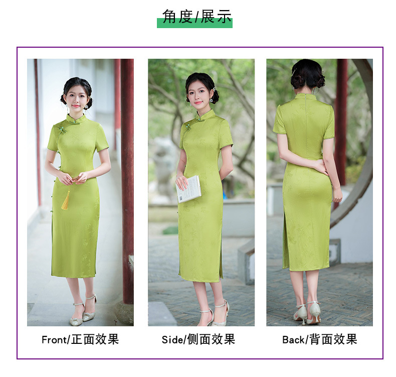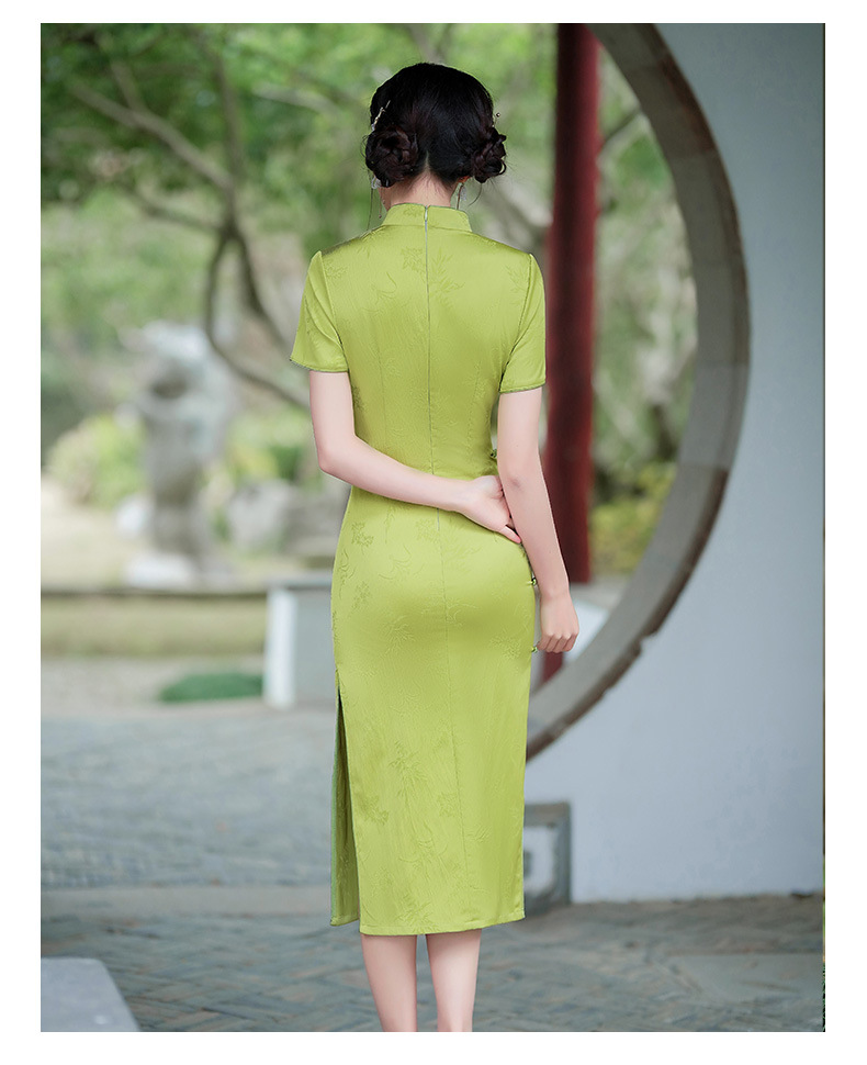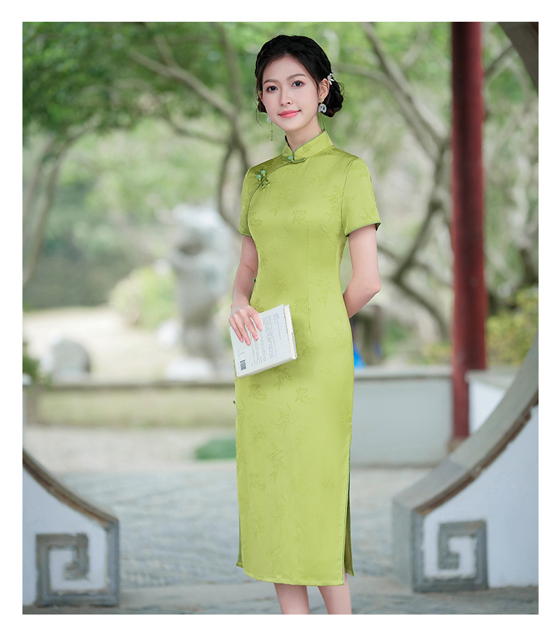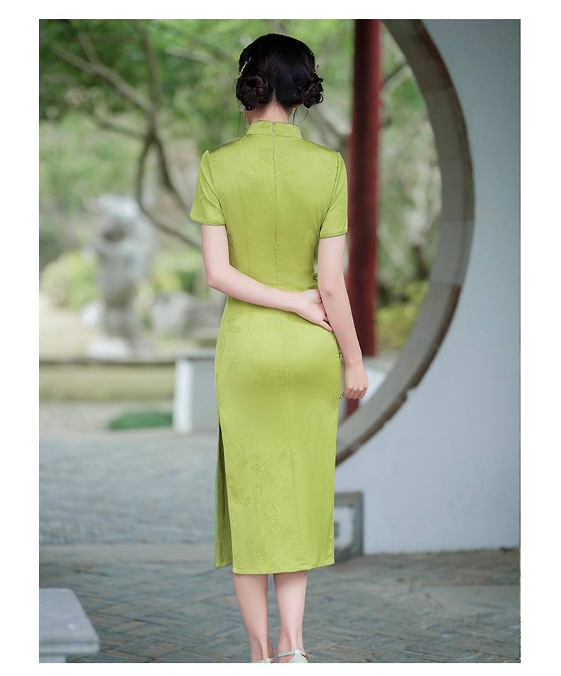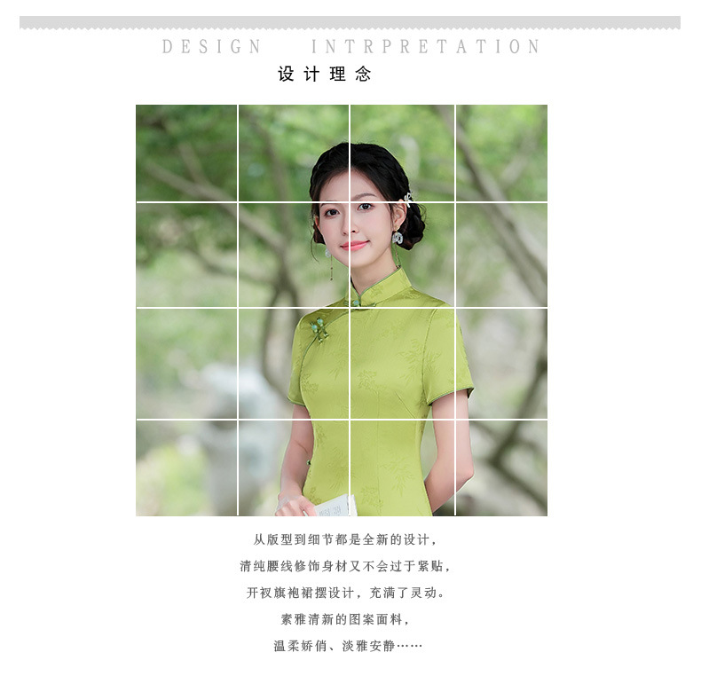 弹力提花旗袍,改良三分袖素雅年轻款连衣裙MLS6315