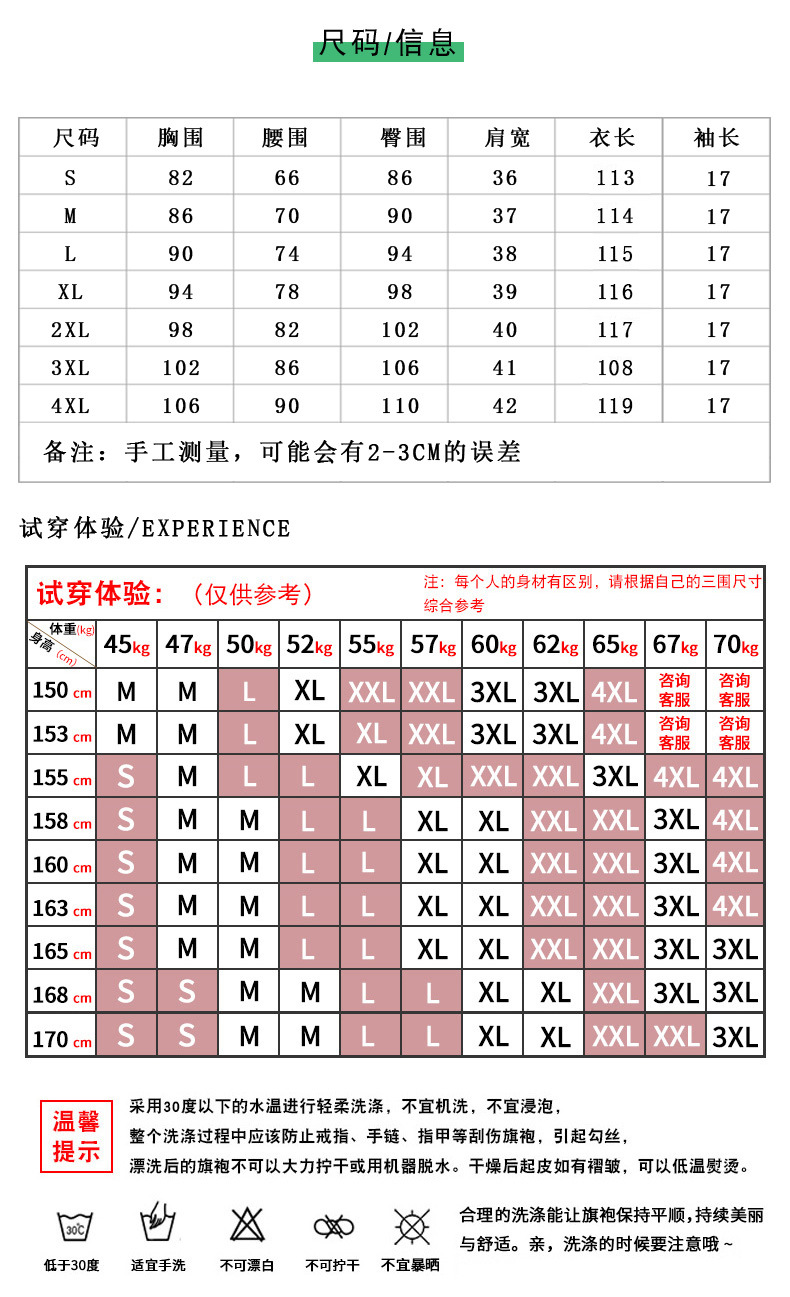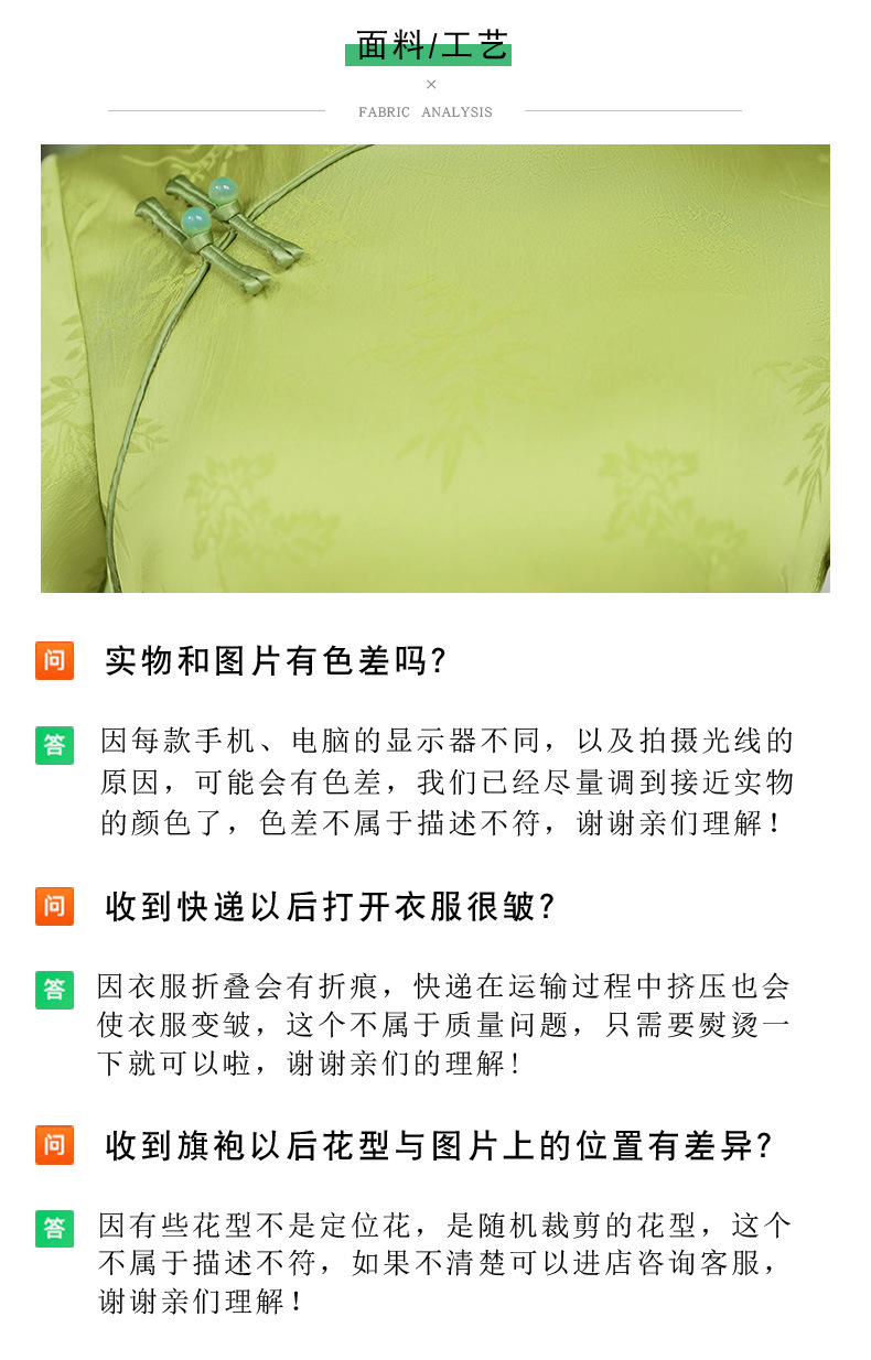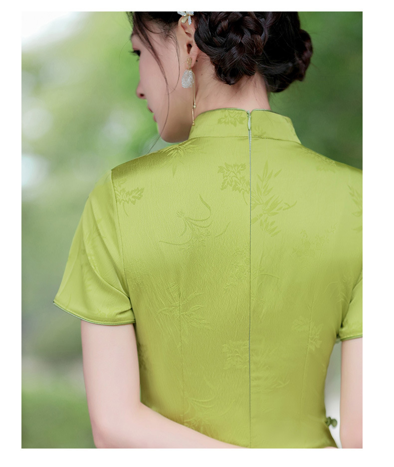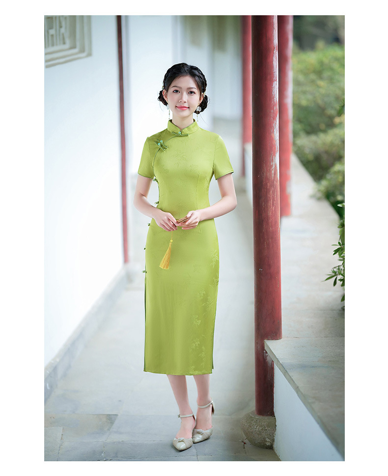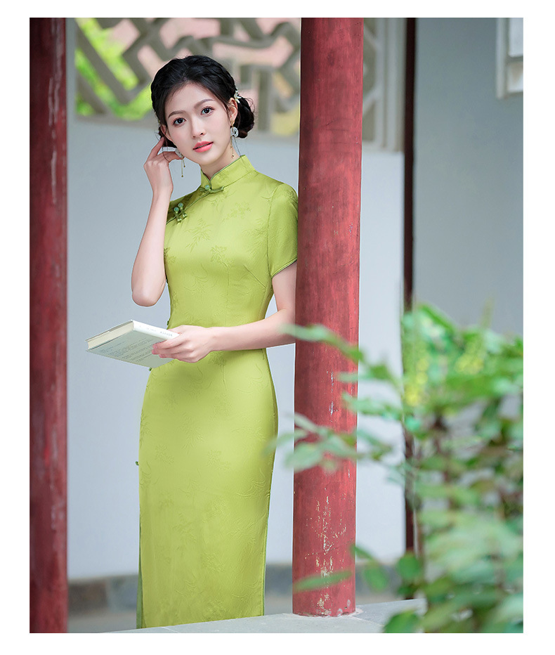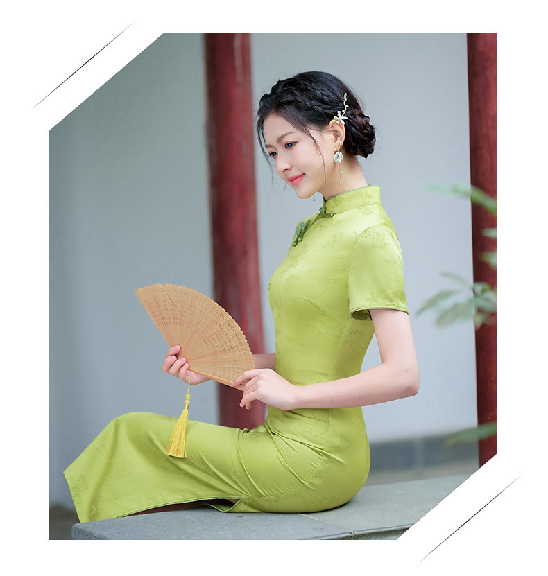 弹力提花旗袍,改良三分袖素雅年轻款连衣裙MLS6315