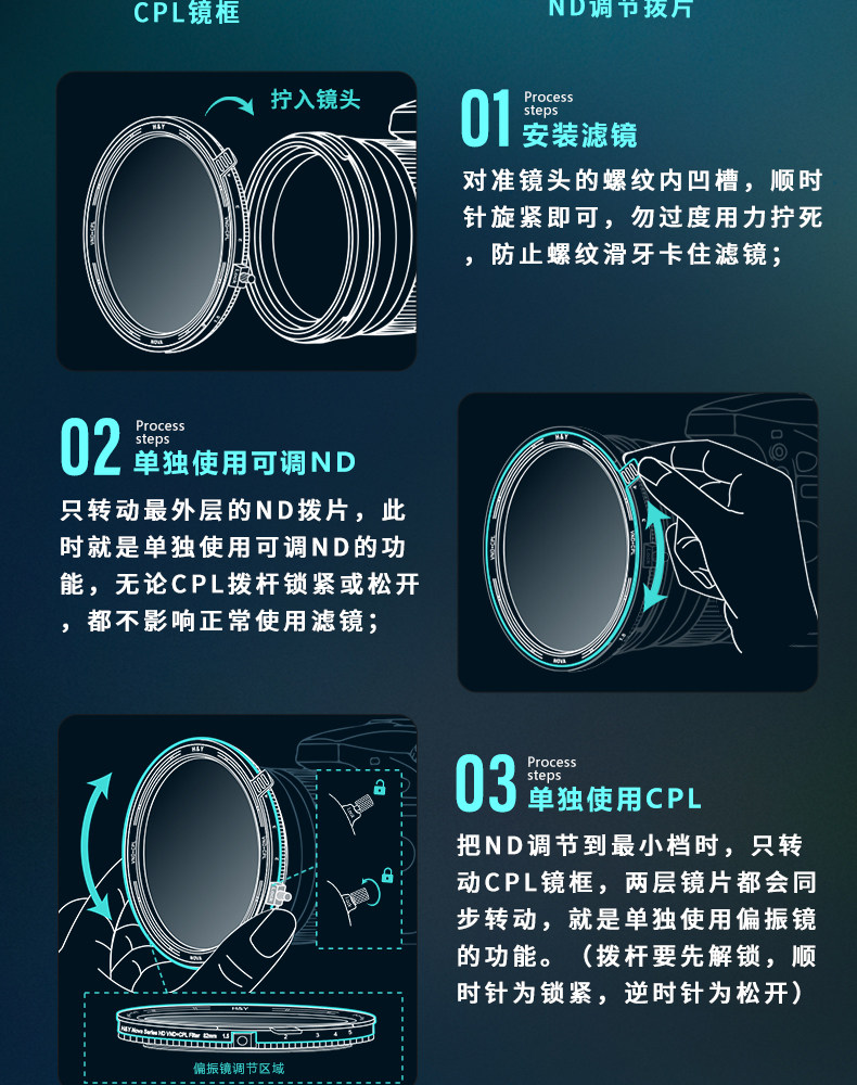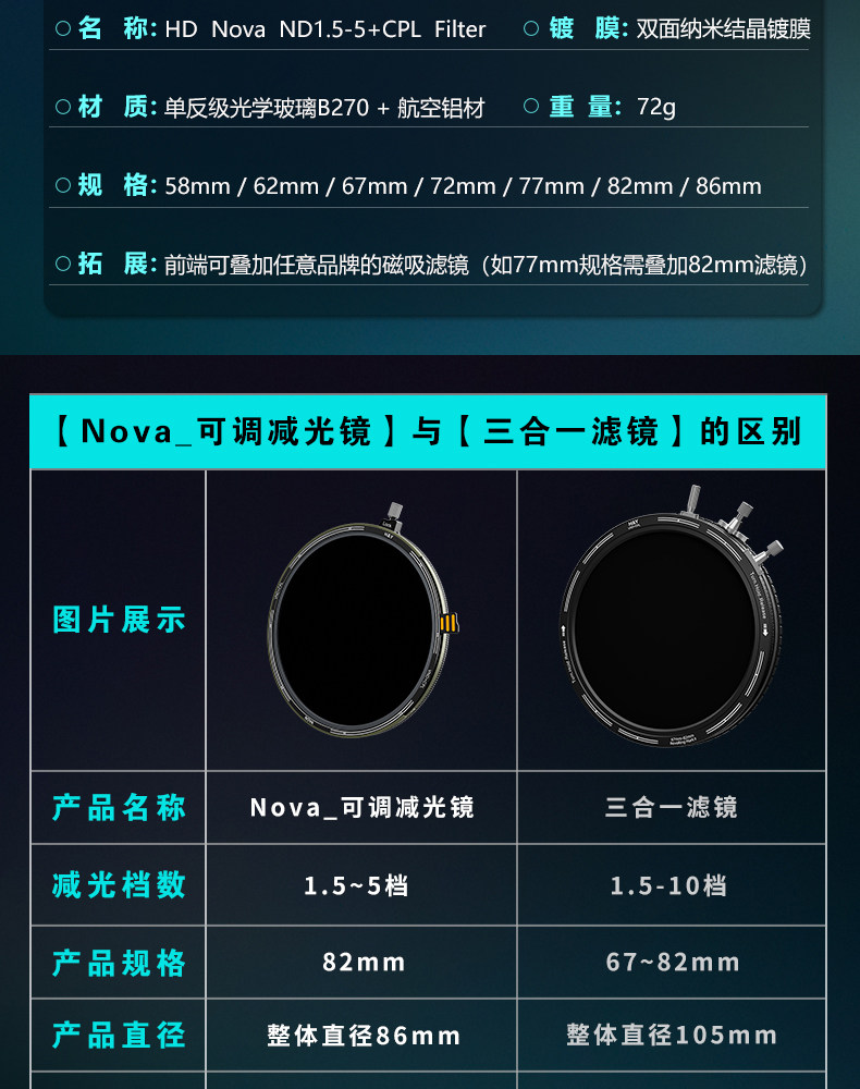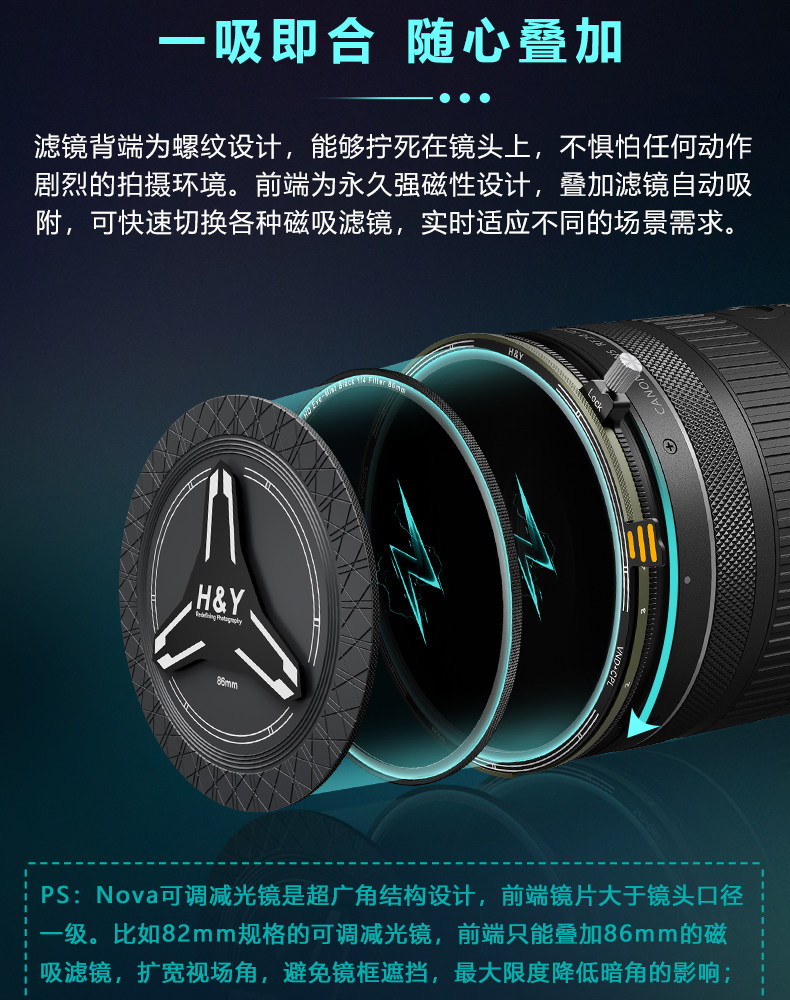 H&Y Nova 可调减光镜 ND+CPL二合一滤镜 摄影摄像利器