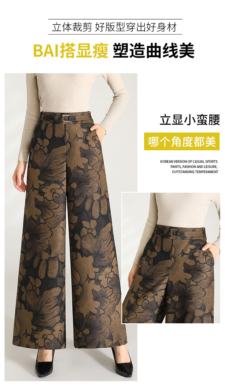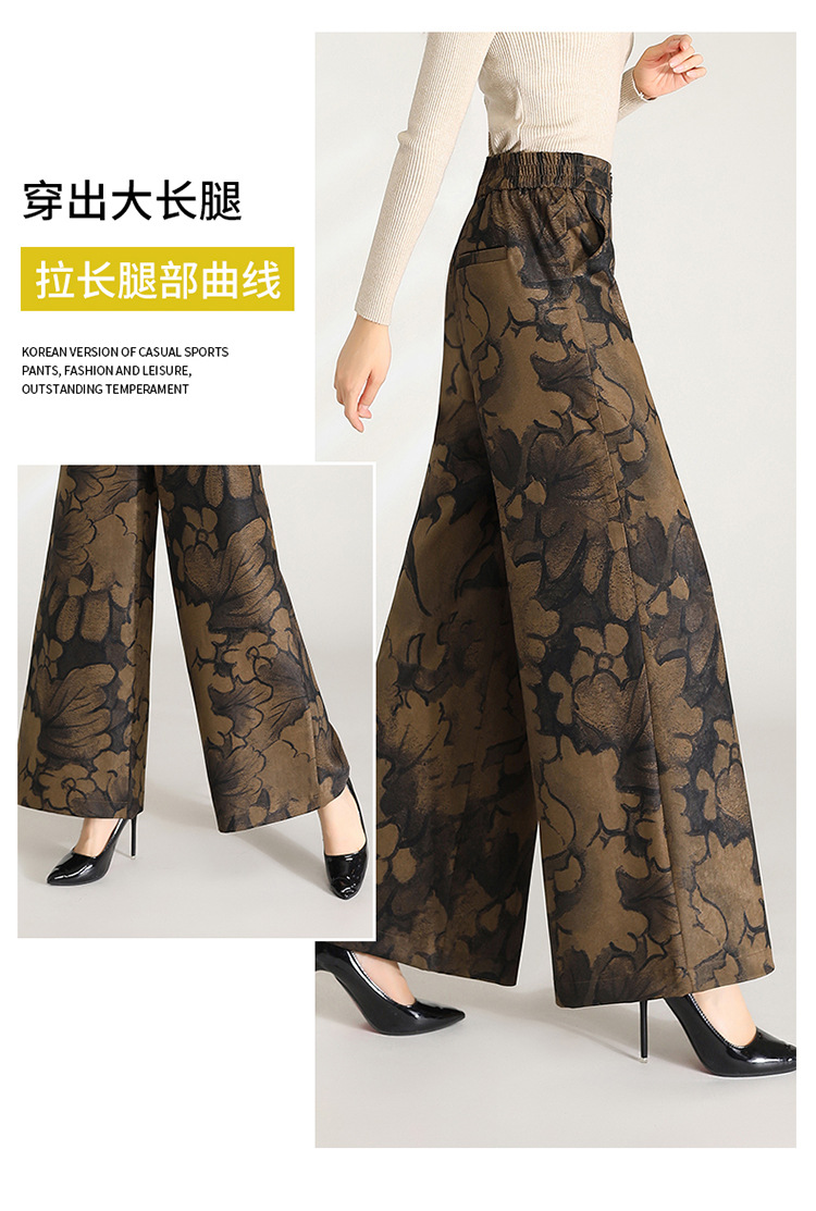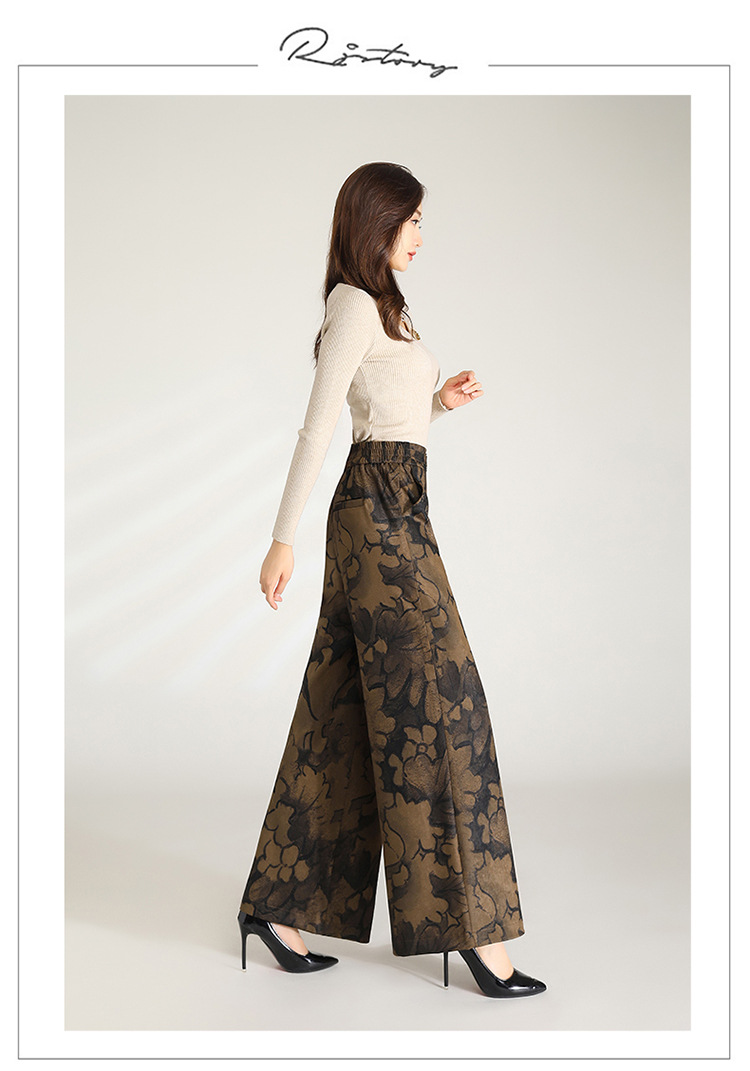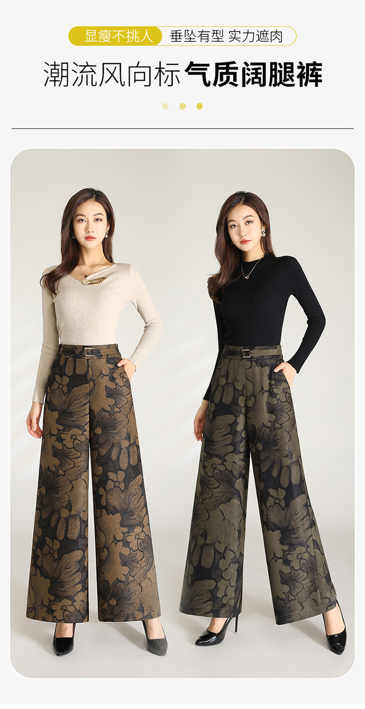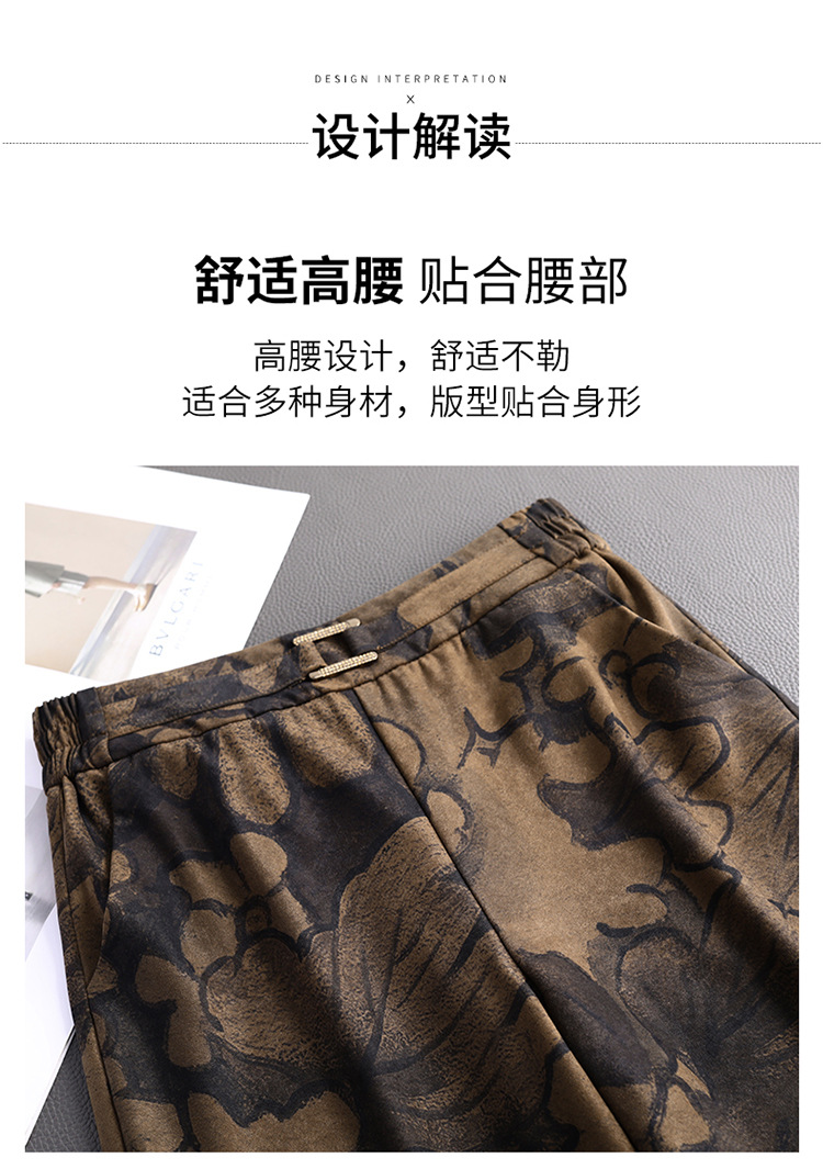 时尚气质阔腿裤,休闲裤长款宽松印花裤QYM- HWM-8815-Y