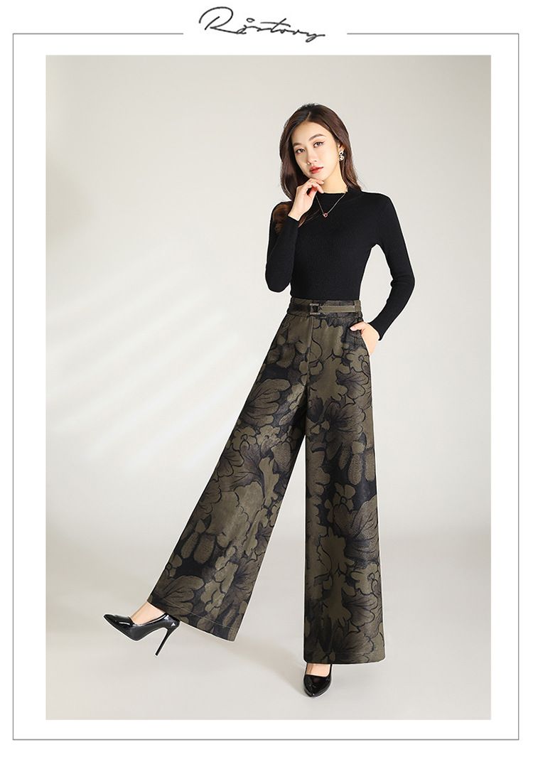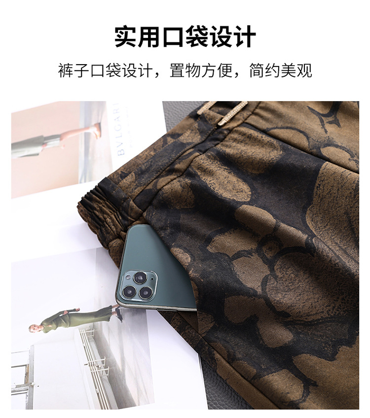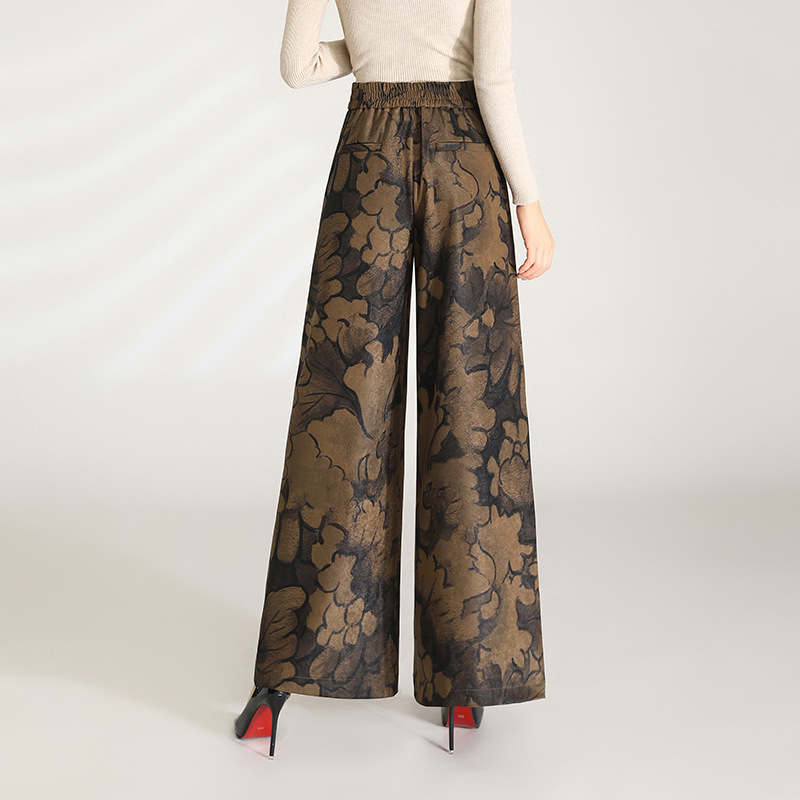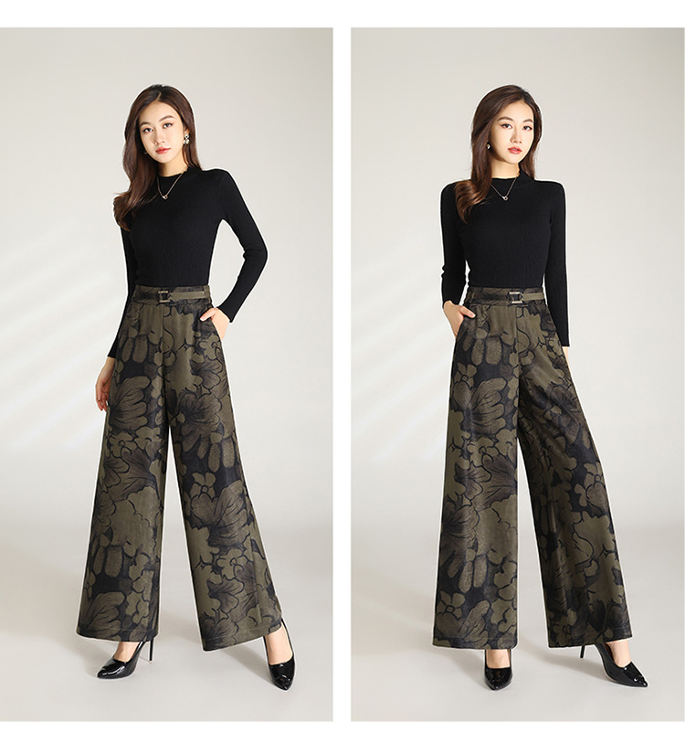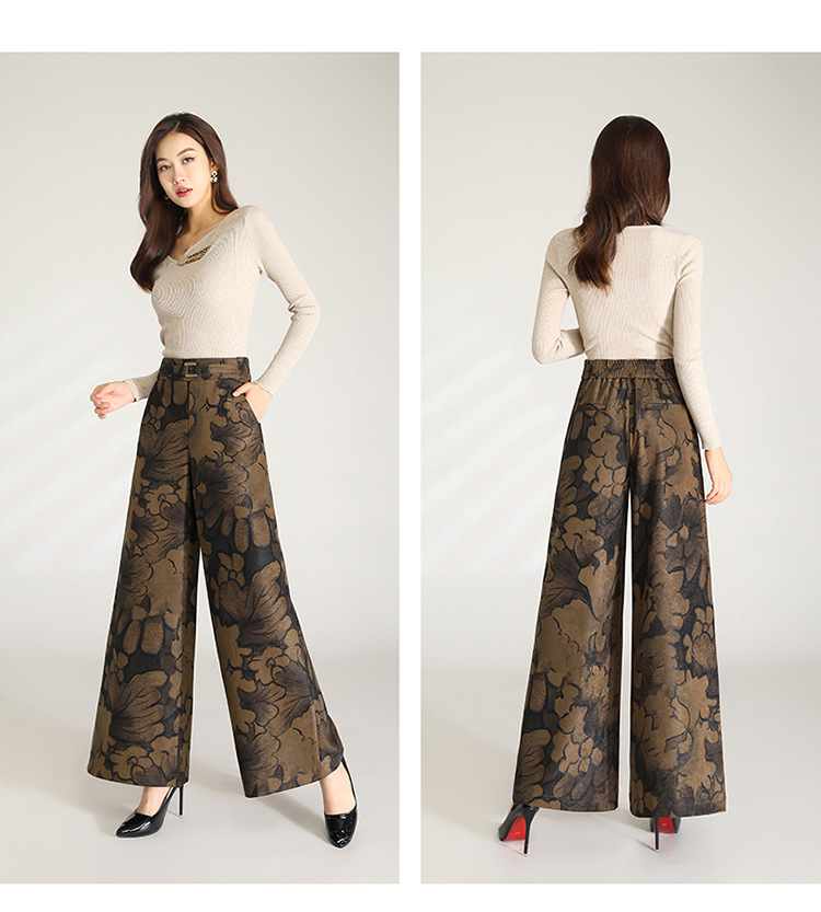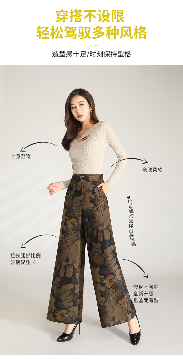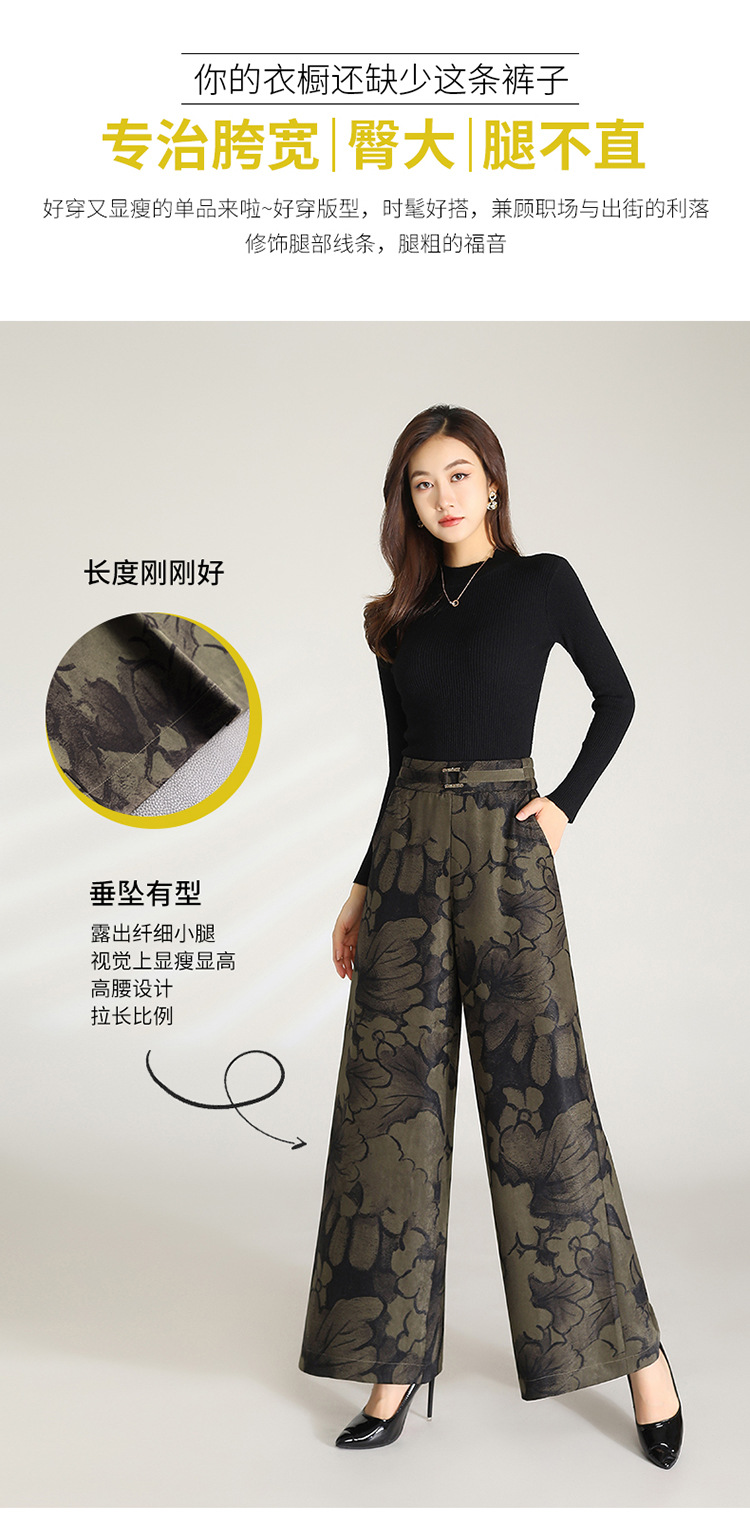 时尚气质阔腿裤,休闲裤长款宽松印花裤QYM- HWM-8815-Y