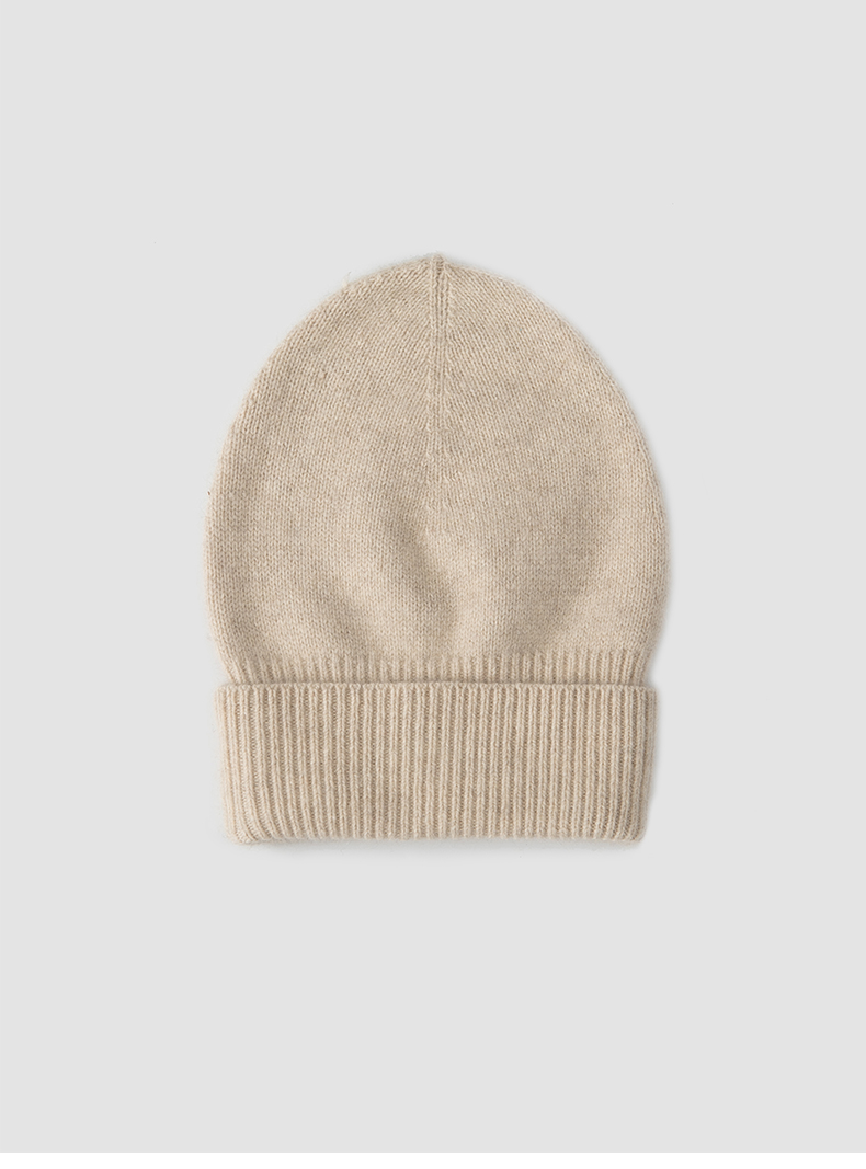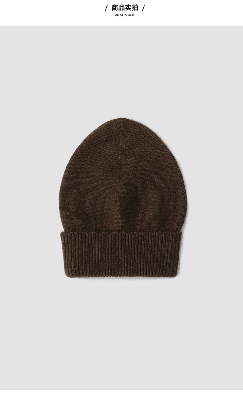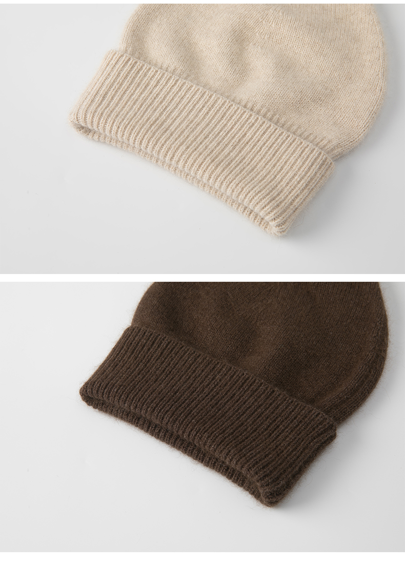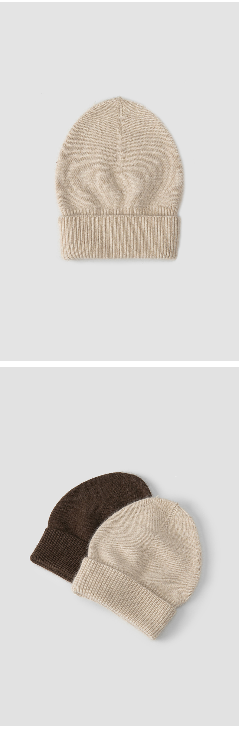 HIDEMI 浣熊毛系列翻边针织圆帽 豆乳米/深摩卡