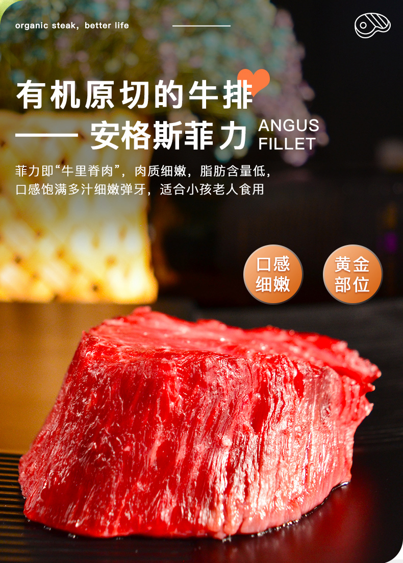 【小区直配】国产新疆天莱香牛安格斯有机鲜菲力牛排A