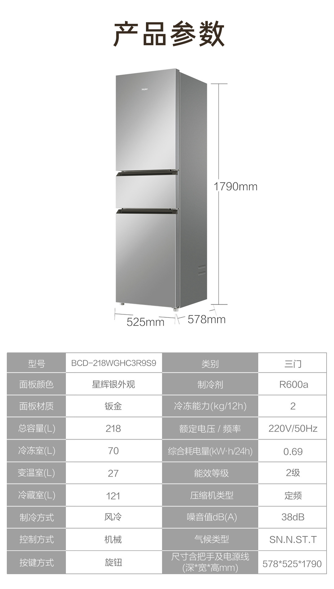 海尔(Haier)冰箱 BCD-218WGHC3R9S9