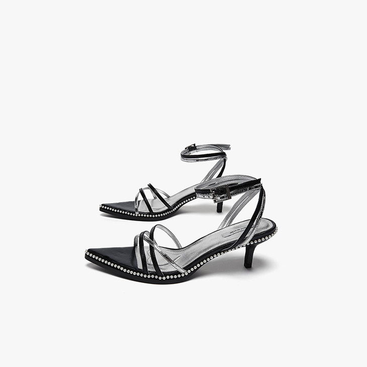 lost in ehco设计师女鞋 2020时尚新款珍珠沿条尖头细带凉鞋