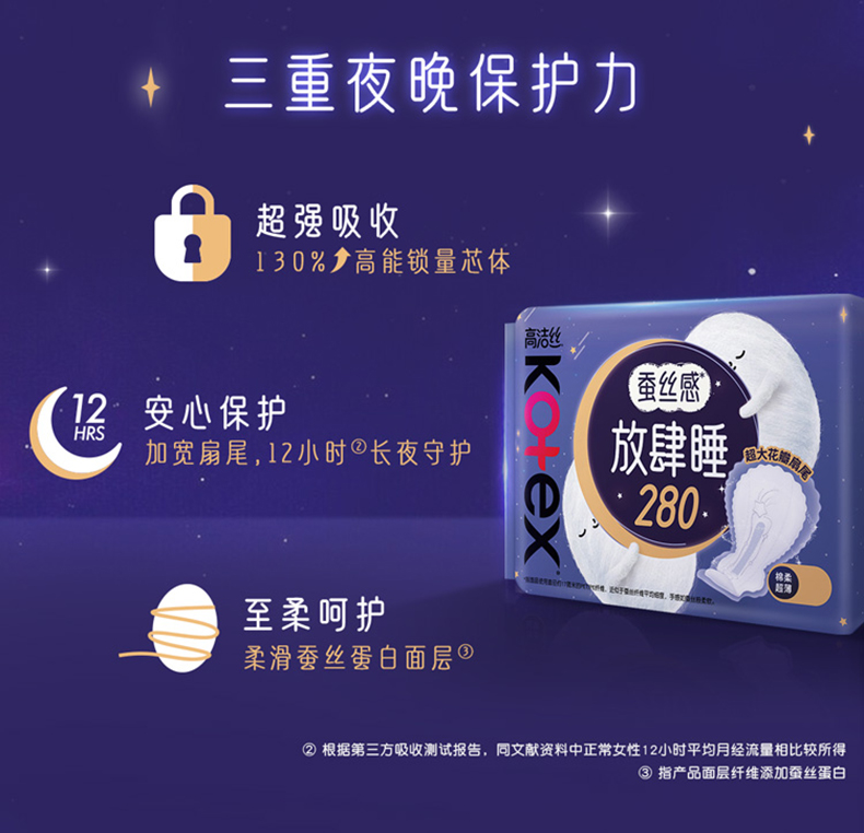 高洁丝经典丝薄棉柔夜用卫生巾280mm16片 (2108157)