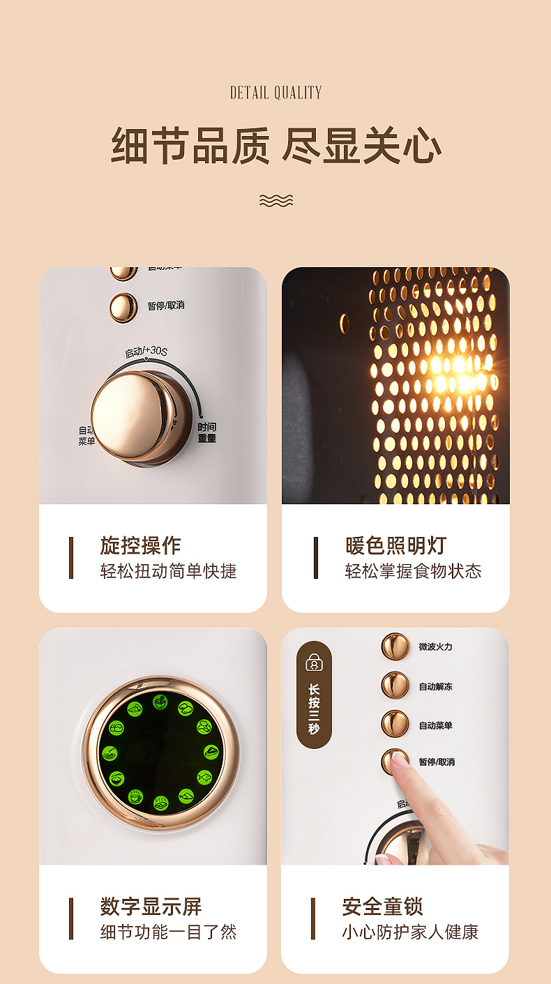 2、细节展示:材质、工艺、做工等;