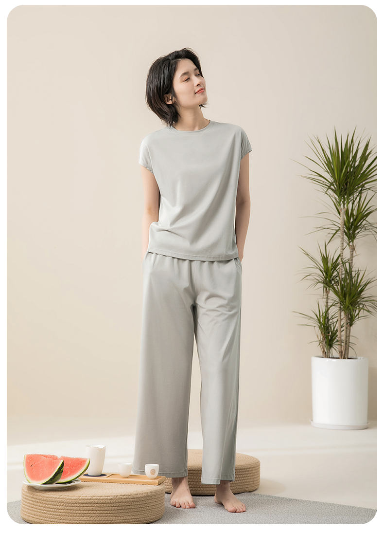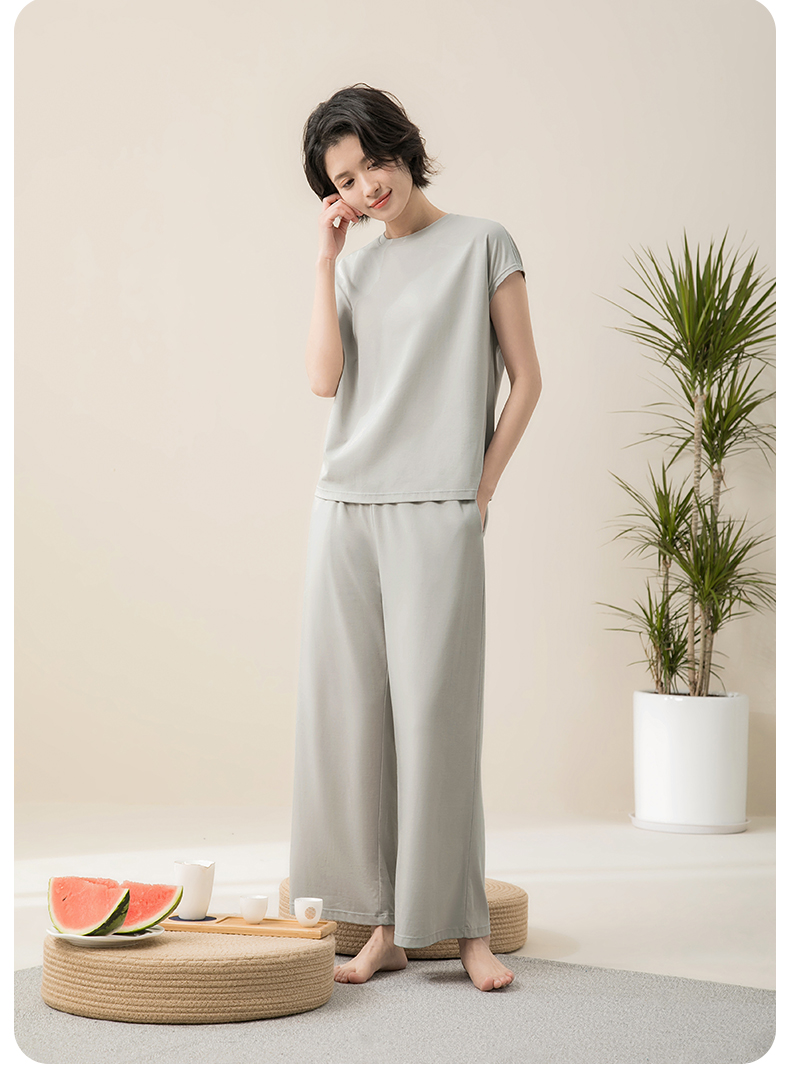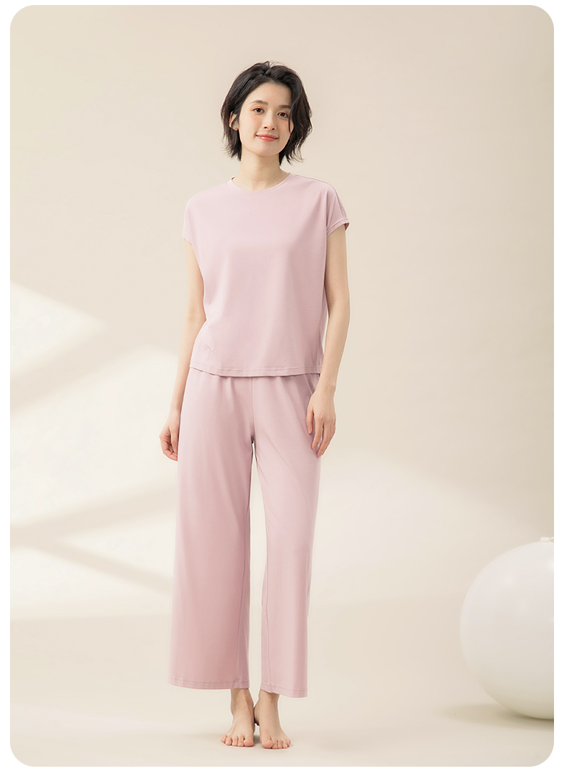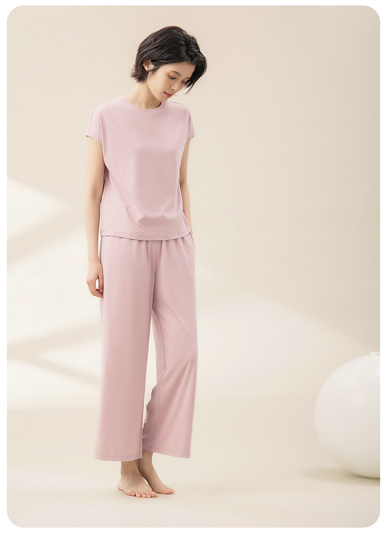 康妮雅睡衣女夏季女式短袖长裤套头套装