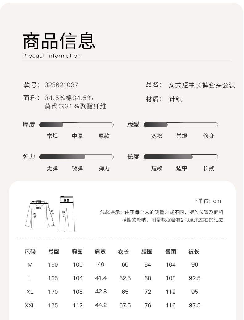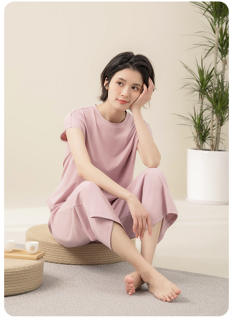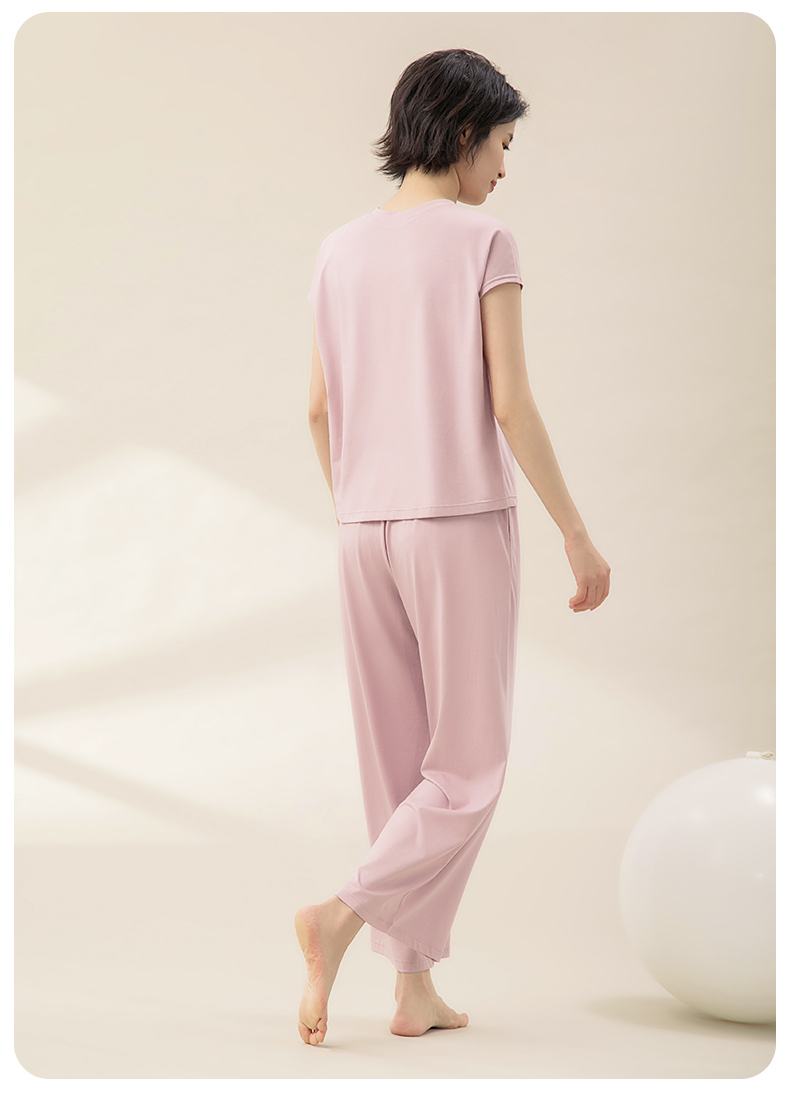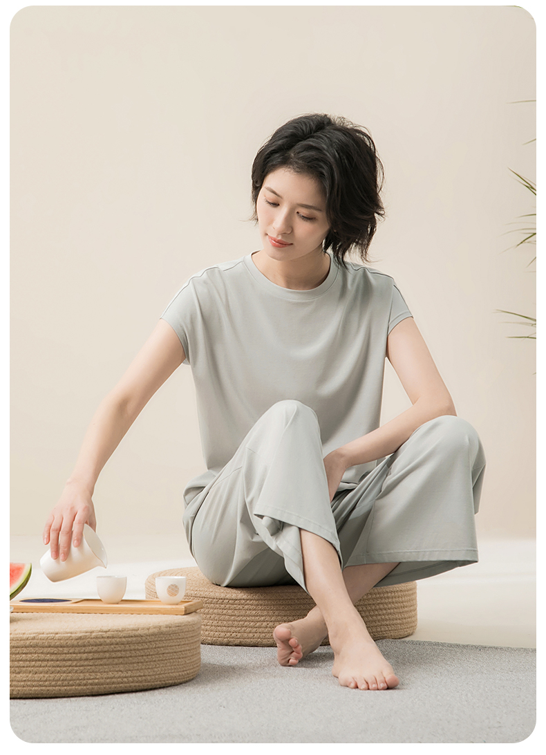 康妮雅睡衣女夏季女式短袖长裤套头套装