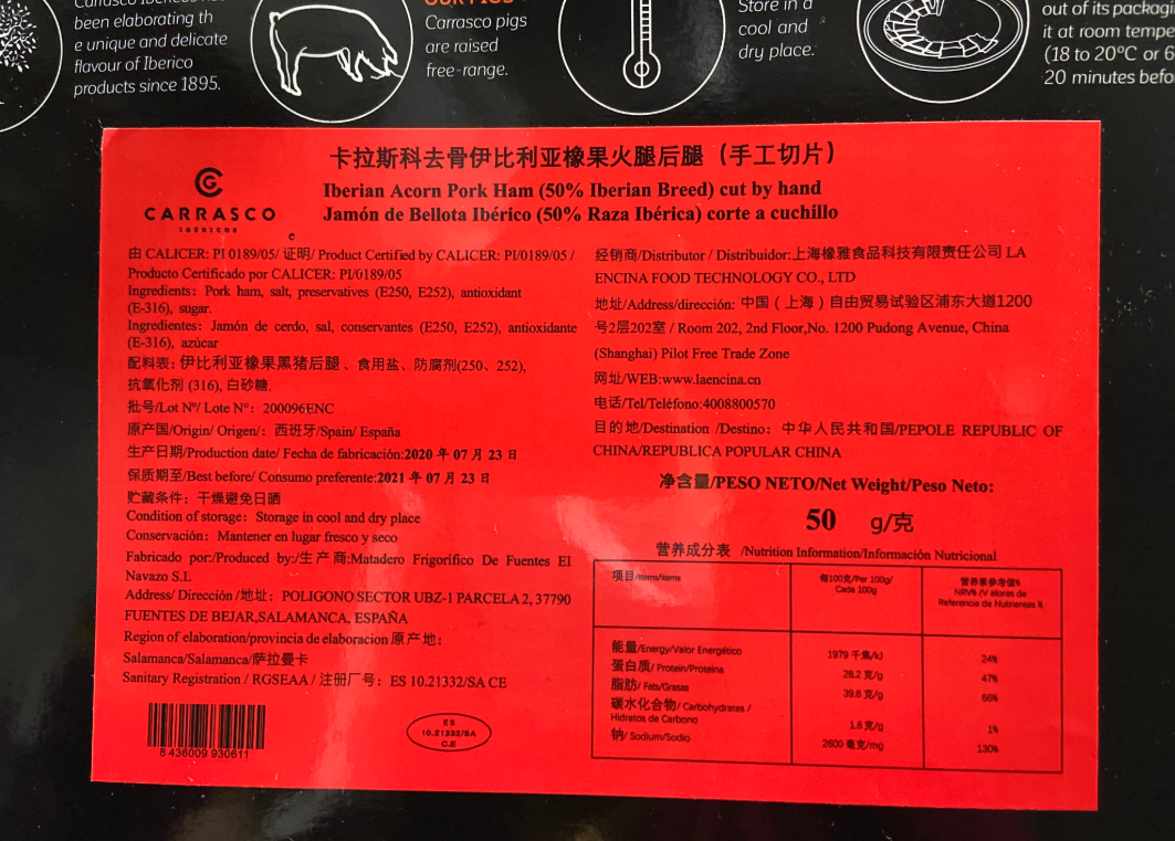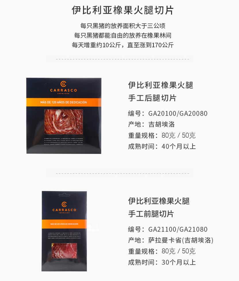 【125年四代传承的西班牙风味】Carrasco伊比利亚橡果后腿48个月风干 手工切片生吃火腿50g 西班牙原装进口