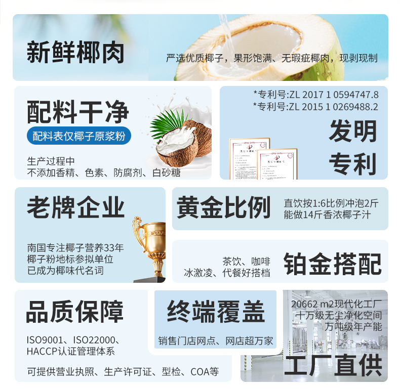 南国集团是一家以生产加工海南特色食品及经营管理旅游购物超市为主导的中型民营企业,26年来专供以椰子为原料的健康营养产品,是中国驰名商标农业产业化国家重点龙头企业。