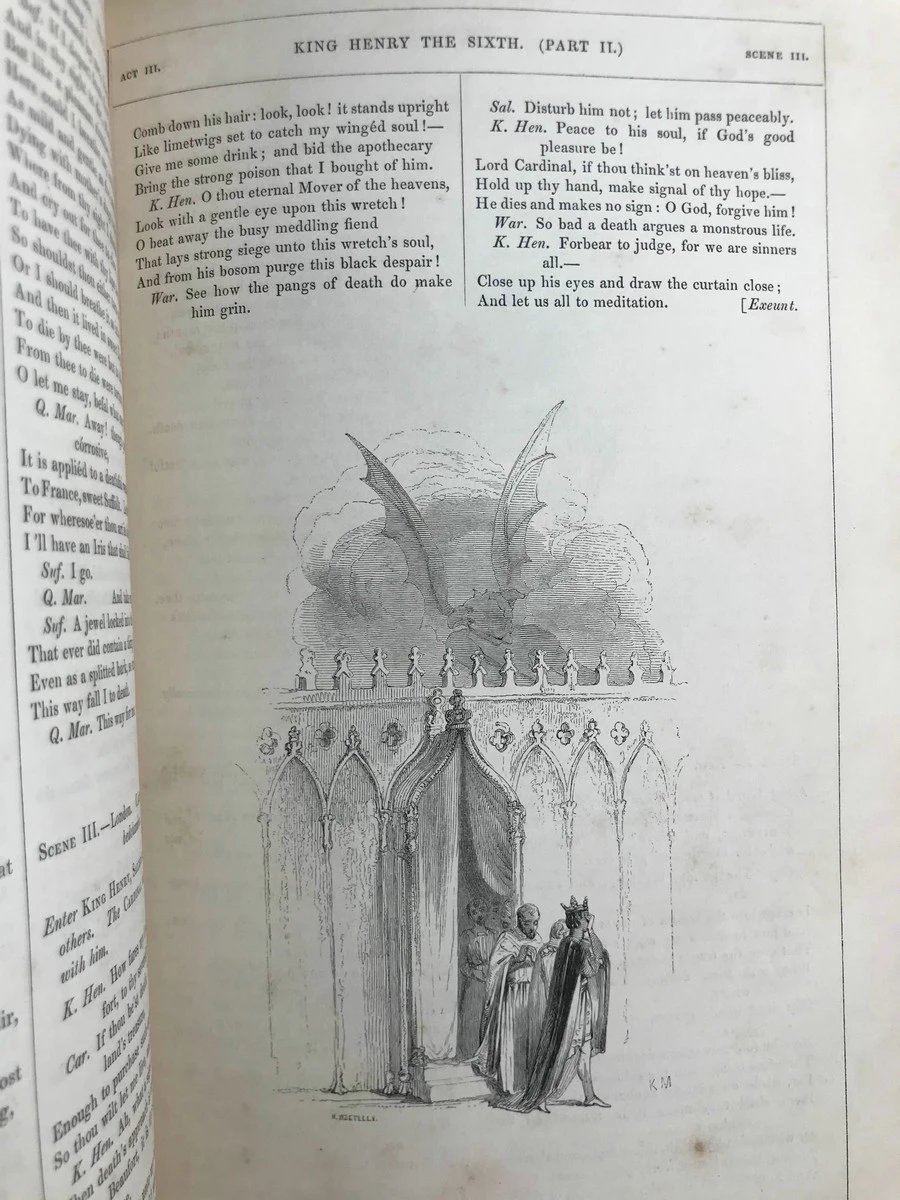 他把理查三世画成猪!1843年 莎士比亚作品集(存2卷) 肯尼·梅多斯近千幅版画插图 真皮精装16开