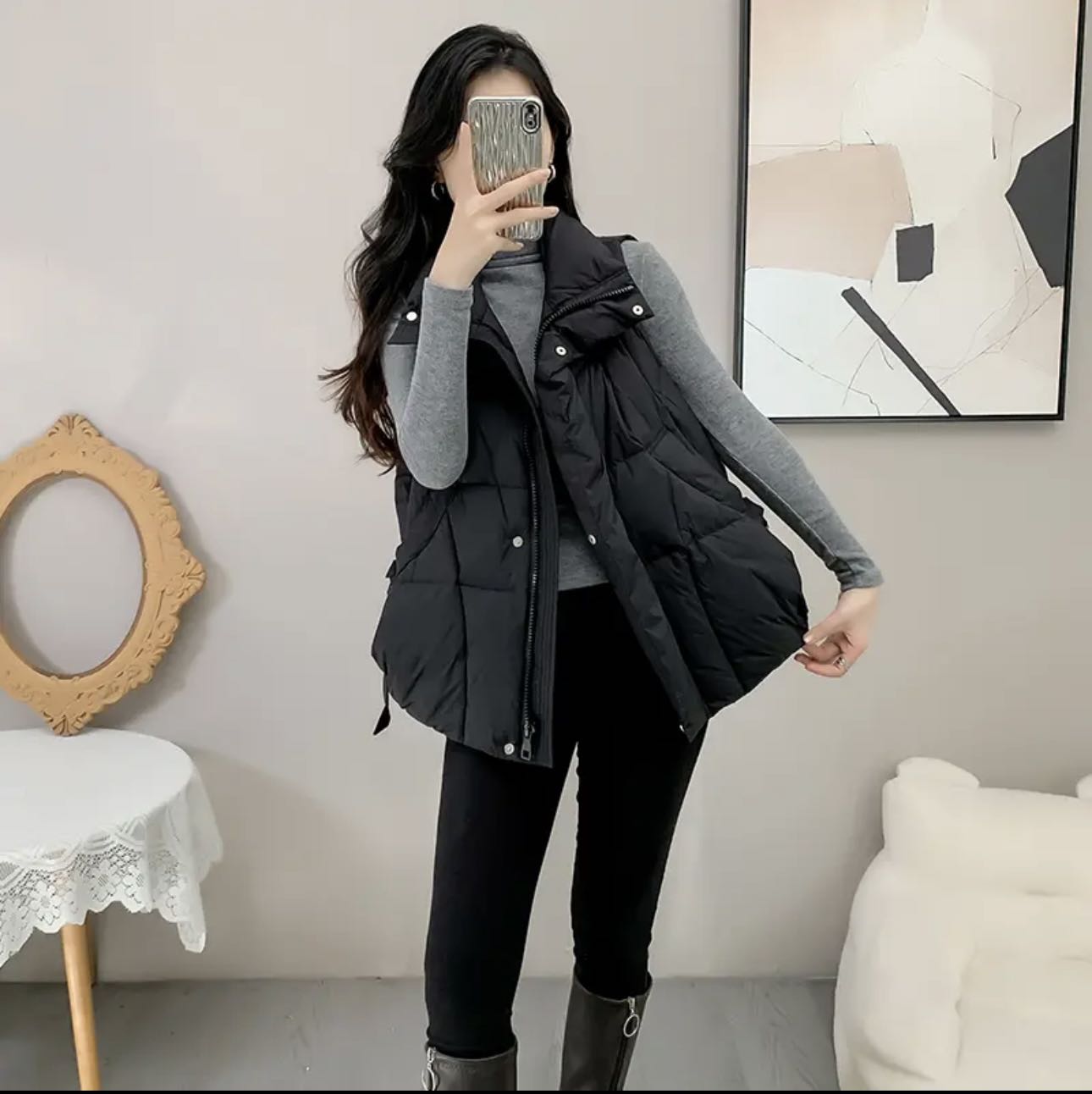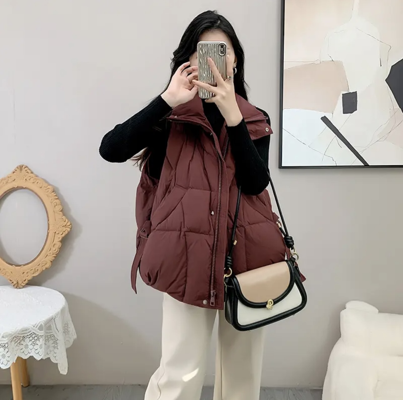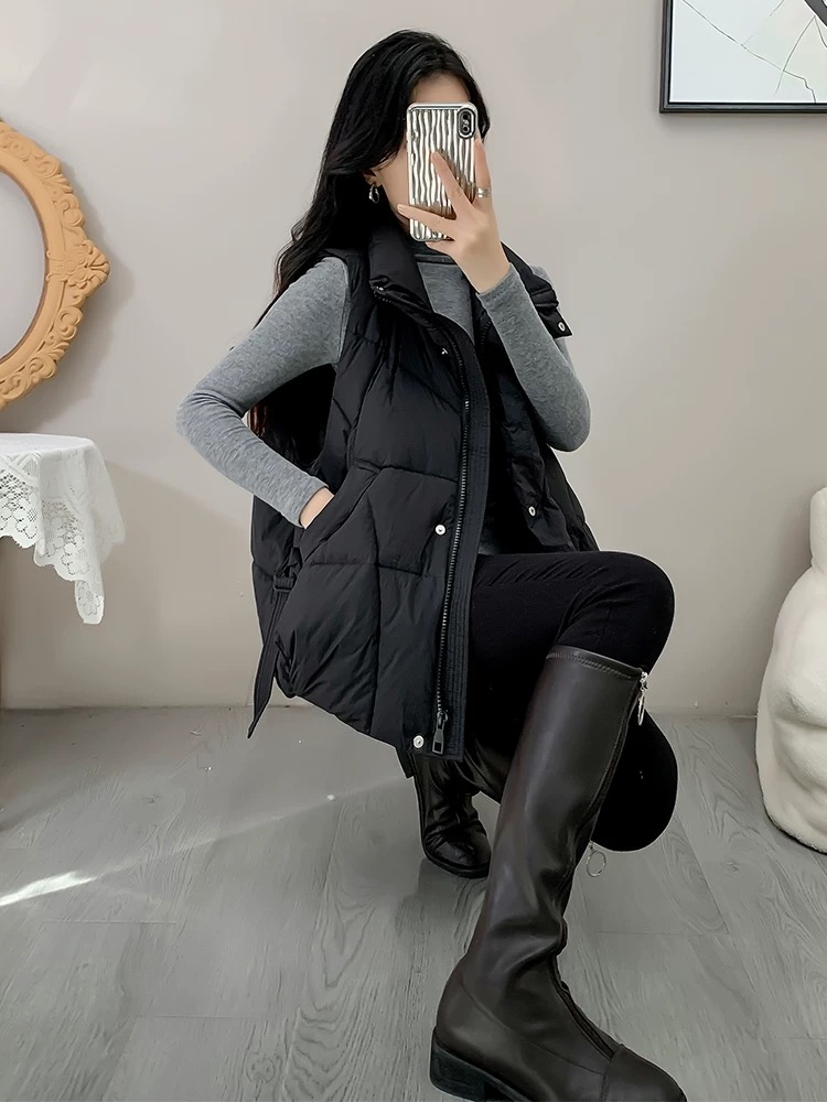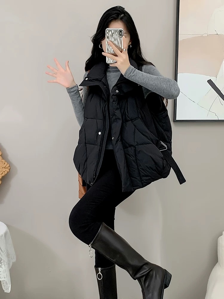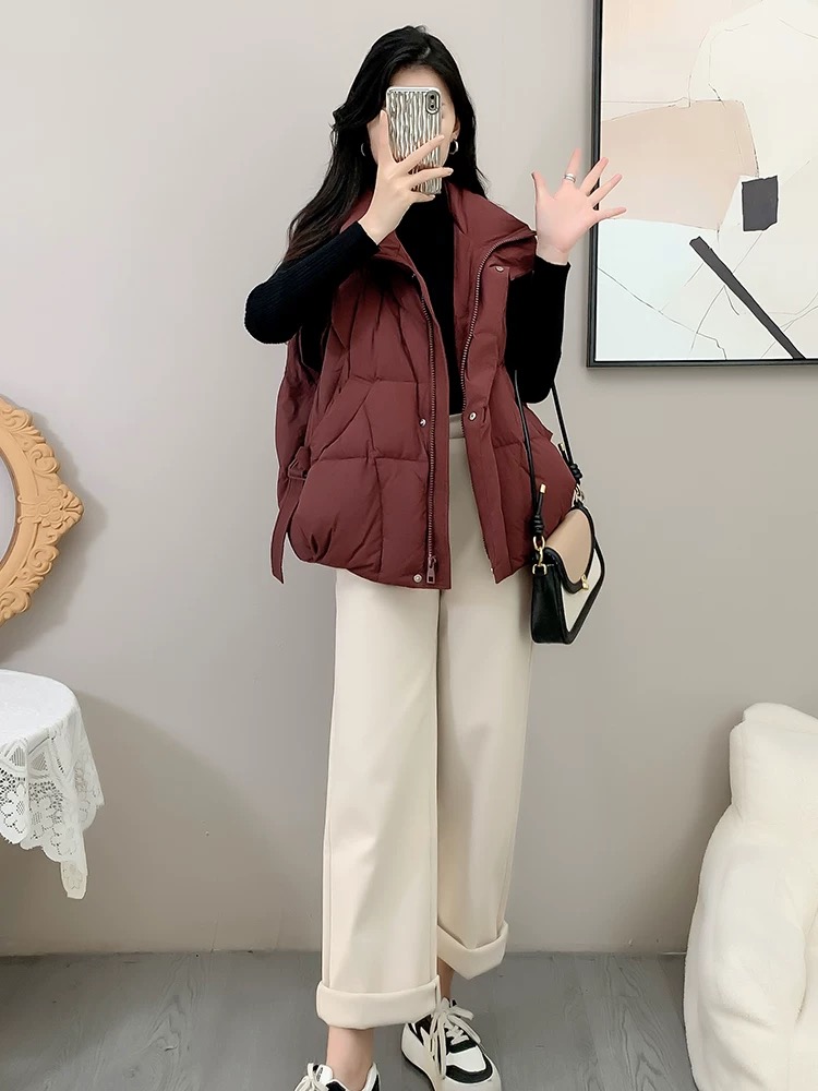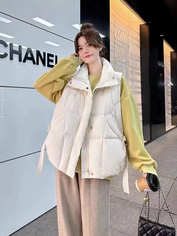 【YW】无忧购“反季清仓”韩版松弛感轻薄百搭立领飘带羽绒马甲6301(截单后3-5天发货)