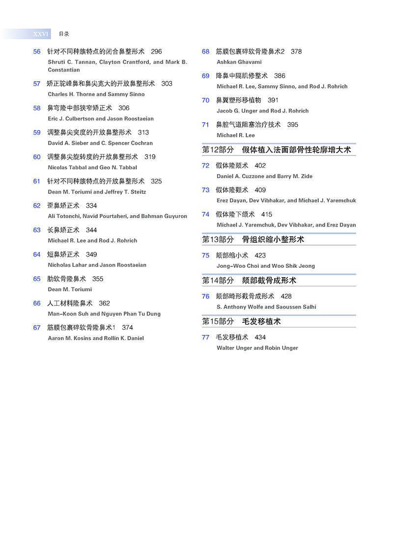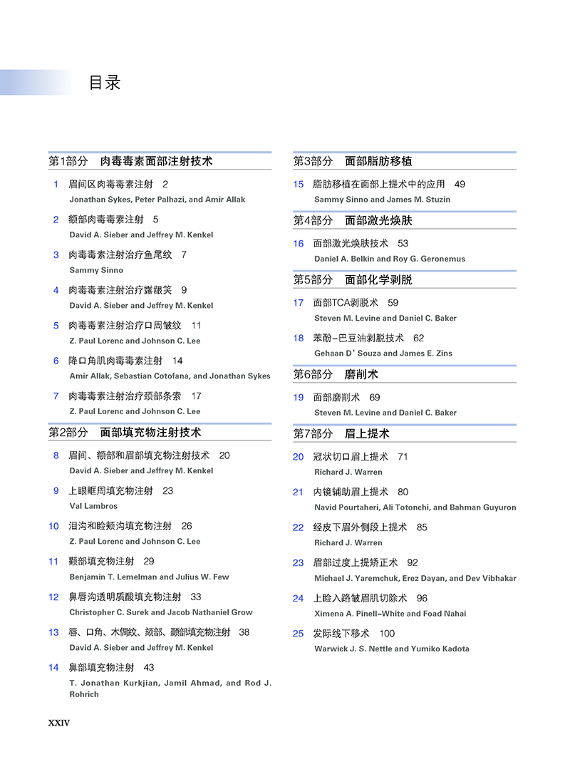 本书是本系列丛书的第一部分,主要介绍了面部美容外科的常用手术技巧,由美国纽约莱诺克斯希尔医院整形科主任Charles H. Thorne担任主编。全书共15个部分77章,内容包括透明质酸和肉毒毒素注射、化学焕肤、激光治疗、脂肪移植、眼鼻整形美容、面颈部上提、面部轮廓整形、毛发移植等常见美容外科技术。