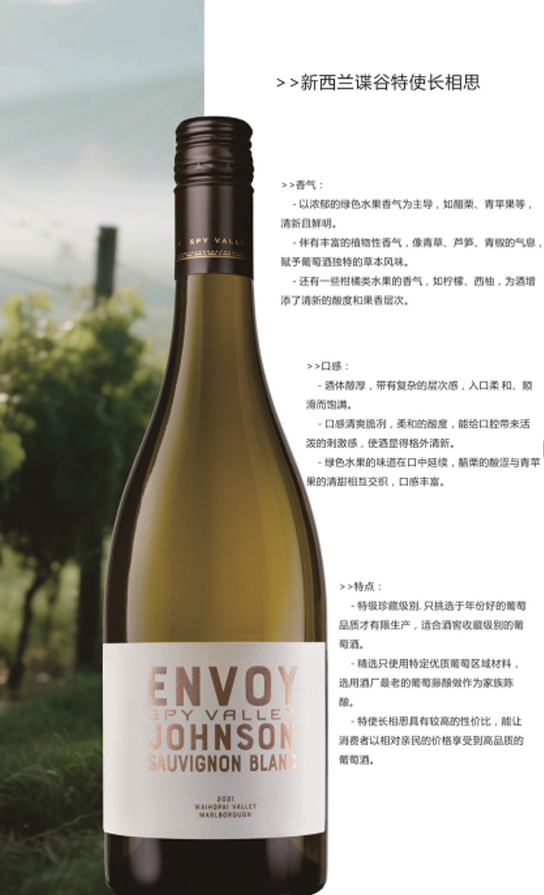 碟谷新西兰马尔堡大使长相思白葡萄酒750ml清新果香口感醇厚