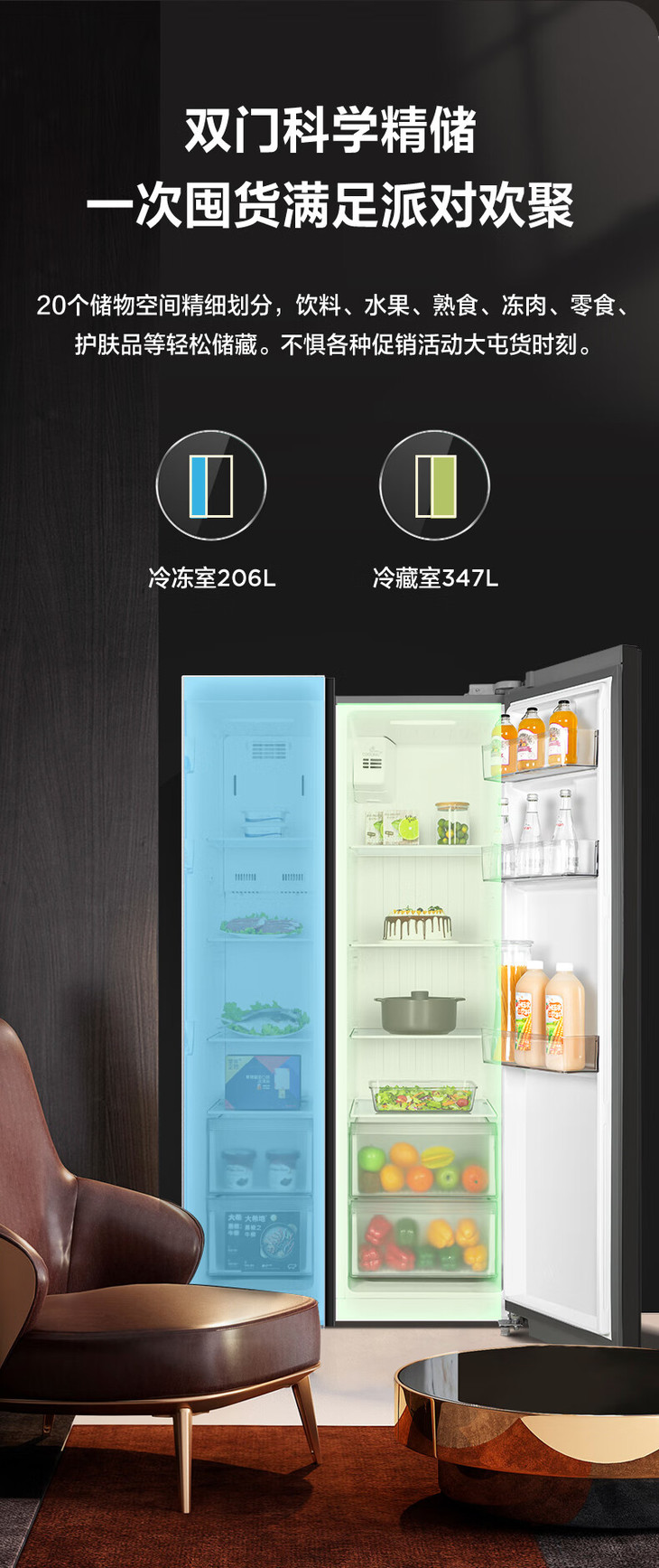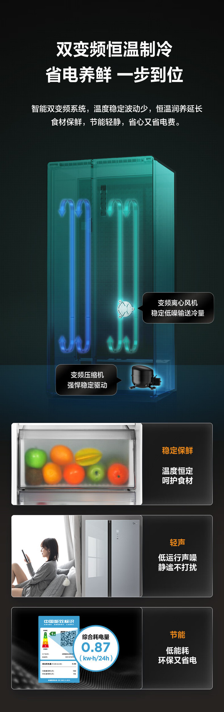美的(Midea)(202618 )美家系列553升对开门冰箱双门大容量一级能效节能净味电冰箱 BCD-553WKGPM