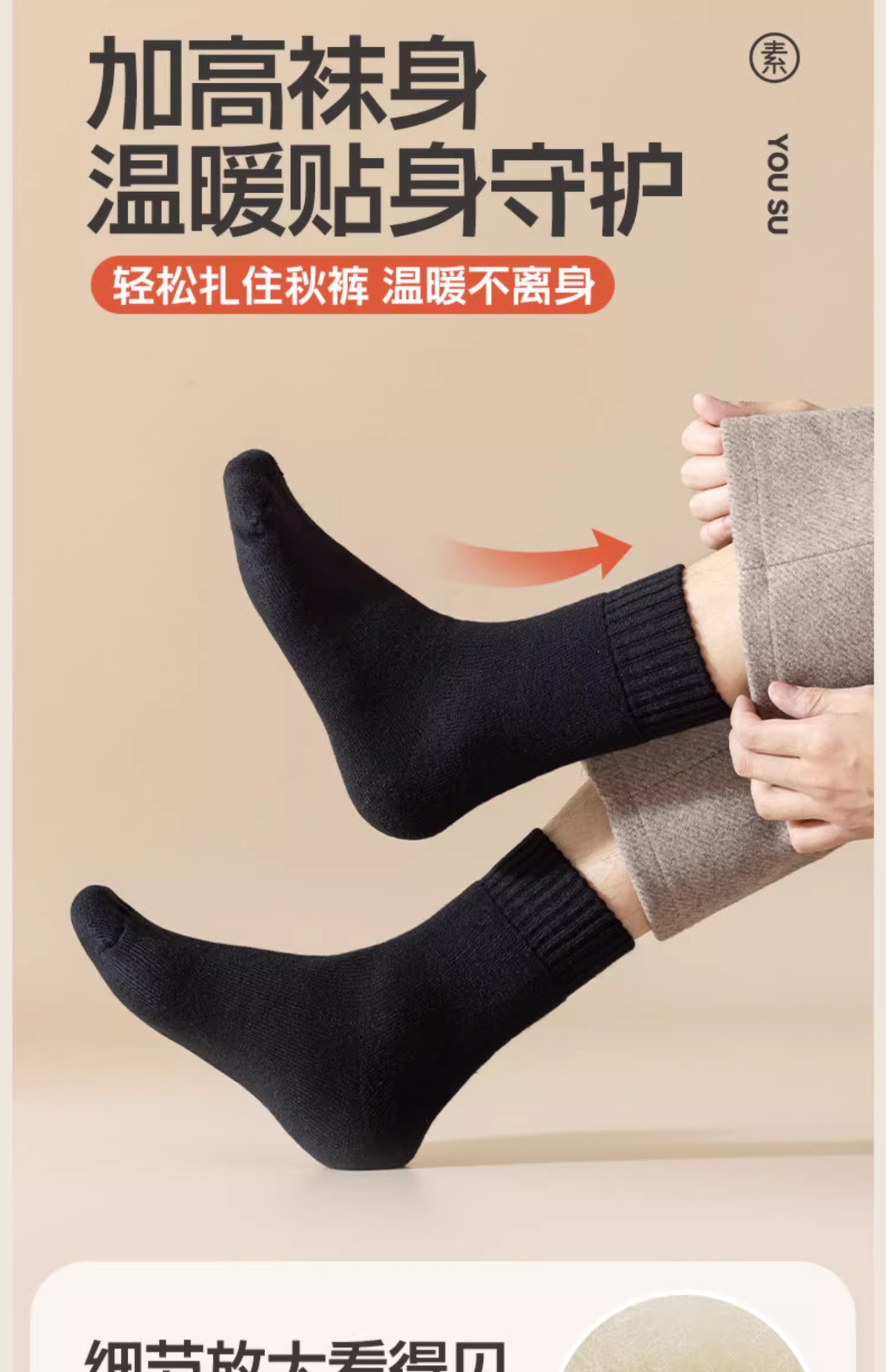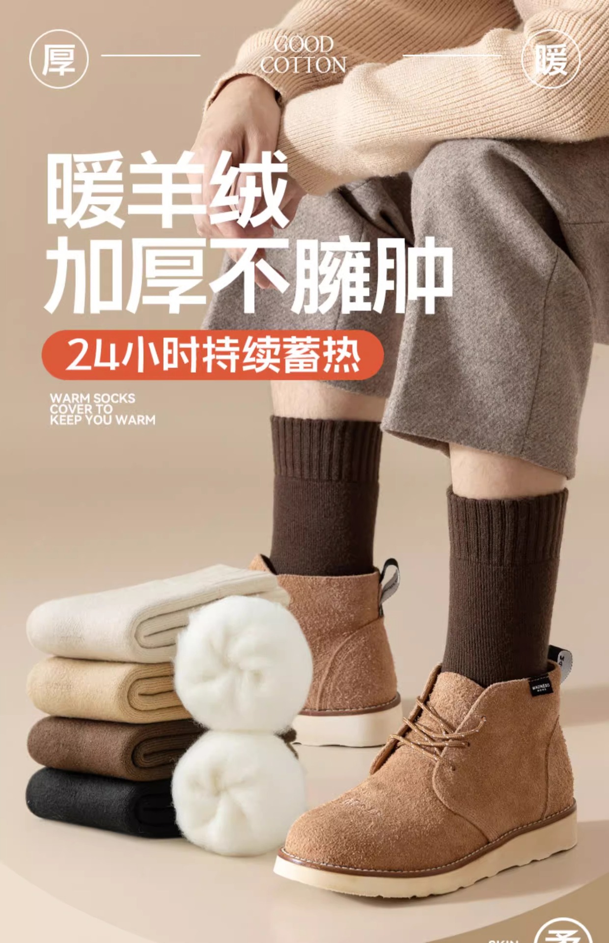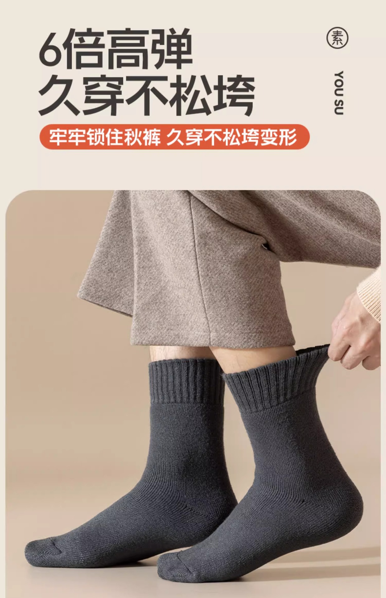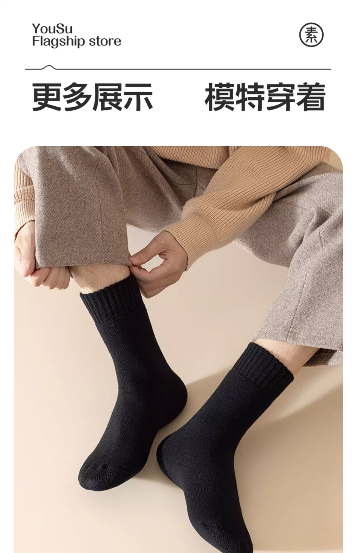 【YW】无忧购19元2双,35元5双超厚羊绒袜子男士秋冬款加厚加绒保暖抗寒地板袜(截单后3-5天发货)