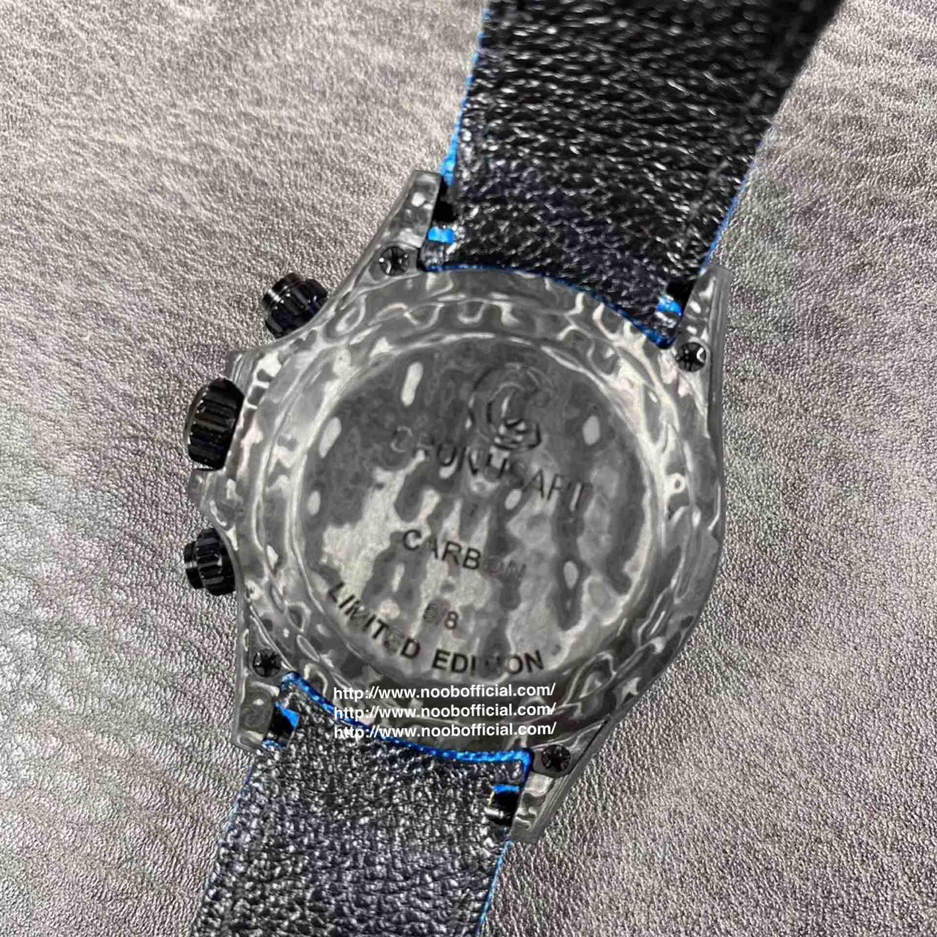 【表壳】采用碳纤维材质打造,轻盈佩戴舒适,每一只腕表都拥有独一无二的碳纤花纹。 由于碳纤维材质的非常坚硬,表壳在CNC成型过程中损耗也是非常大的!