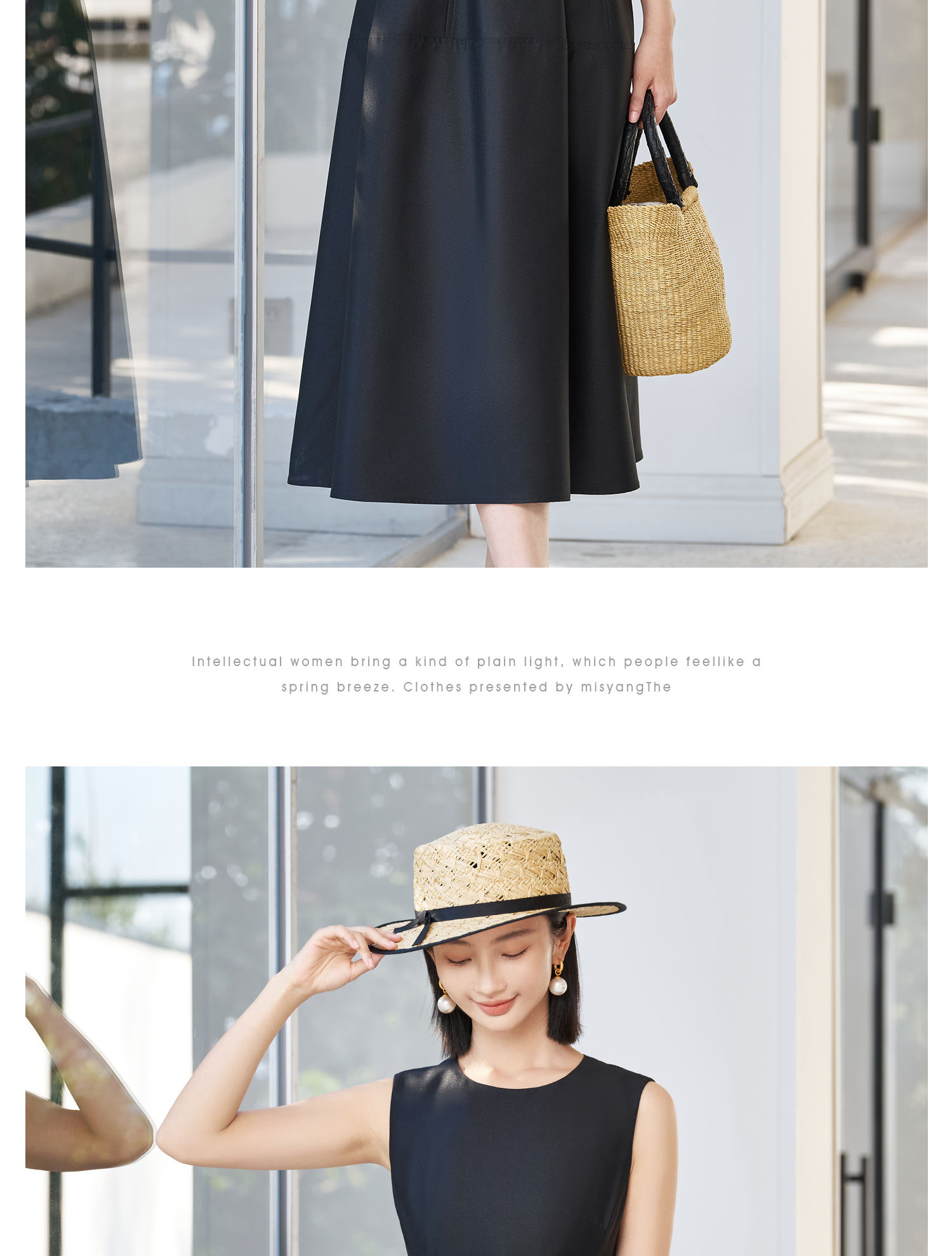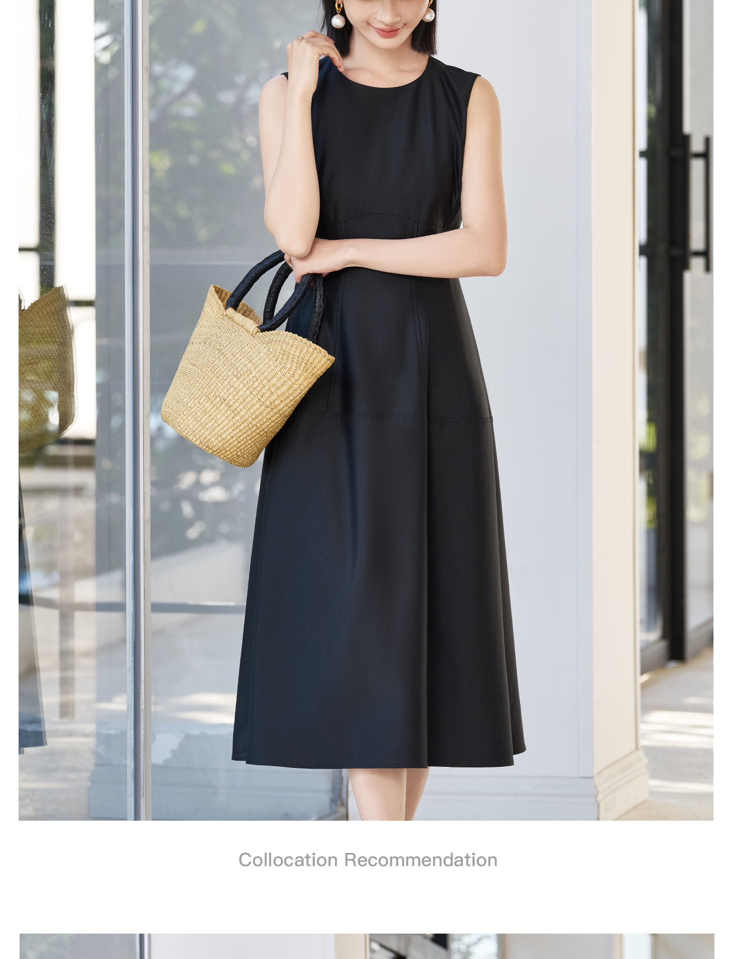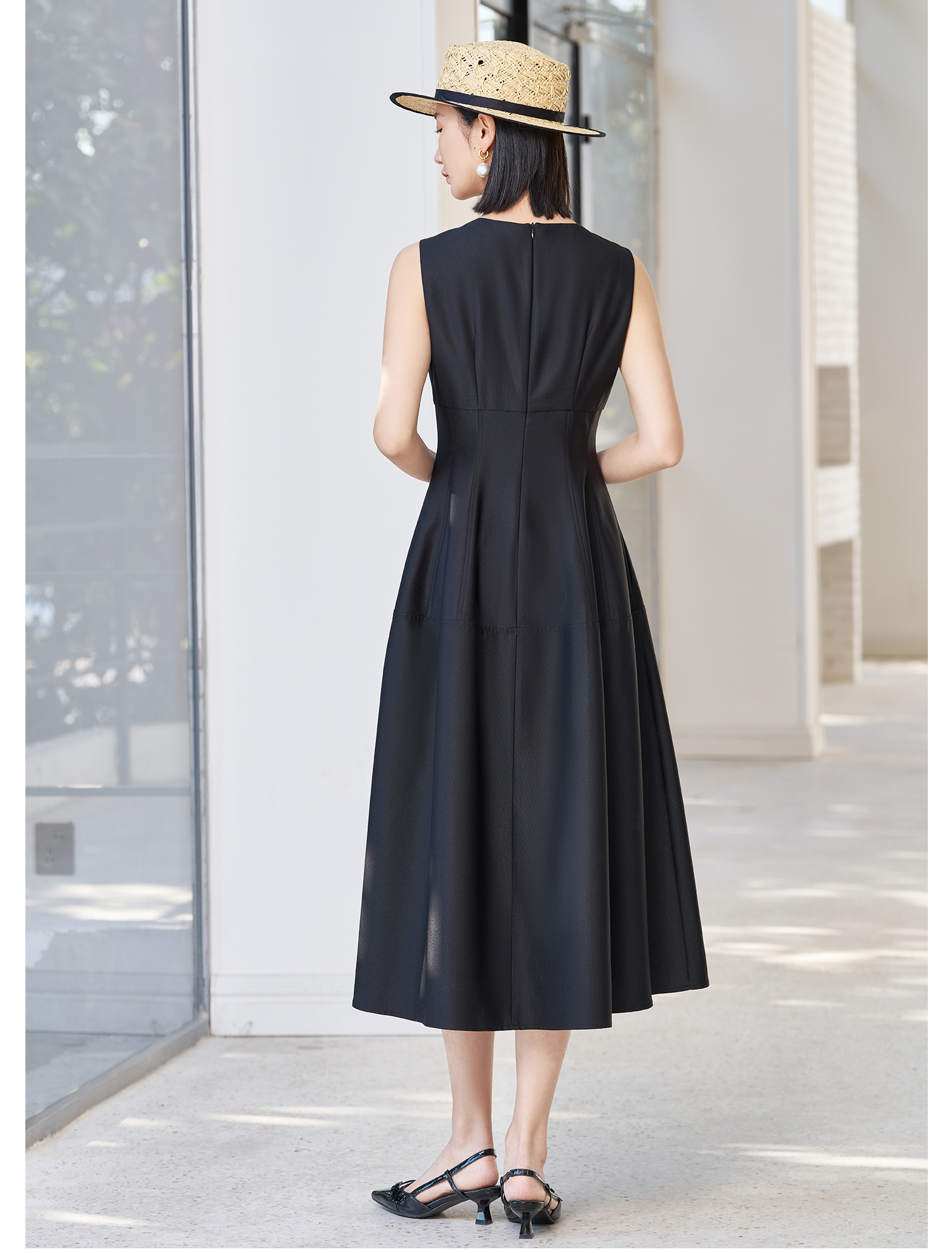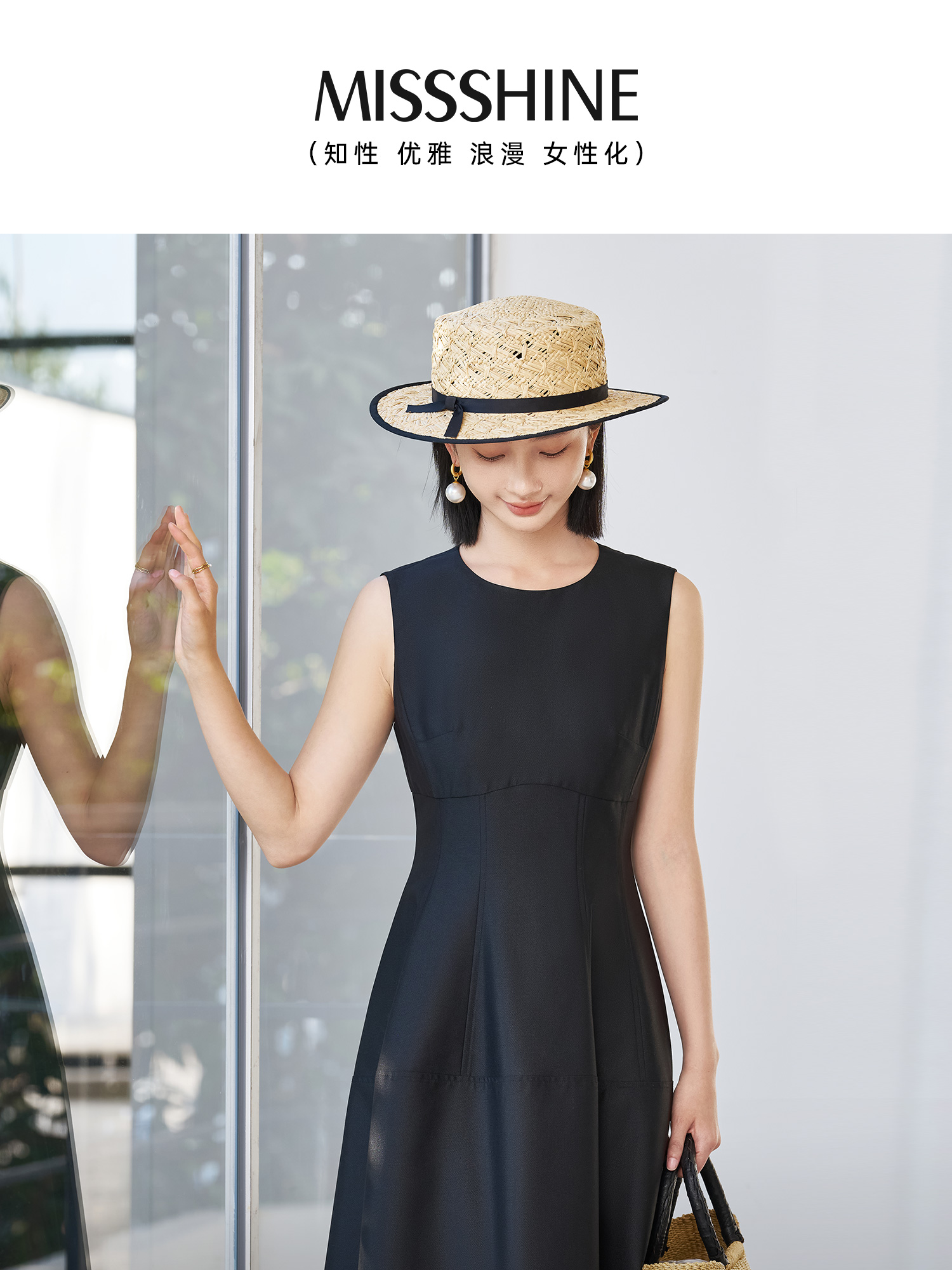 米思阳2026春季新款赫本风简约修身无袖气质小黑裙连衣裙女4949