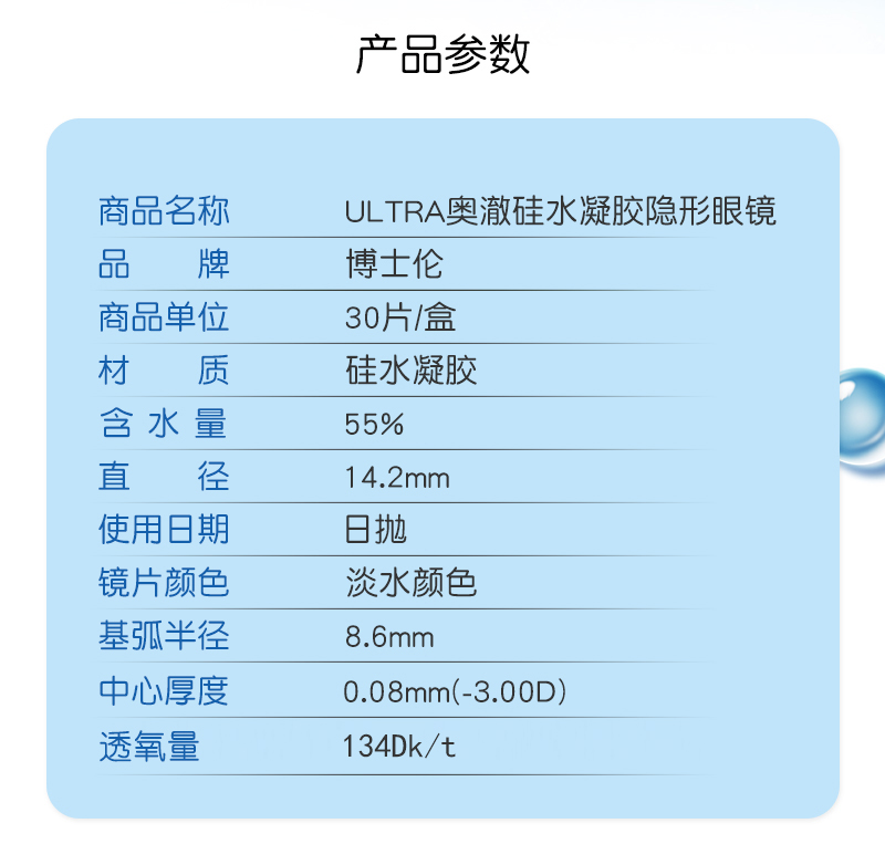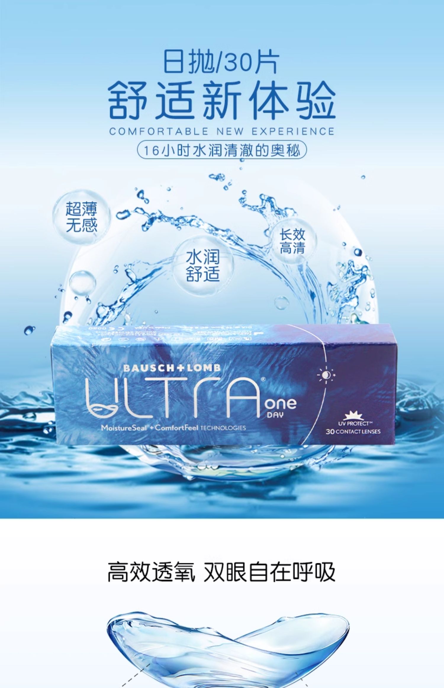 【拍2发4】博士伦奥澈硅水凝胶日抛隐形近视眼镜一次性30片