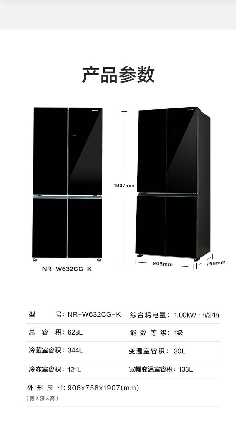 【包邮直发】松下冰箱 628L NR-W632CG-K(ZB)