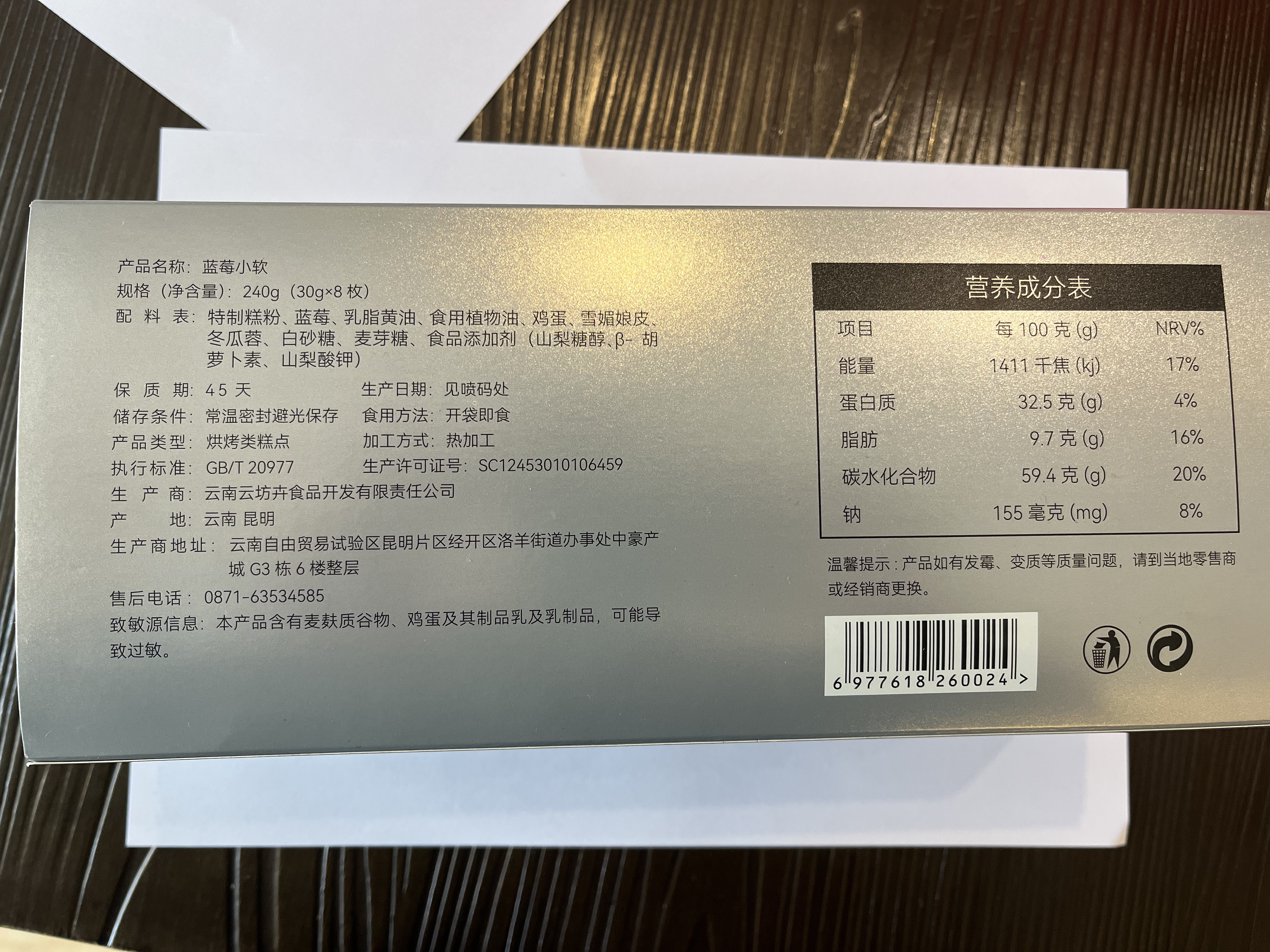 昆明 云麦先生蓝莓小软(30克*8枚/盒)