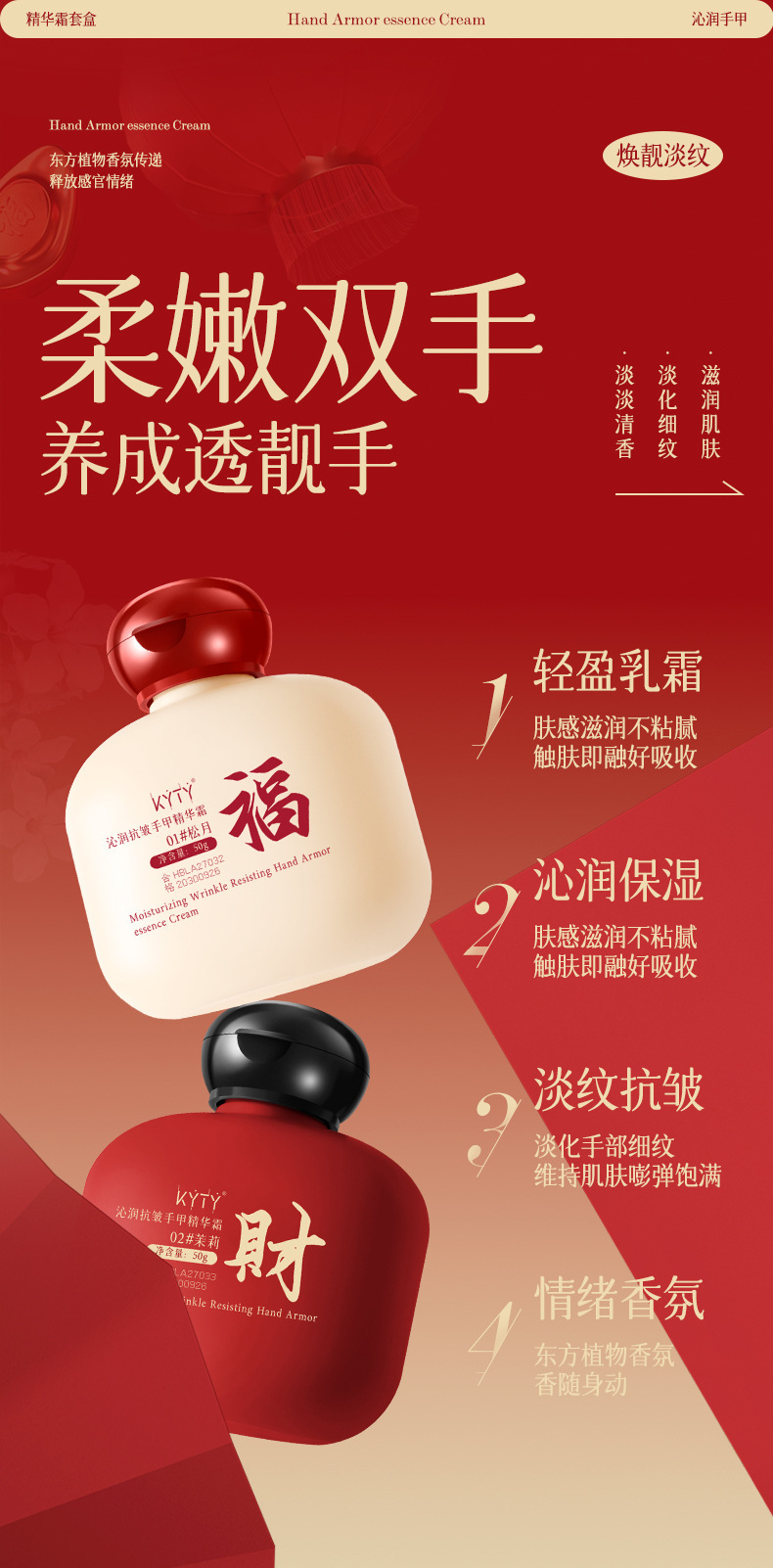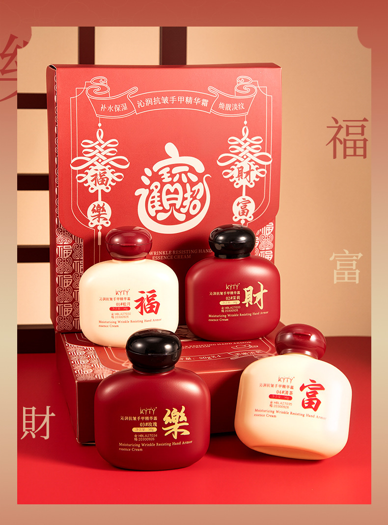 「9.9到手!新年礼盒装」KYTY沁润抗皱手甲精华霜滋润保湿防干改善粗糙美容护肤高级感礼盒 商品图4