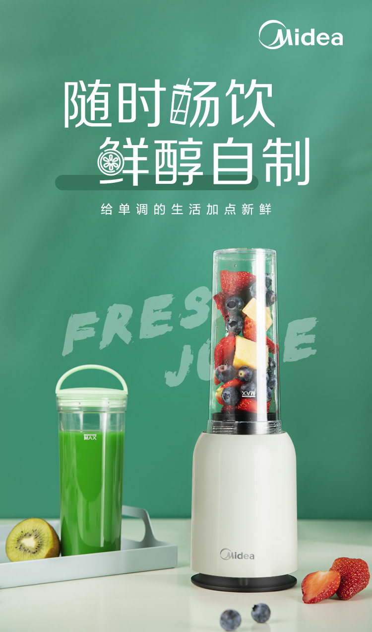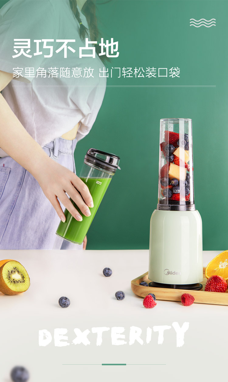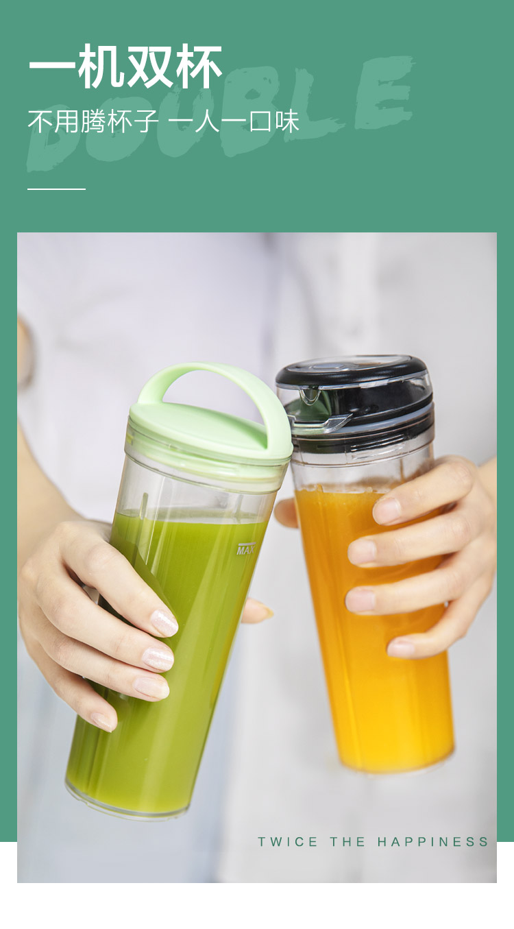 美的(Midea)榨汁机便携迷你双杯果汁机榨汁杯 家用多功能料理机搅拌机辅食机MJ-LZ20Easy101
