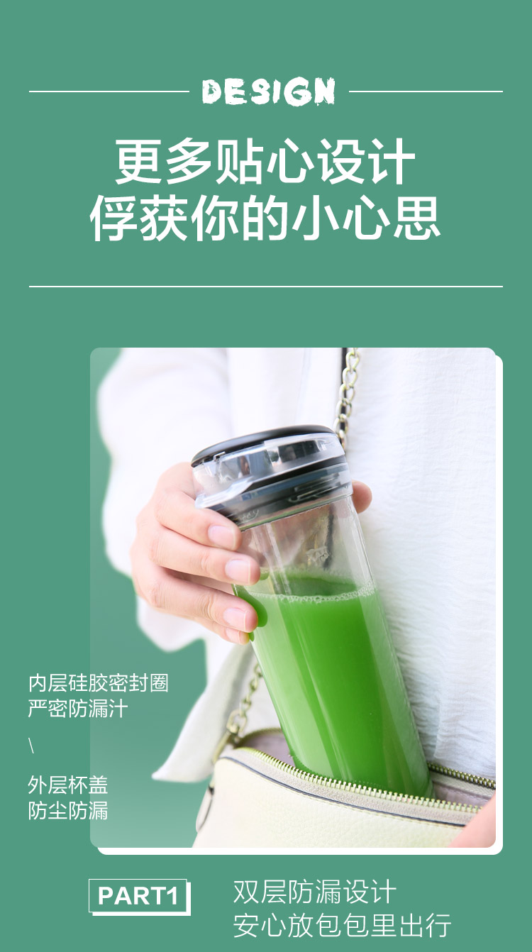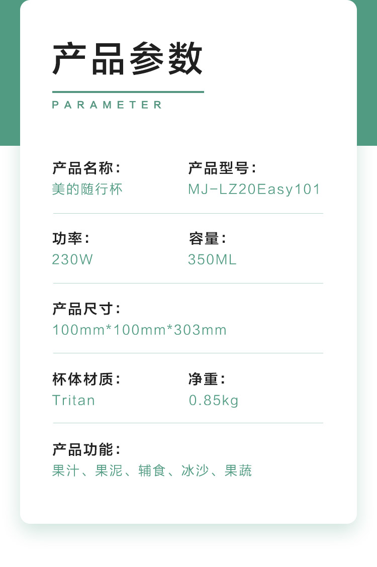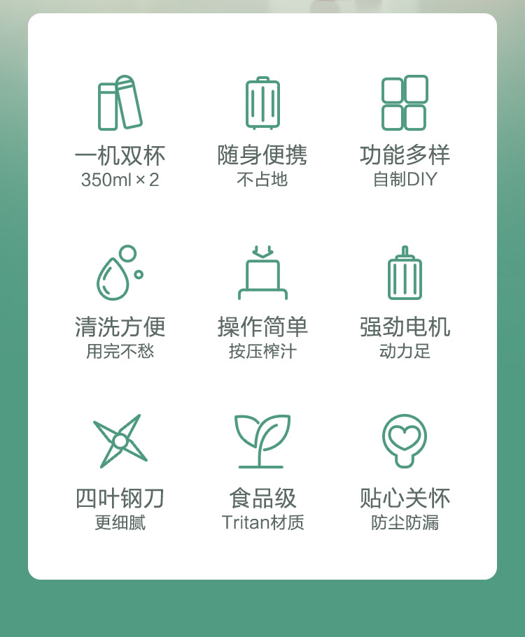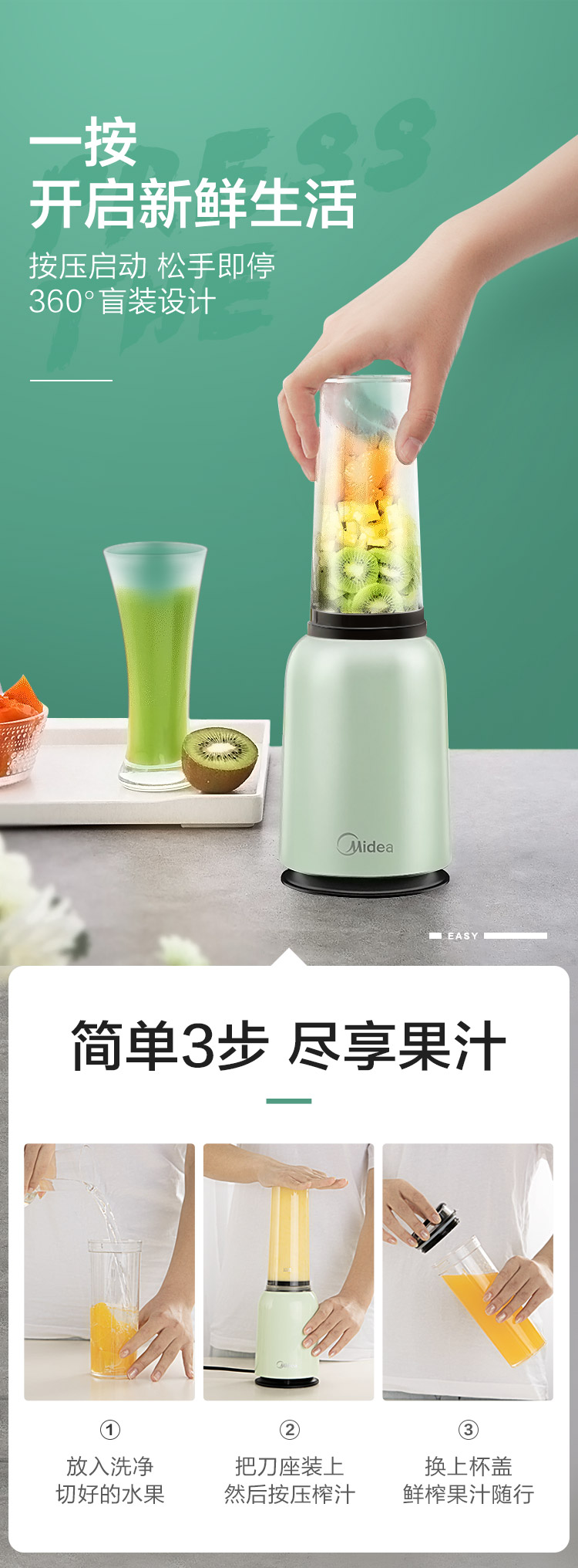 美的(Midea)榨汁机便携迷你双杯果汁机榨汁杯 家用多功能料理机搅拌机辅食机MJ-LZ20Easy101
