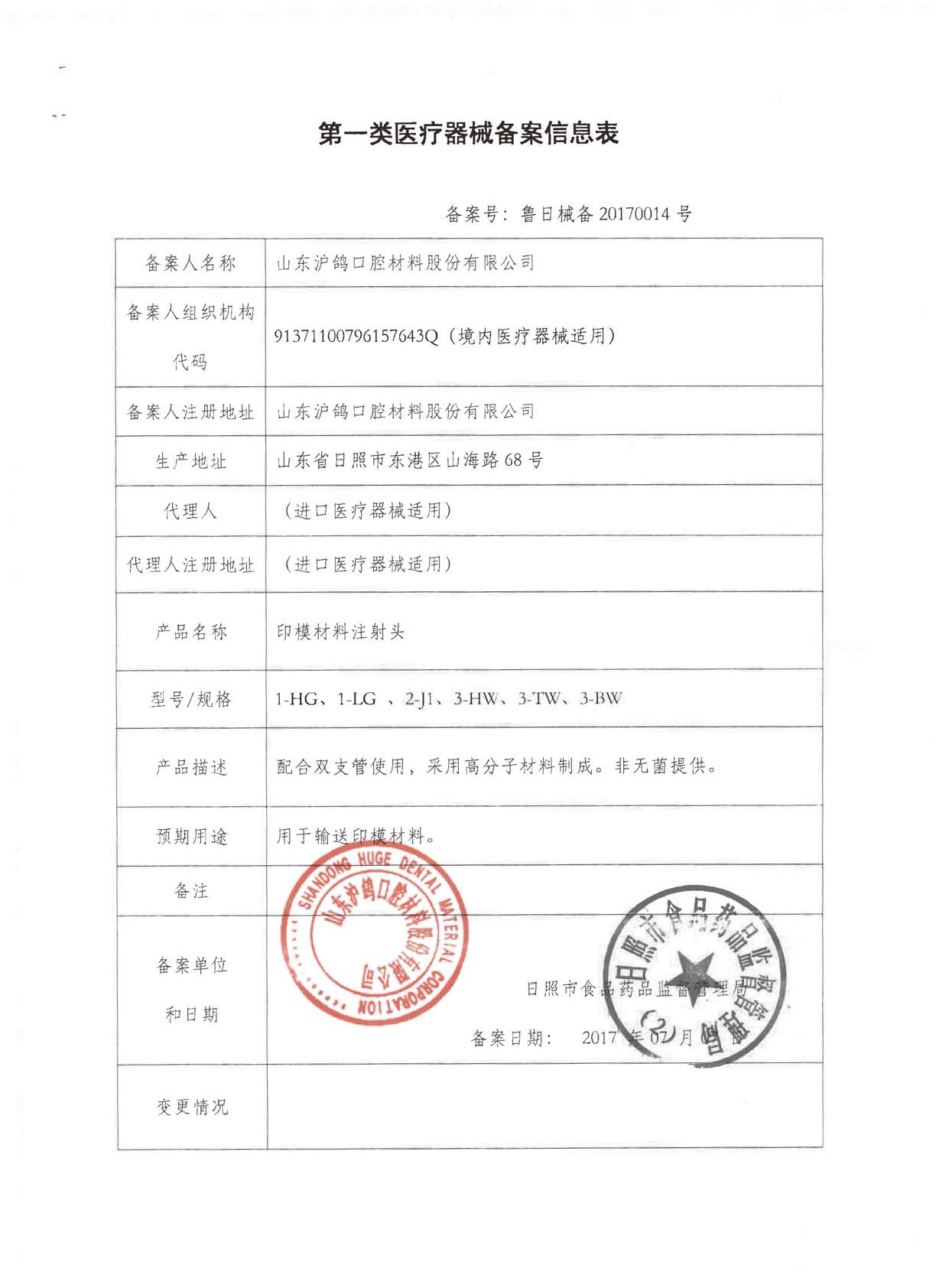 注册证号:鲁械注准20182170360;备案号:鲁日械备20170014号