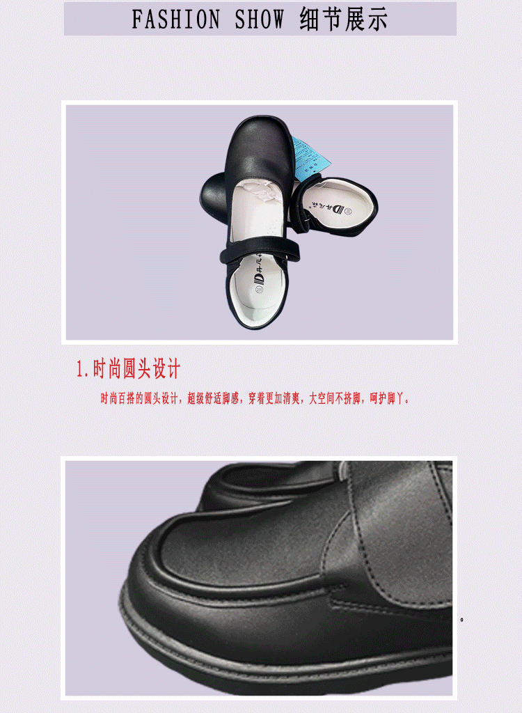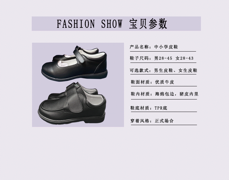 深圳校鞋中小学生黑色圆头皮鞋新款