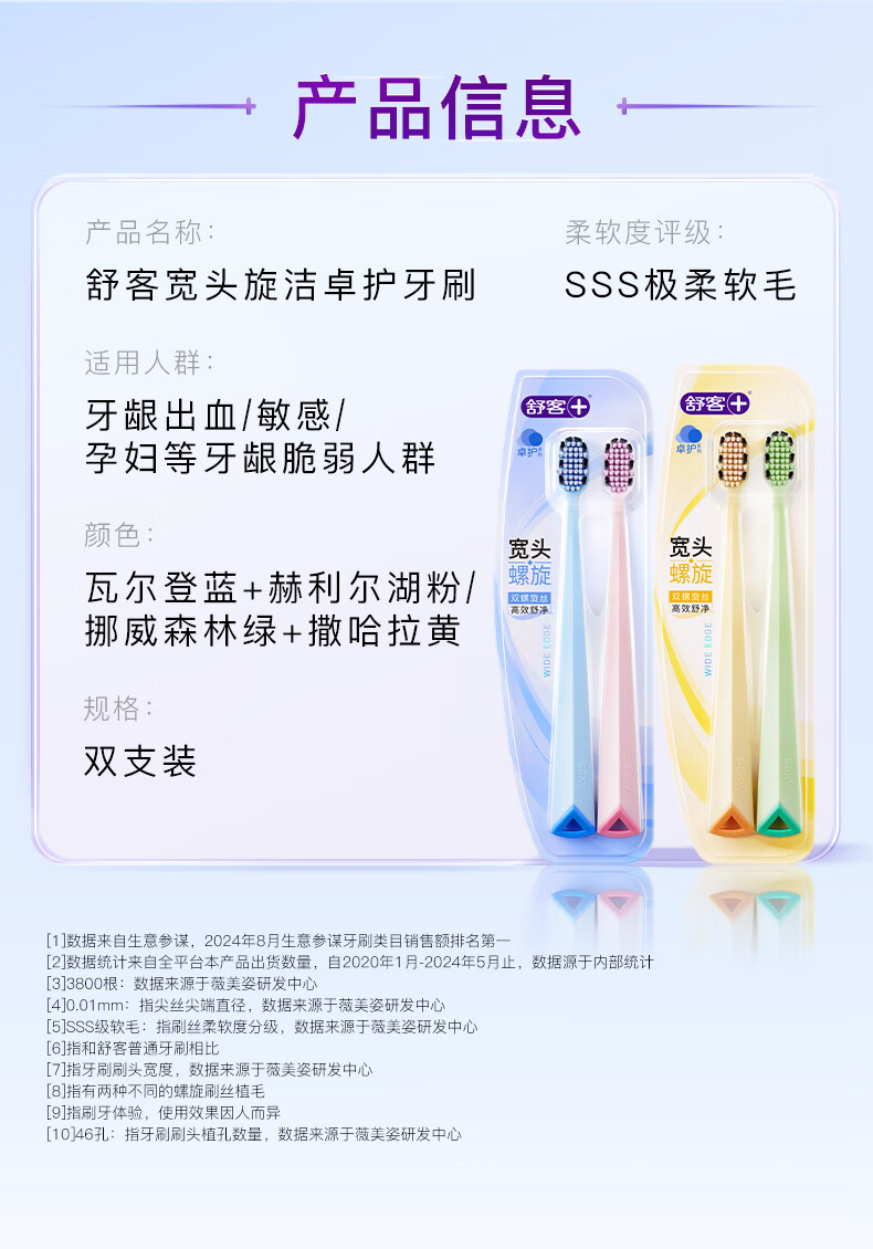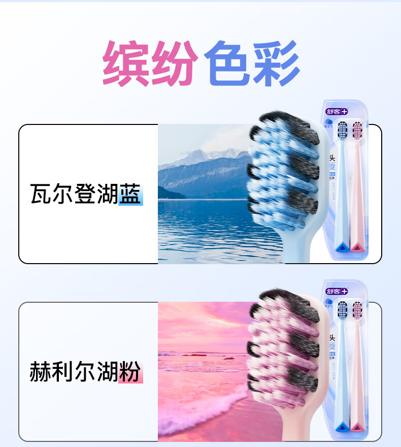 (1.20直播)舒客宽头高密旋洁牙刷蓝粉色2支装*2
