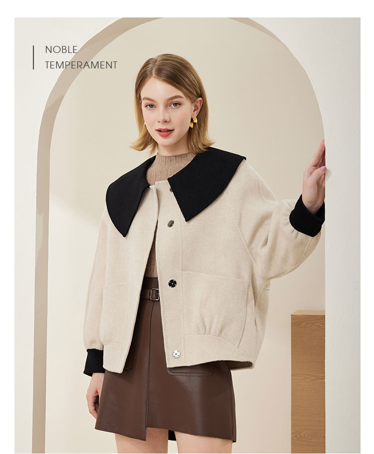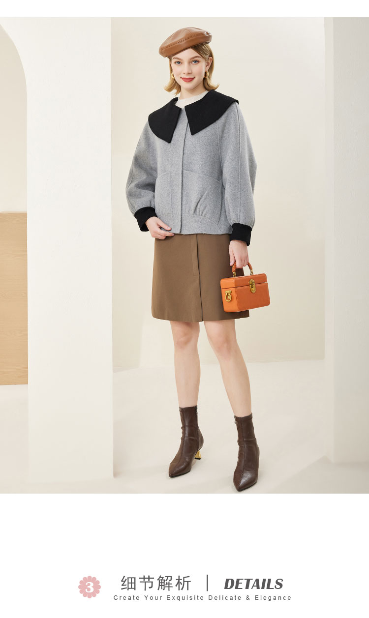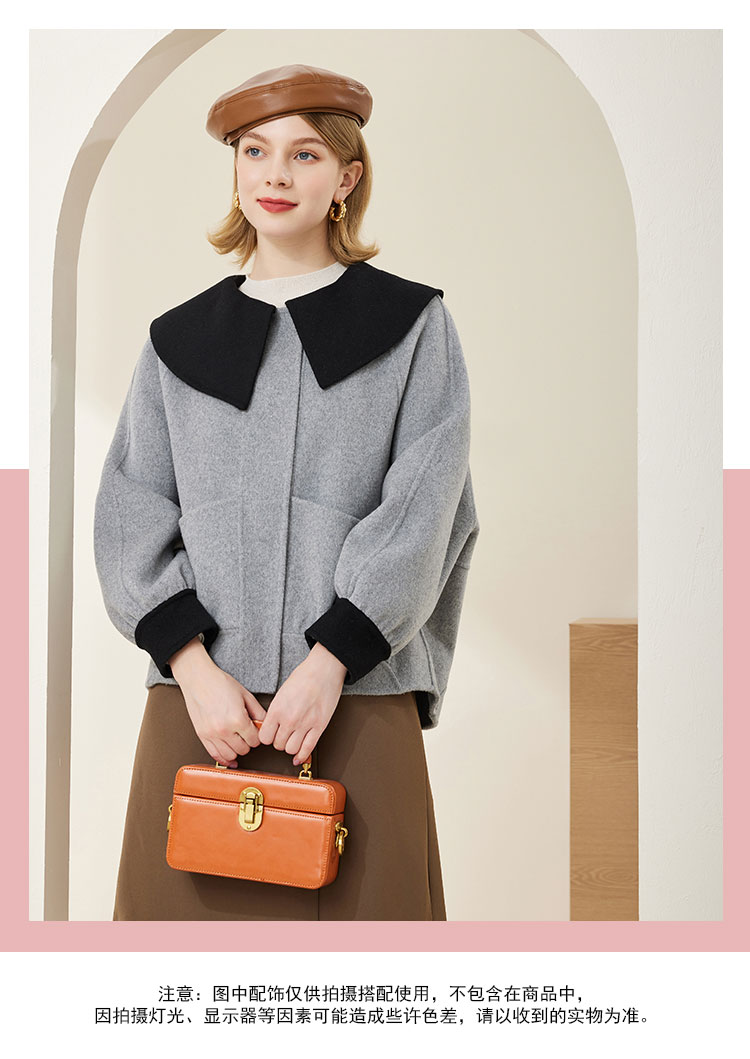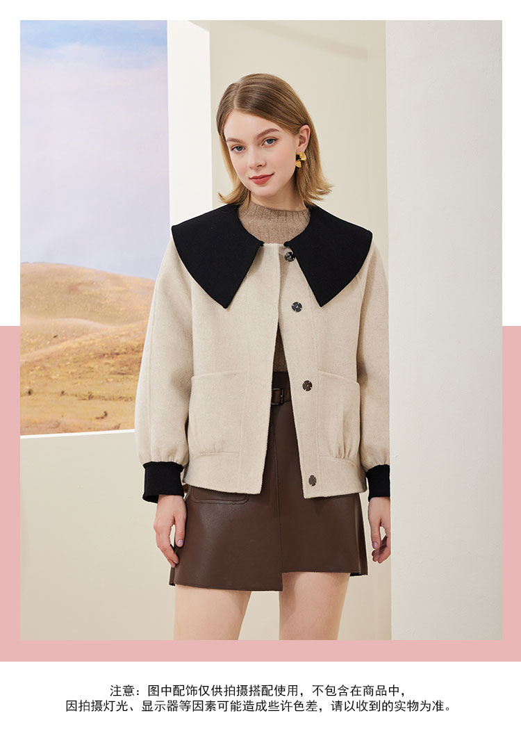 MH9J2斯尔丽瑟俪2022年冬上新商场同款甜美名媛撞色娃娃领短款大衣